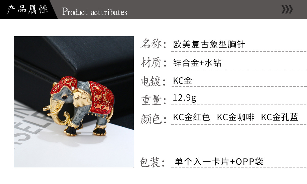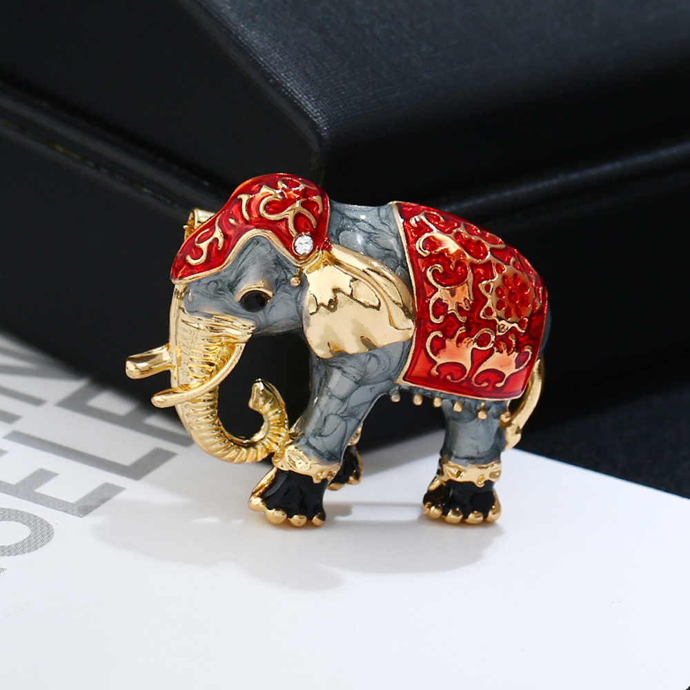 跨境货源欧美流行衣饰品 高档气质景泰蓝动物别针 可爱大象胸针
