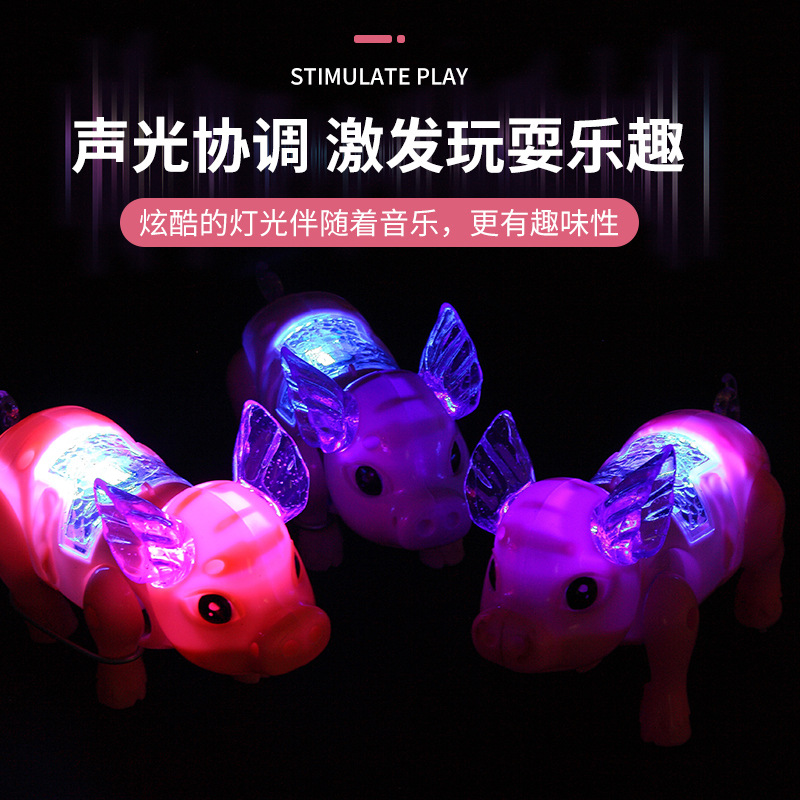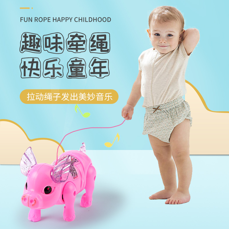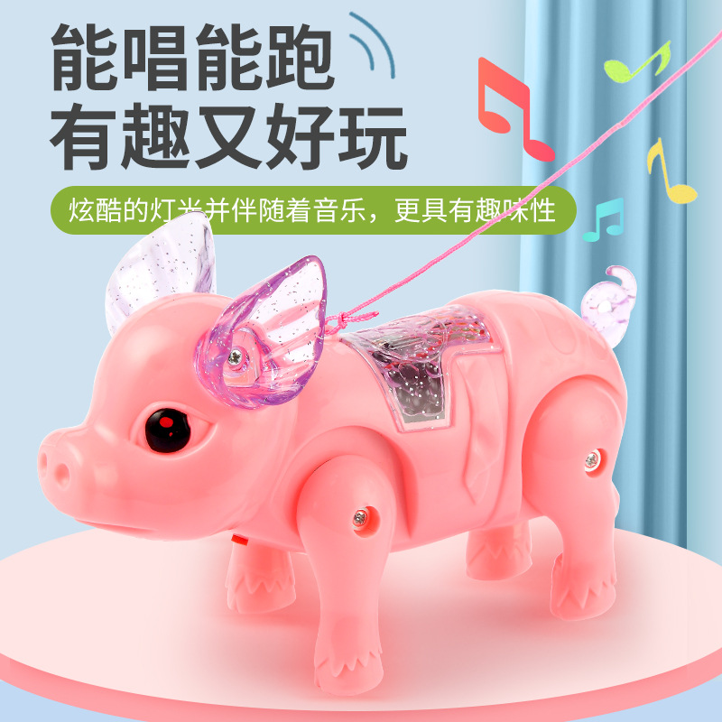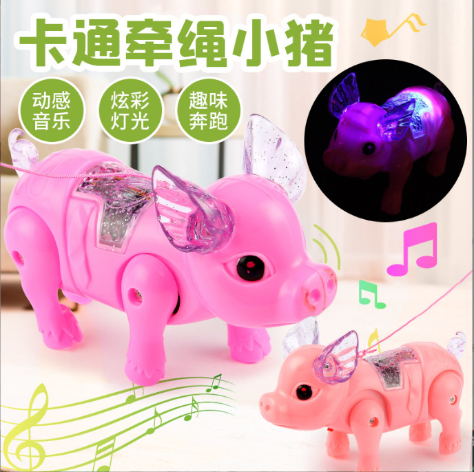 电动牵绳小猪摆摊爆款发光音乐牵绳猪儿童益智玩具地摊批发工厂