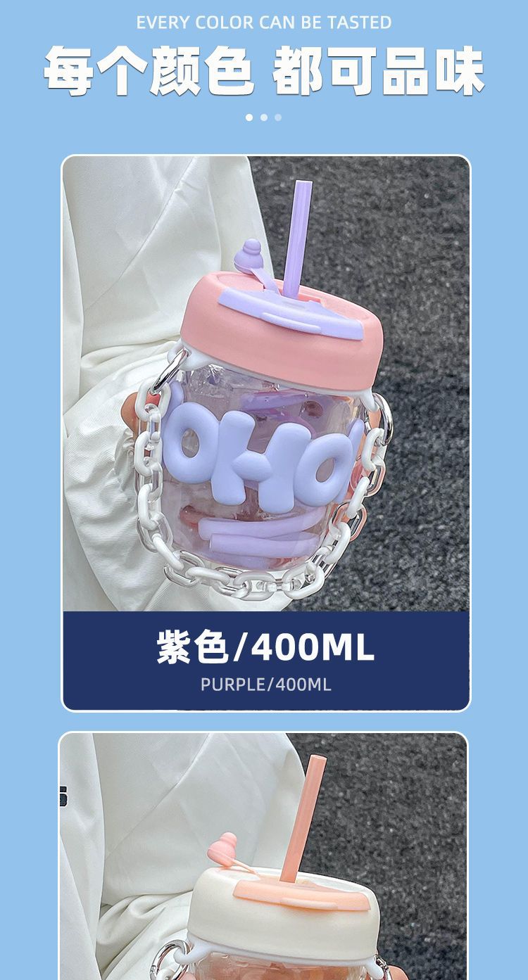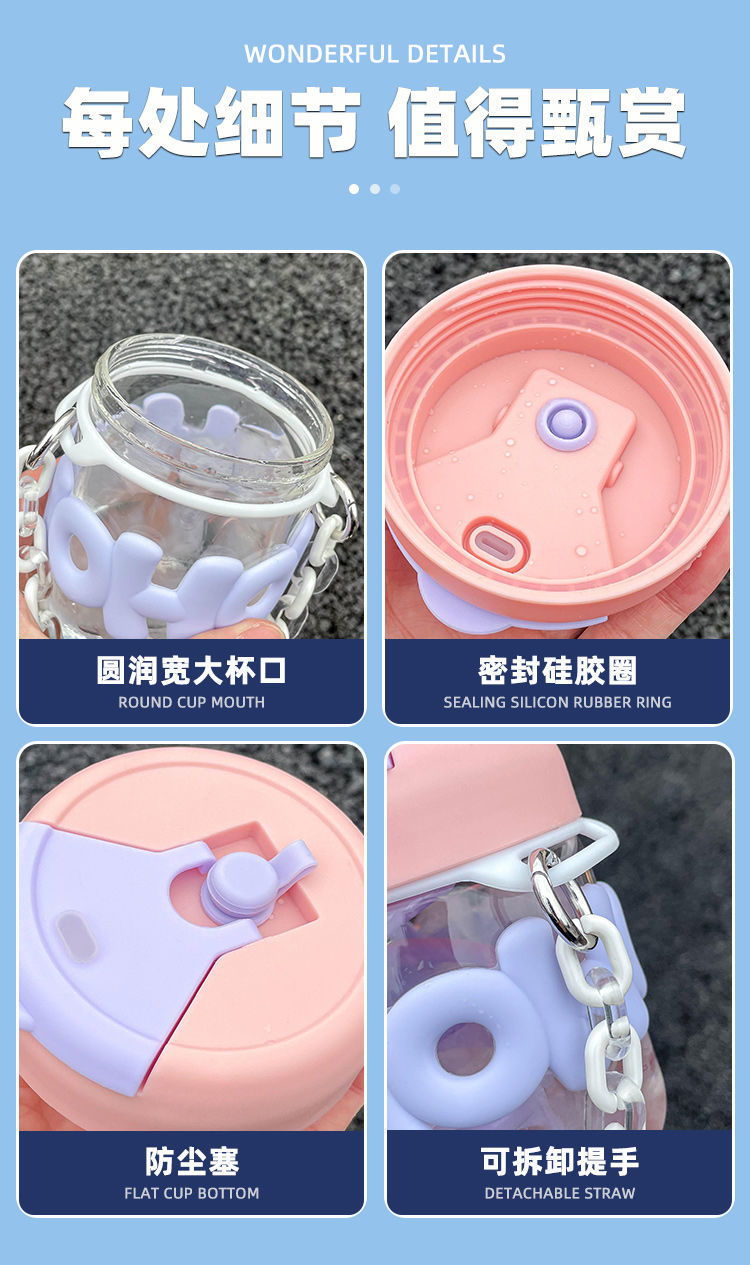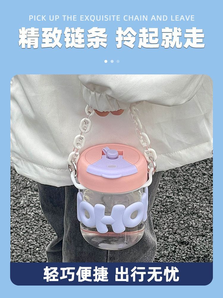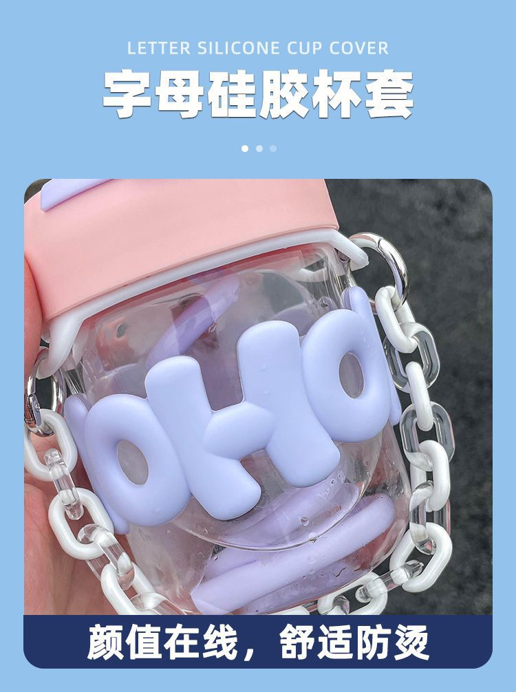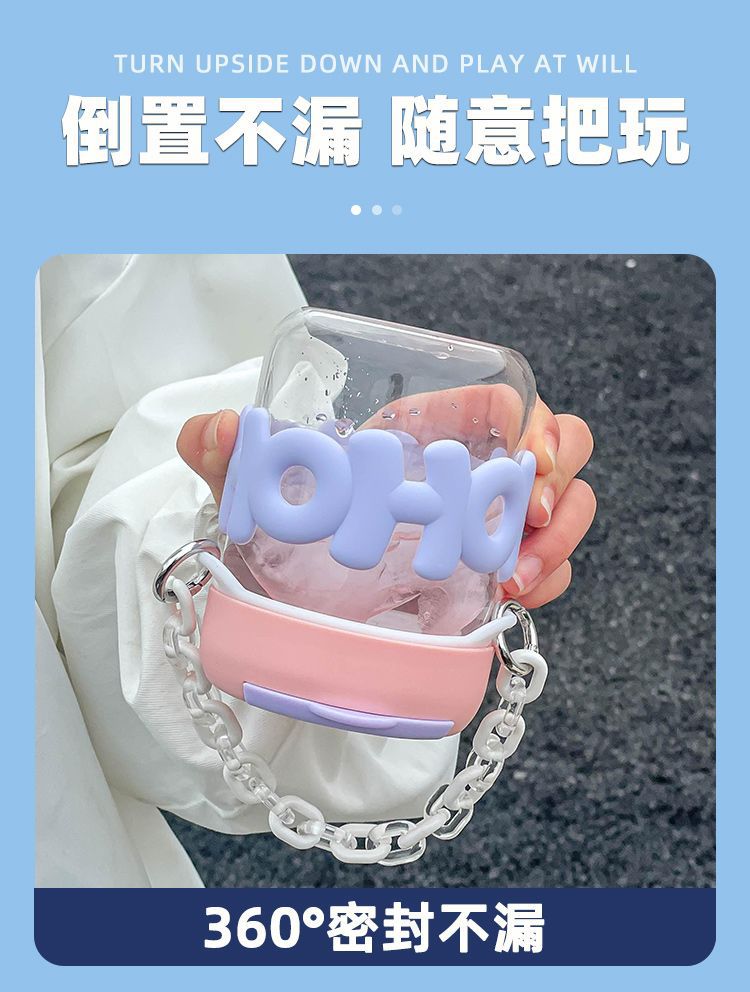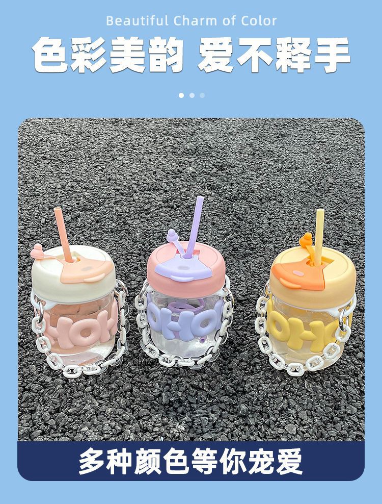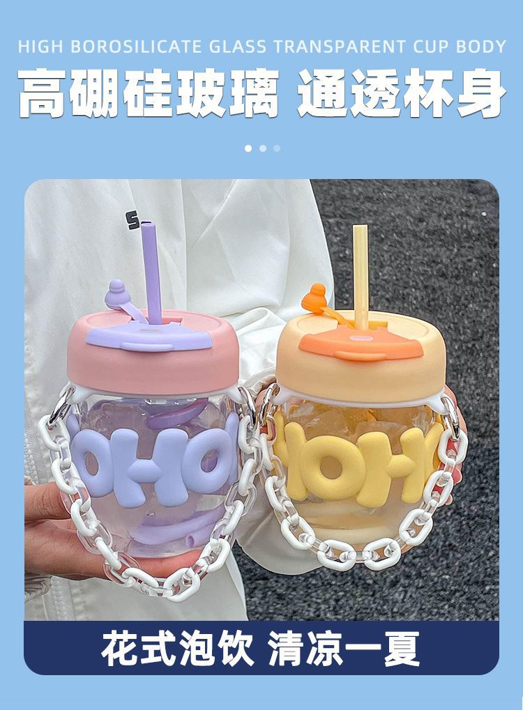 可爱少女玻璃杯高颜值简约吸管杯女生夏季便携带链子手提ins水杯