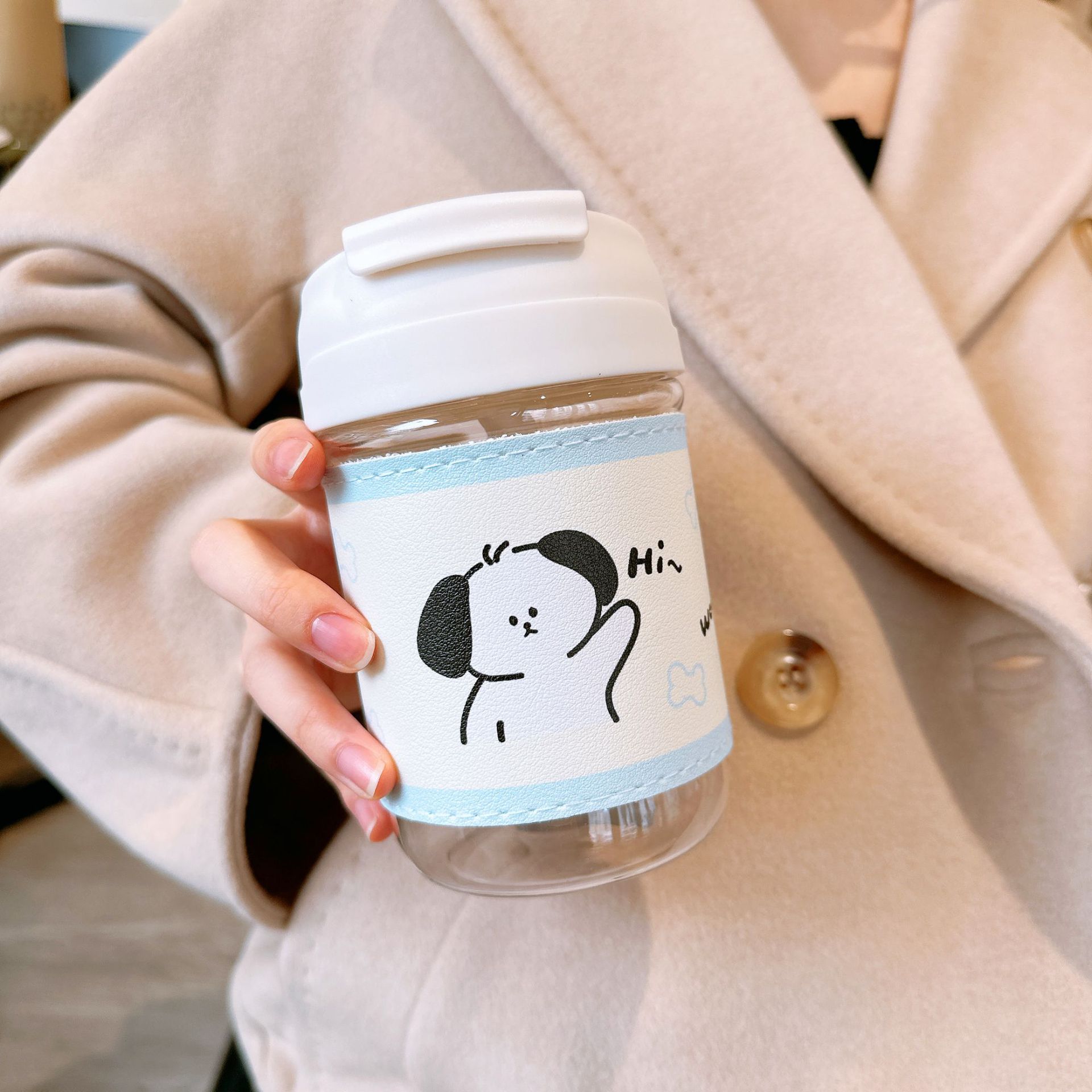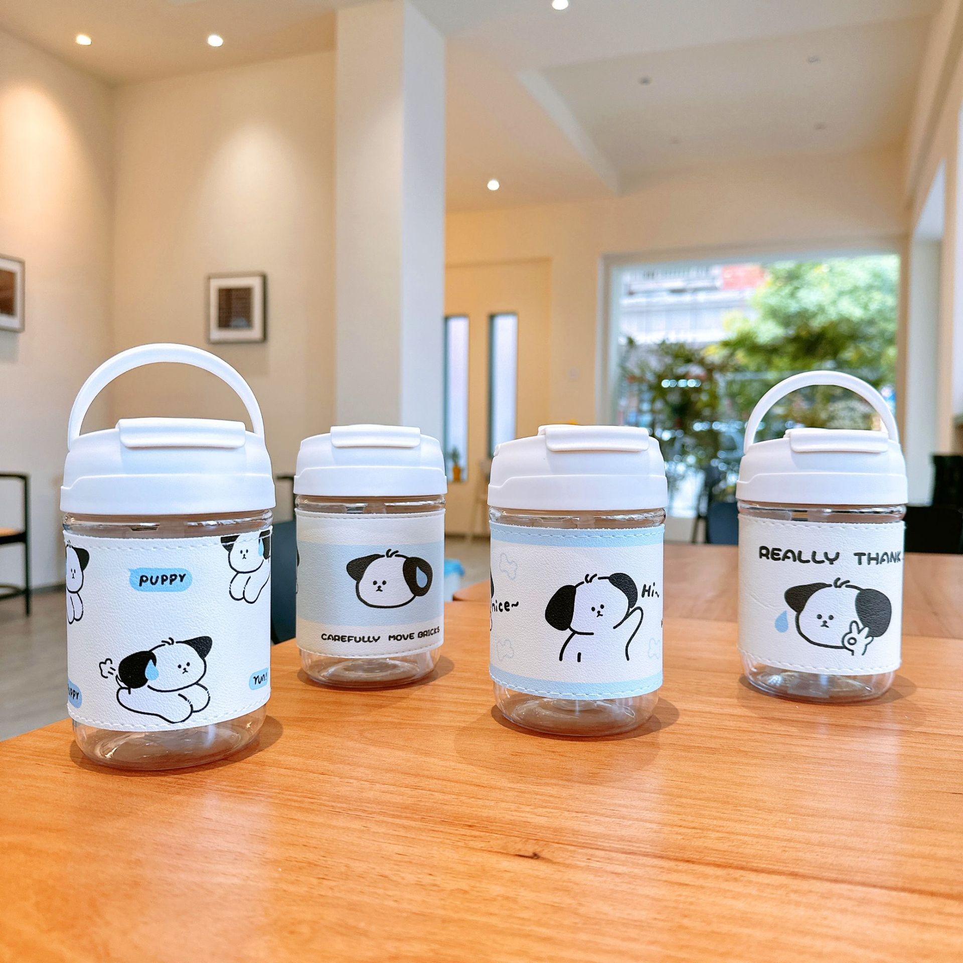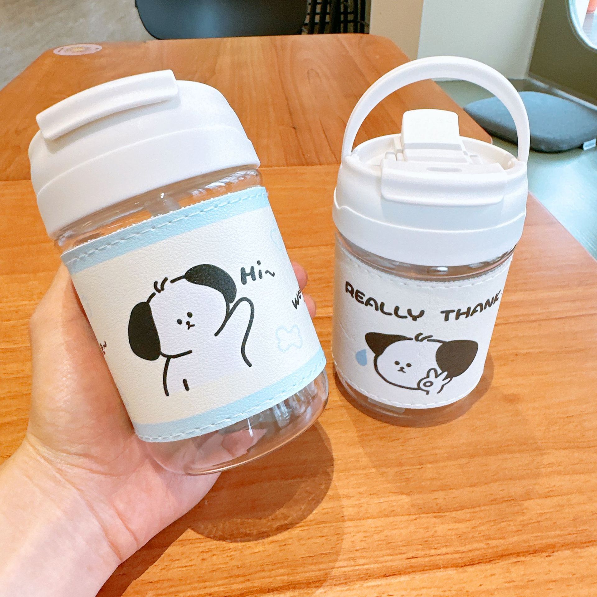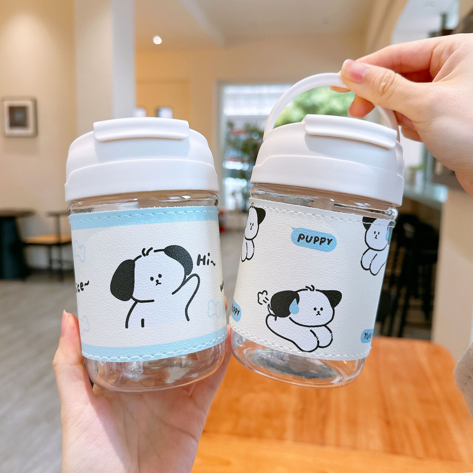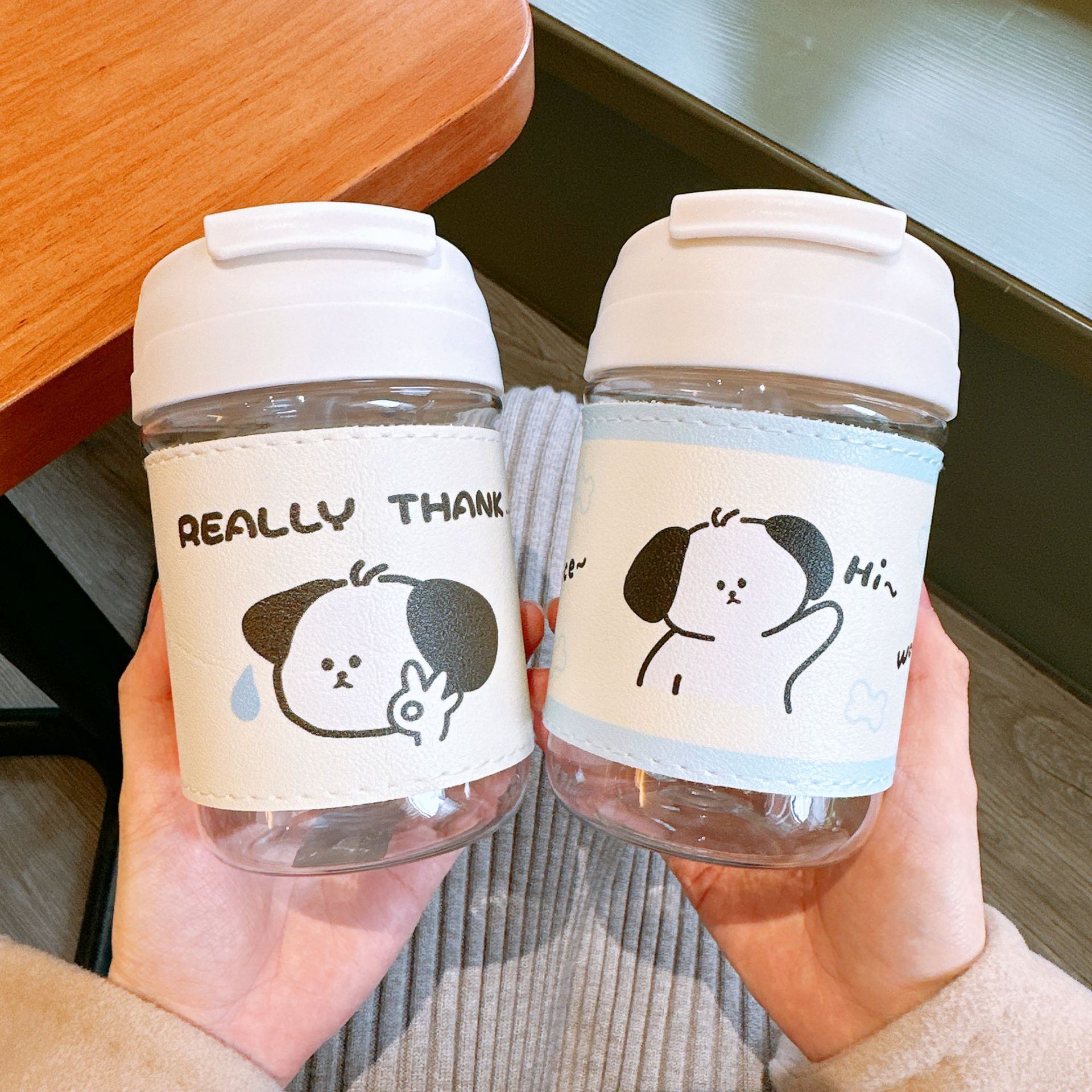 可爱小狗塑料杯双饮便携学生防烫水杯高颜值卡通创意咖啡杯子爆款