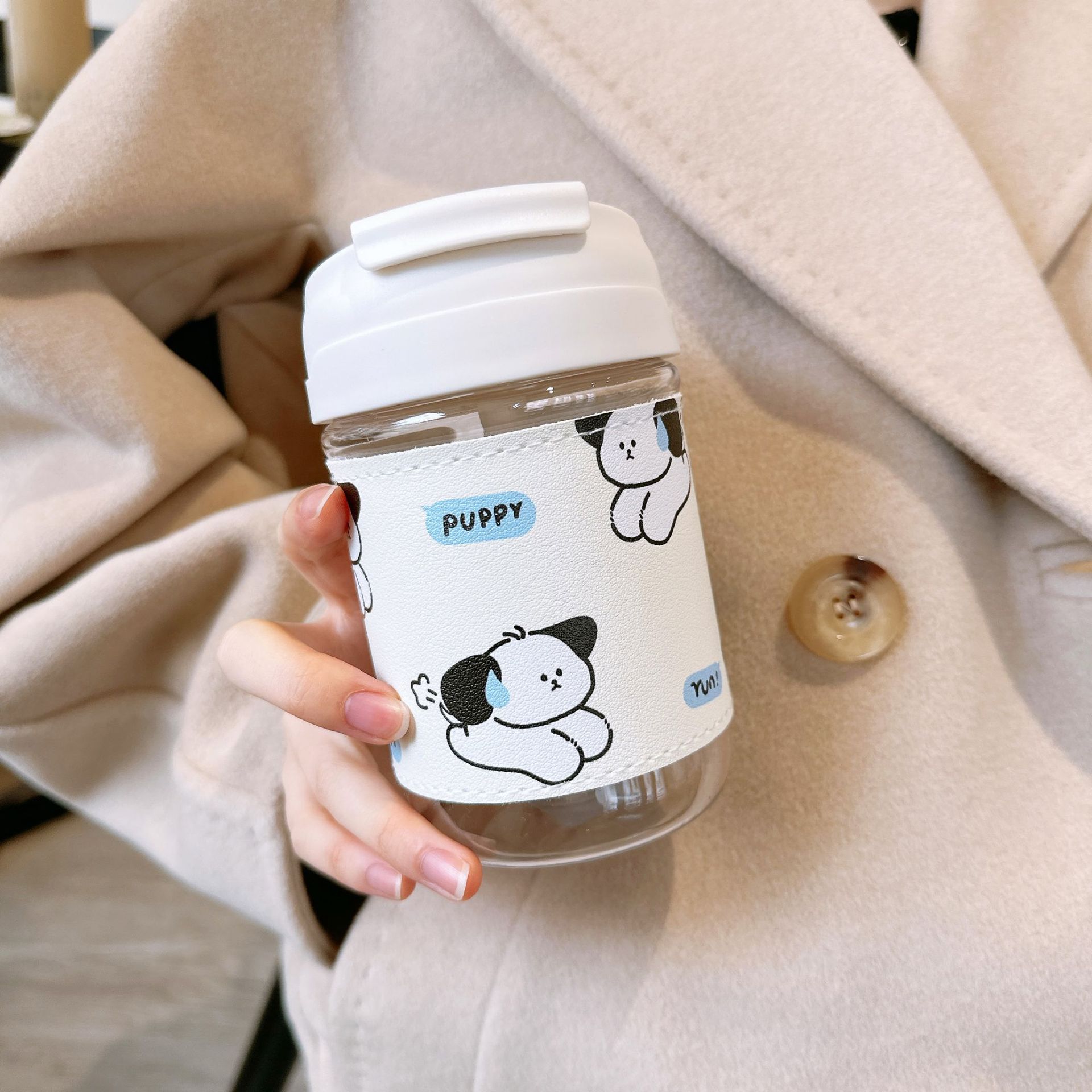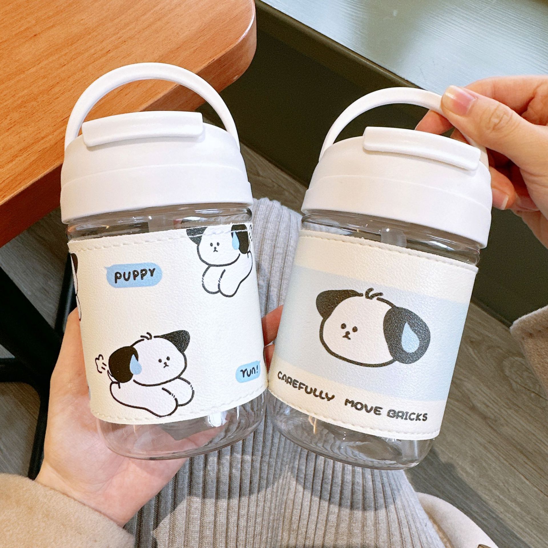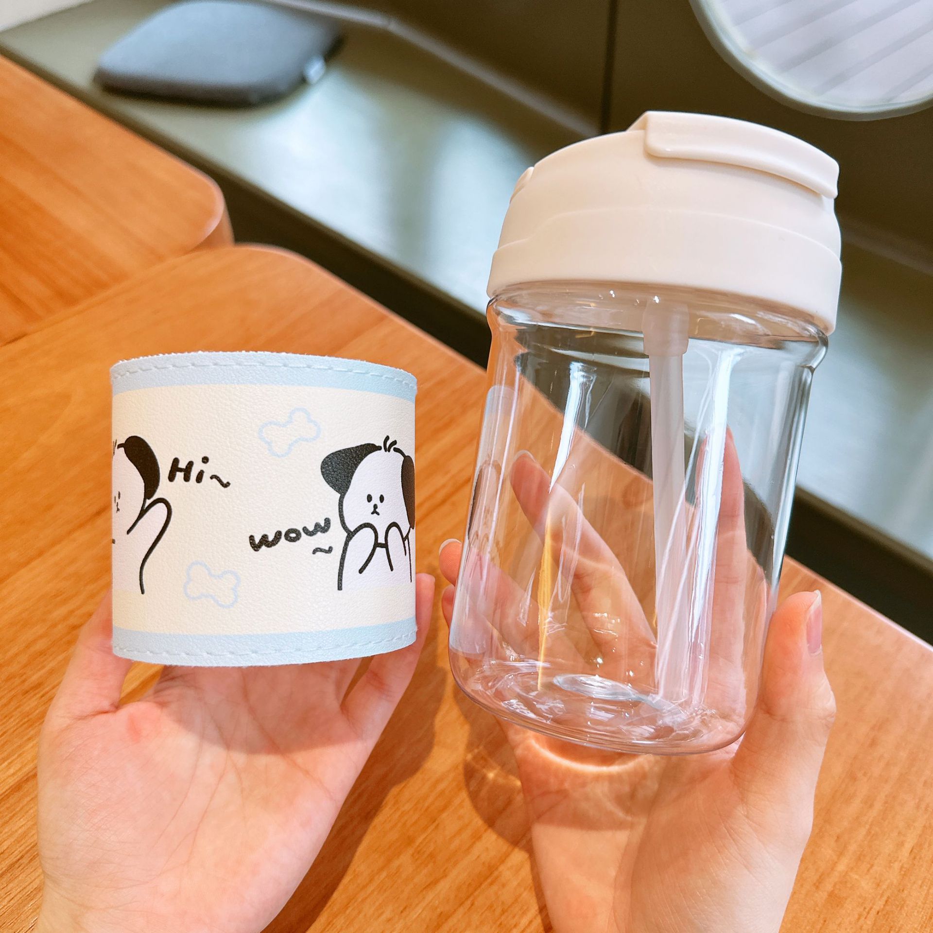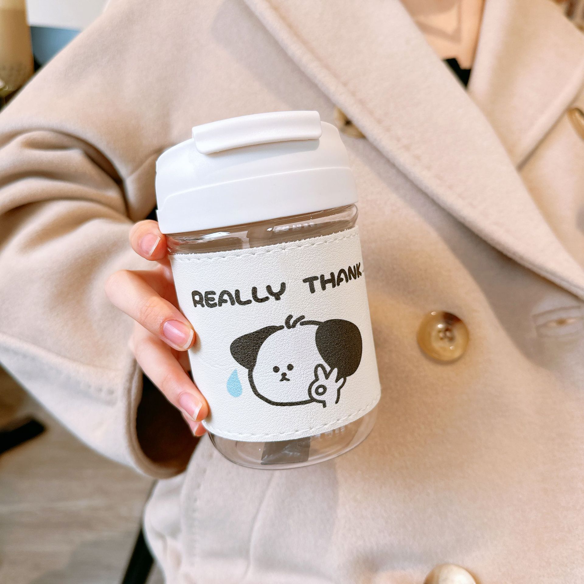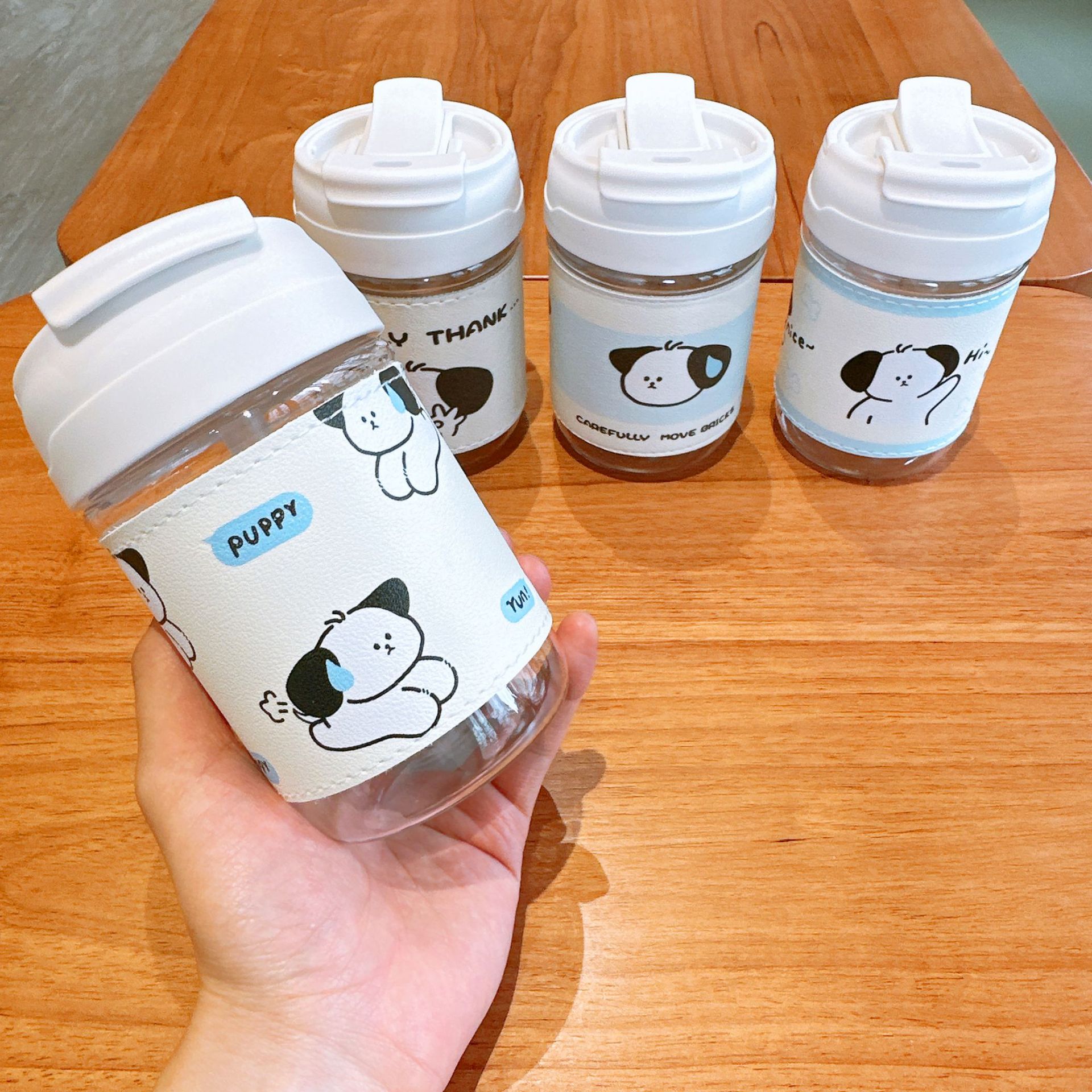 可爱小狗塑料杯双饮便携学生防烫水杯高颜值卡通创意咖啡杯子爆款