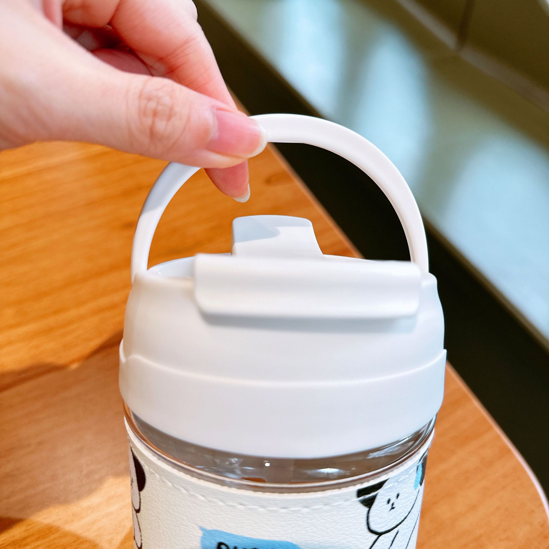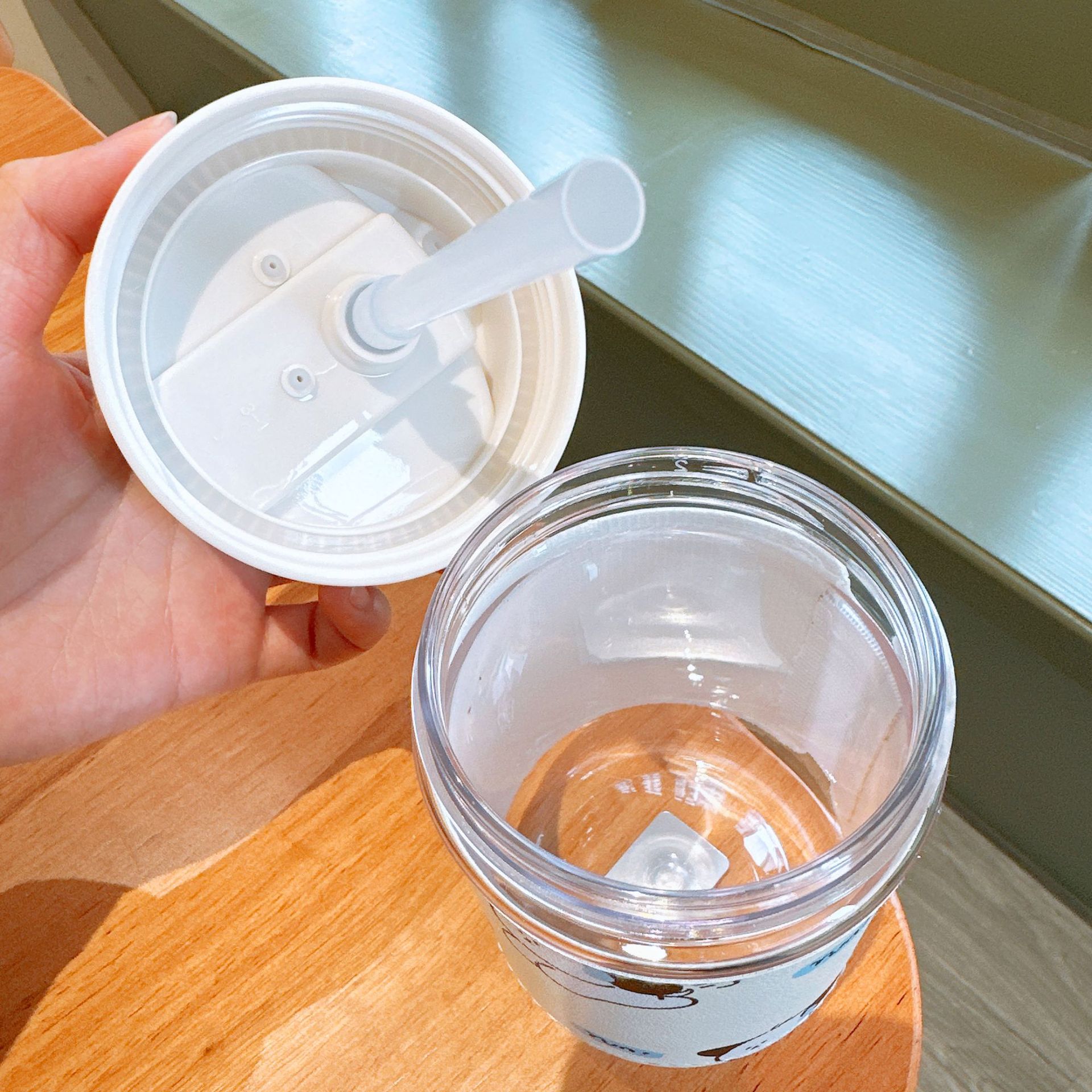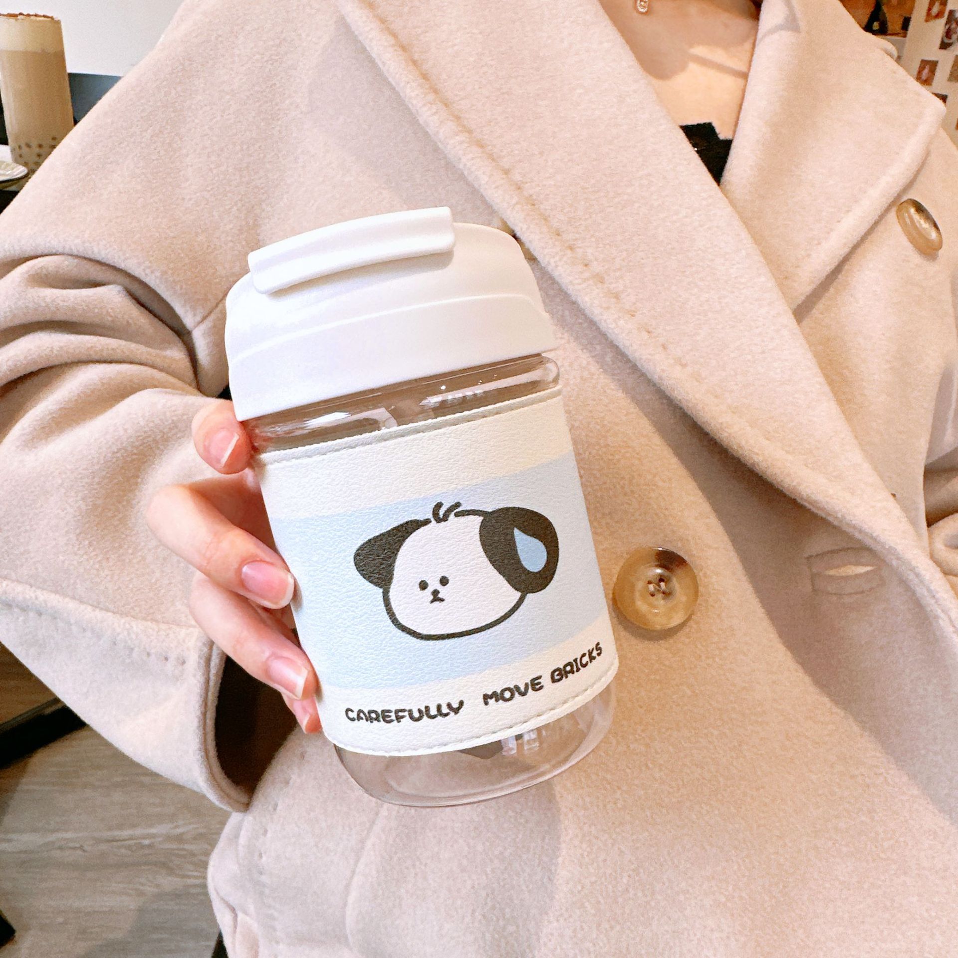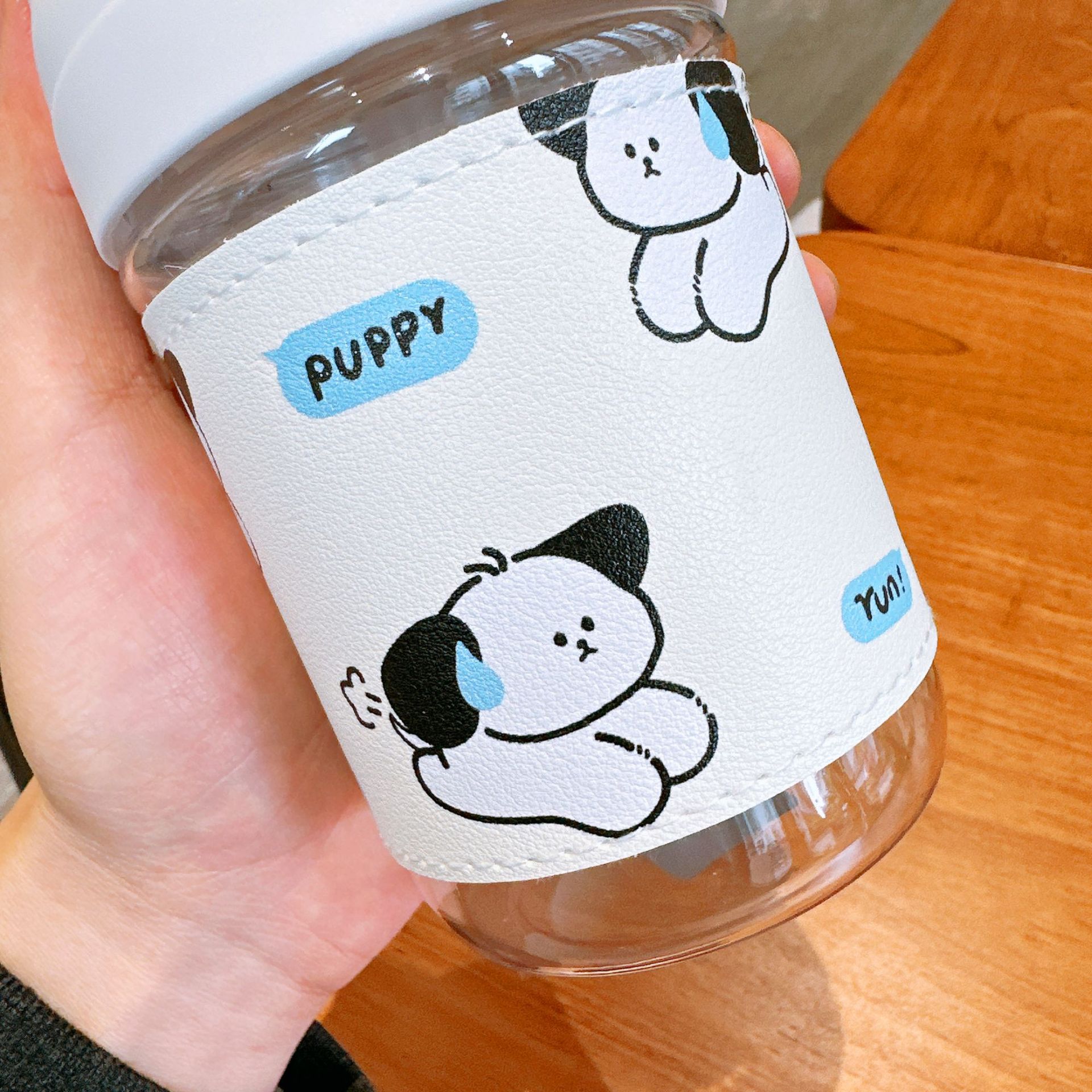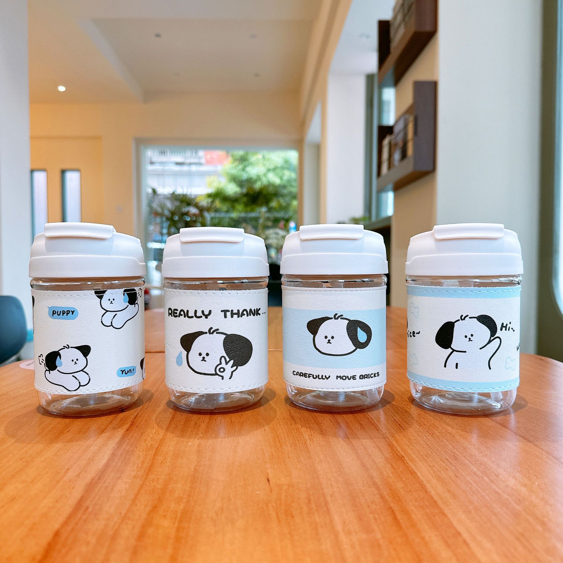 可爱小狗塑料杯双饮便携学生防烫水杯高颜值卡通创意咖啡杯子爆款