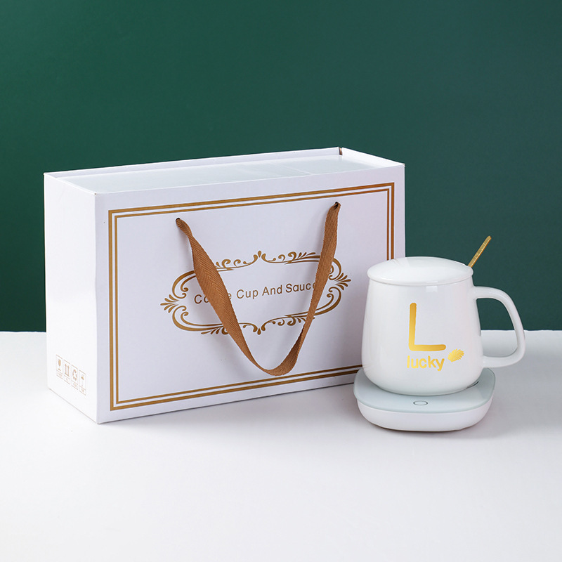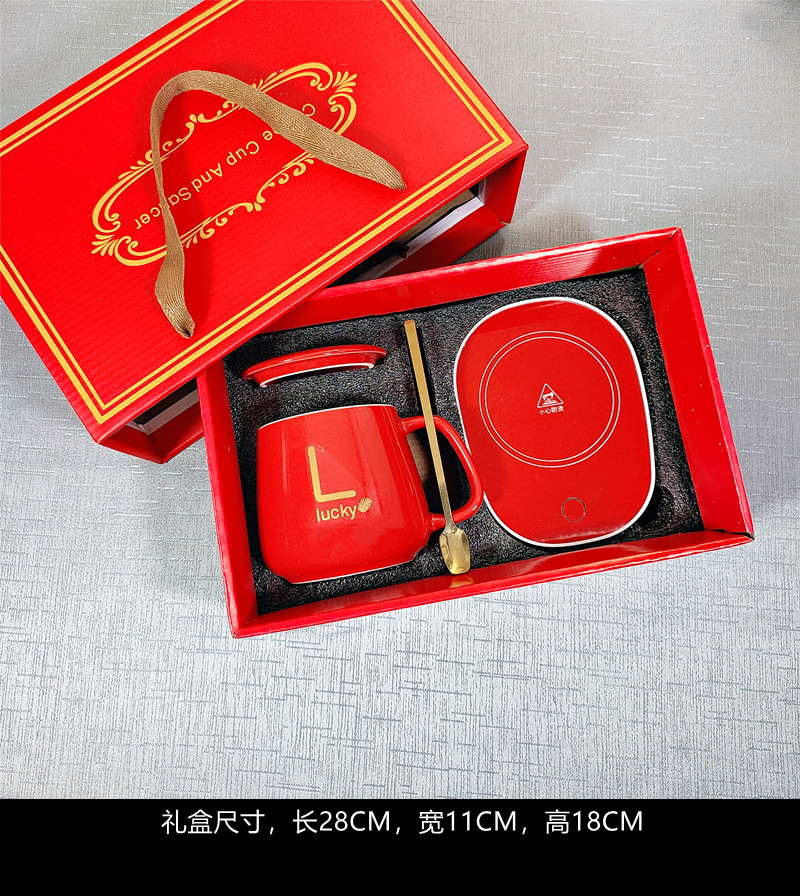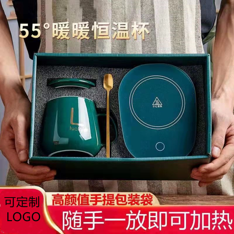 55度暖暖恒温杯礼盒装印LOGO商务礼品开业活动广告陶瓷水杯马克杯