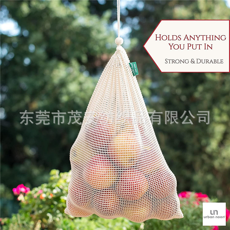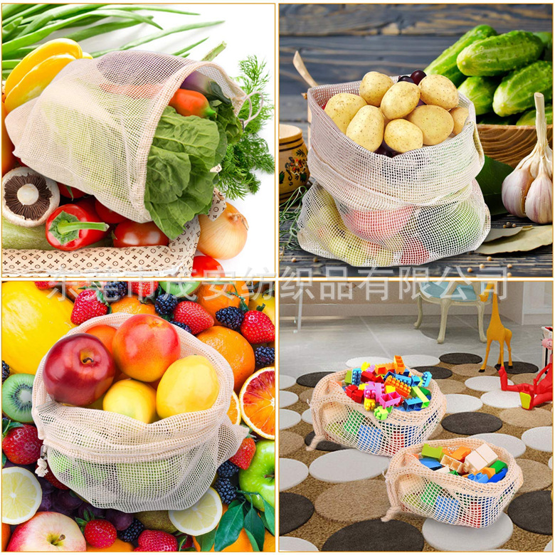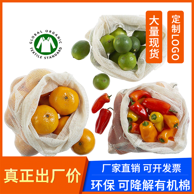 工厂现货有机纯棉网布袋全棉网眼束口布袋棉网果蔬收纳棉网拉绳袋