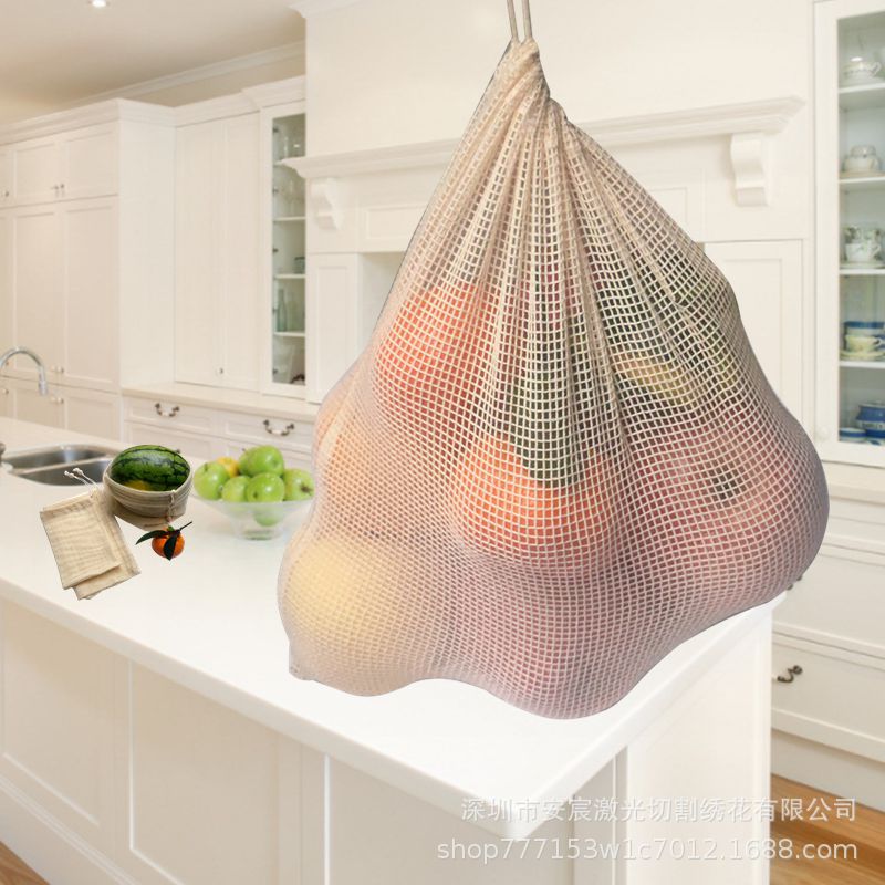 购物有机棉网袋水果网袋全棉束口袋网布抽绳果蔬袋农产品网袋