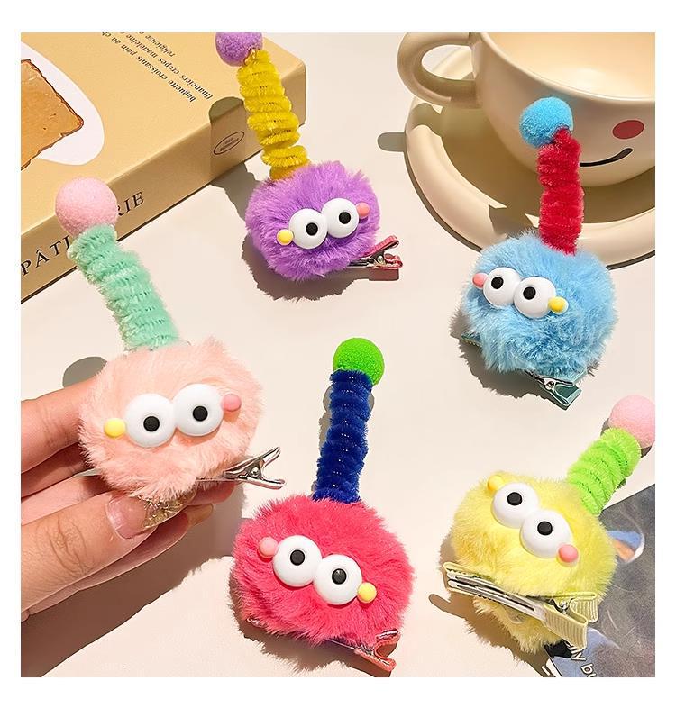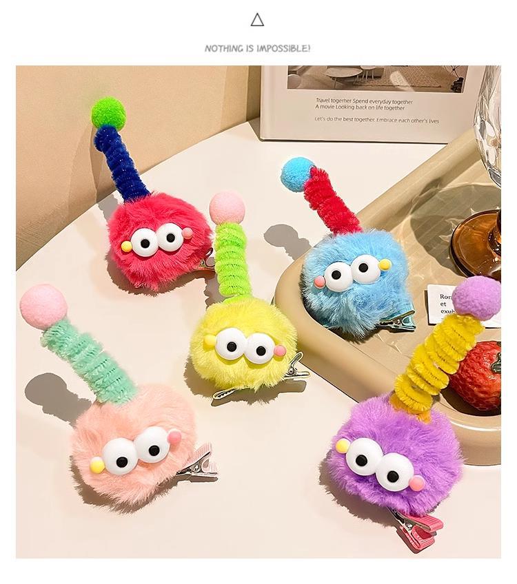 可爱毛绒娃娃煤球发夹儿童丑萌顶夹搞怪鸭嘴夹子发卡秋冬边夹头饰