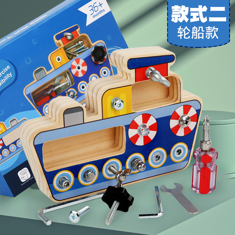 儿童益智拧螺丝趣味拆装交通轮船螺母工具维修组合抓握木制玩具