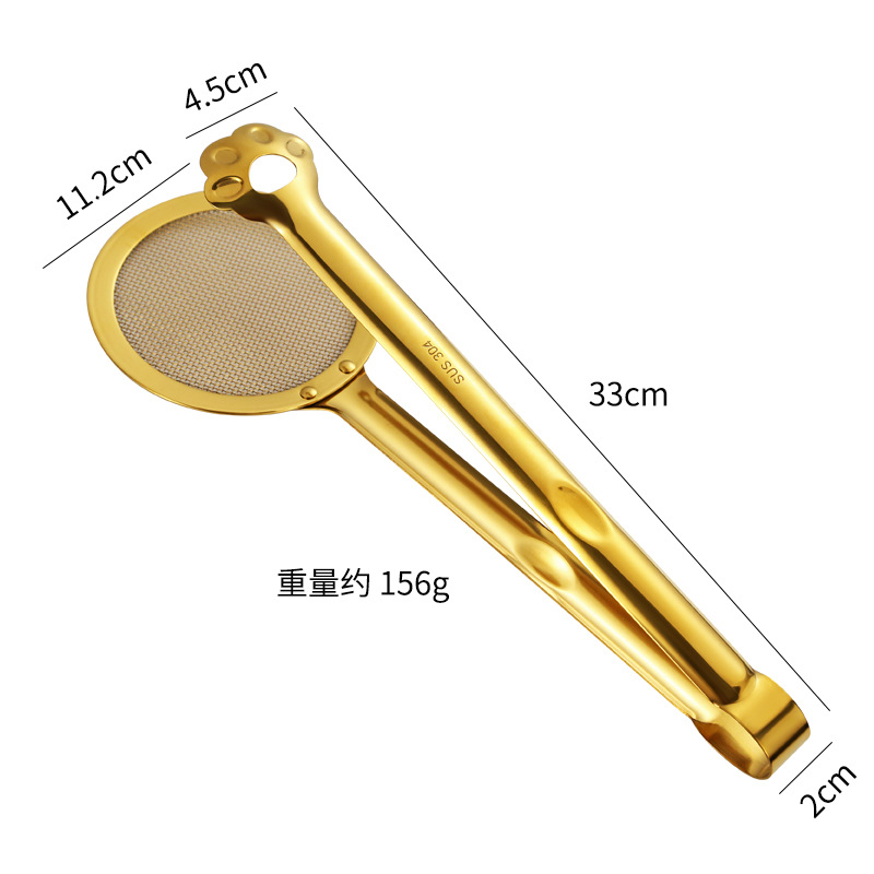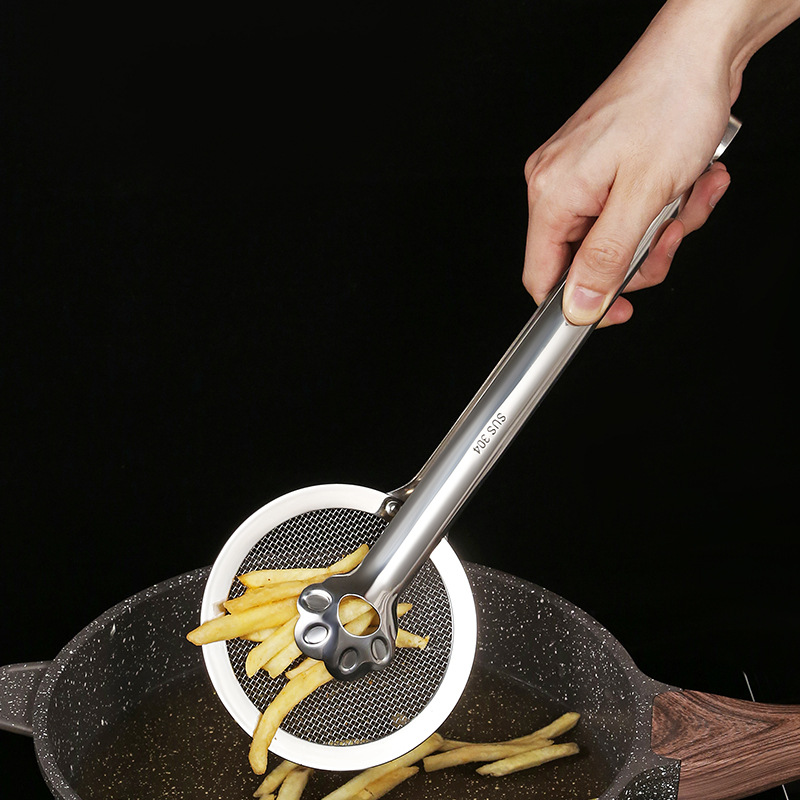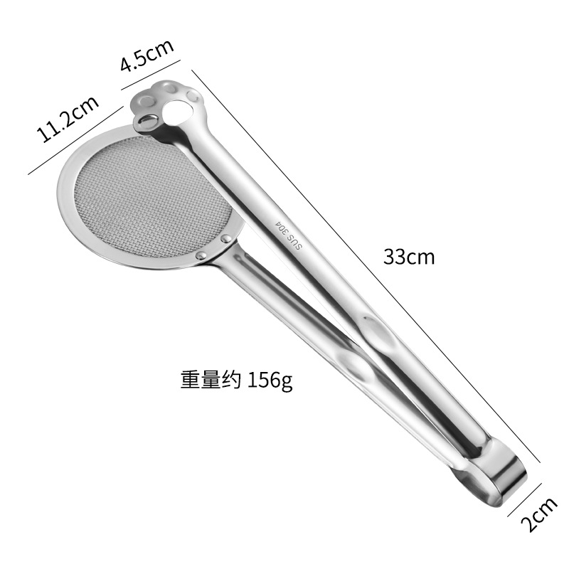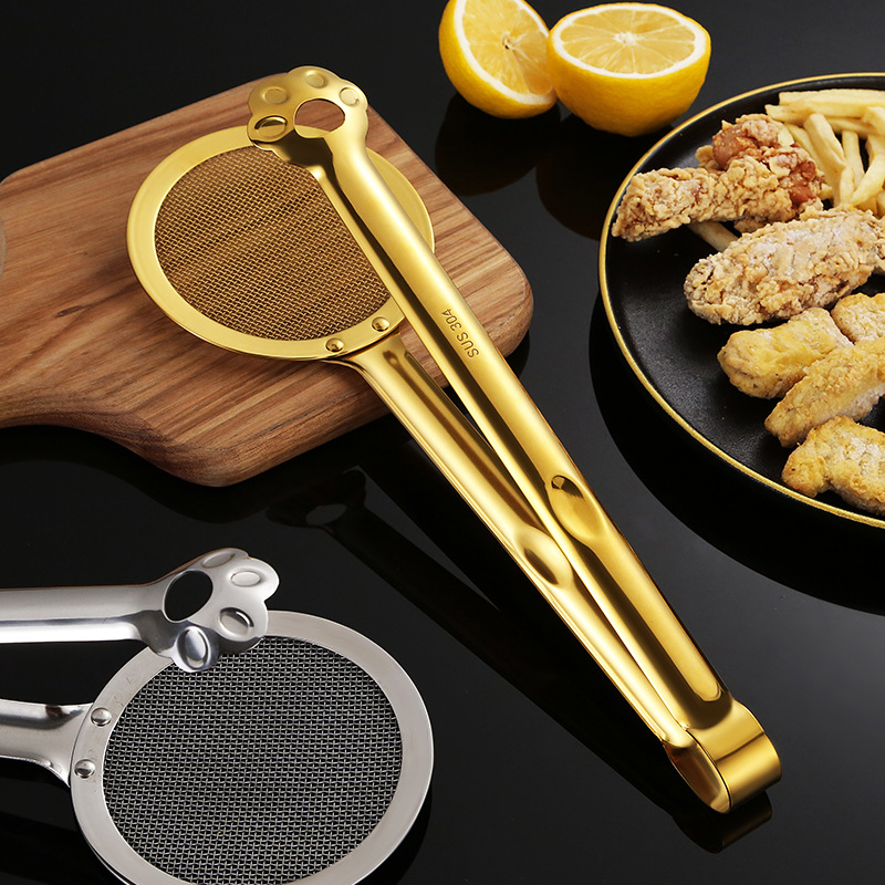 沥油熊掌夹新款304不锈钢食品夹多功能滤网夹厨房烹饪油炸捞夹子