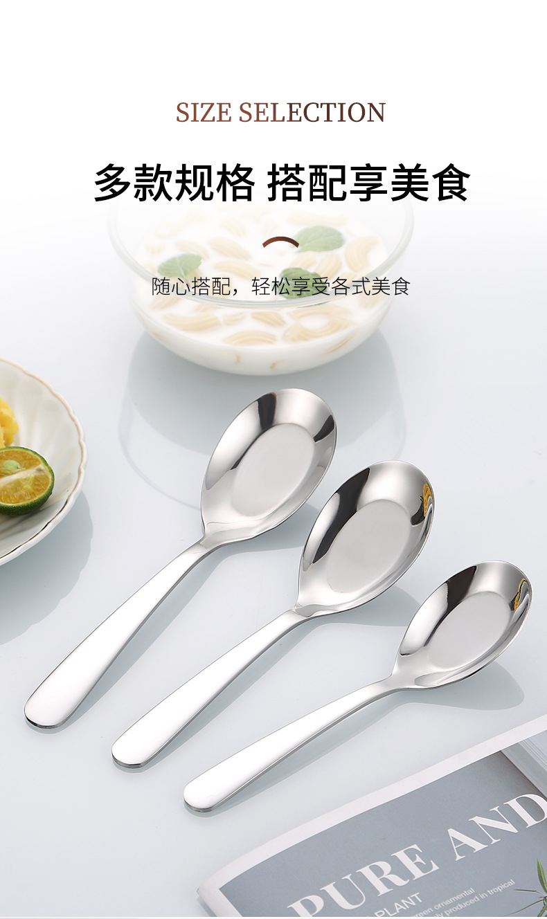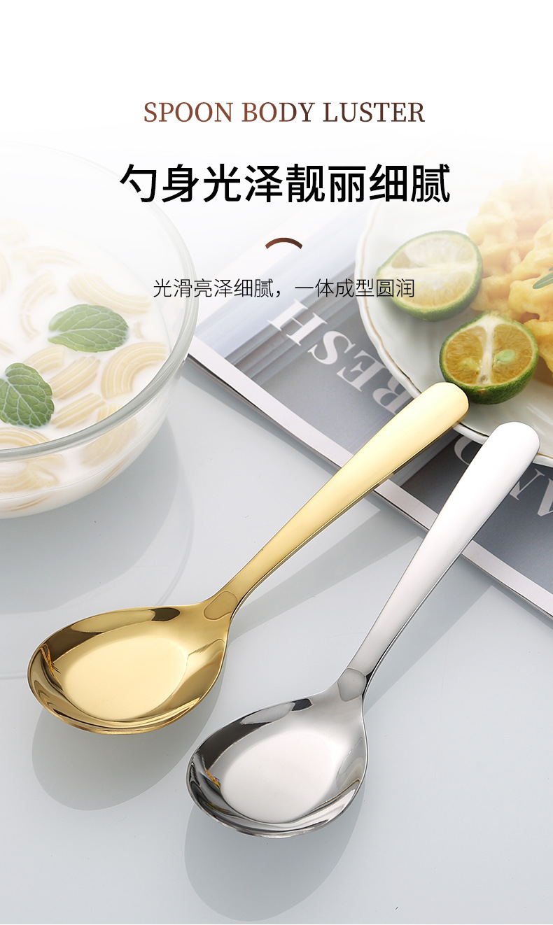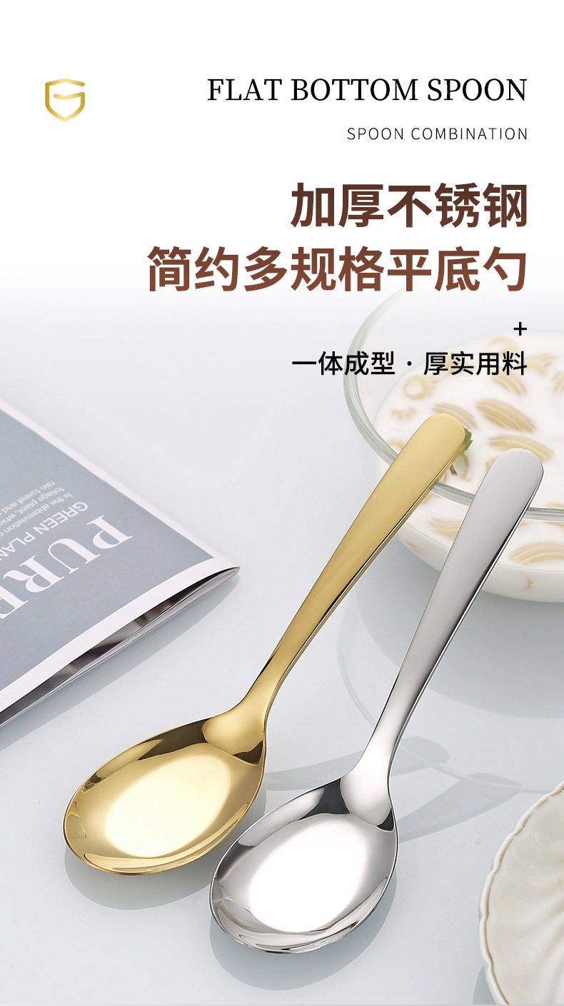 不锈钢平底勺304勺子中式加厚调羹饭店食堂酒店吃饭勺子家用汤匙