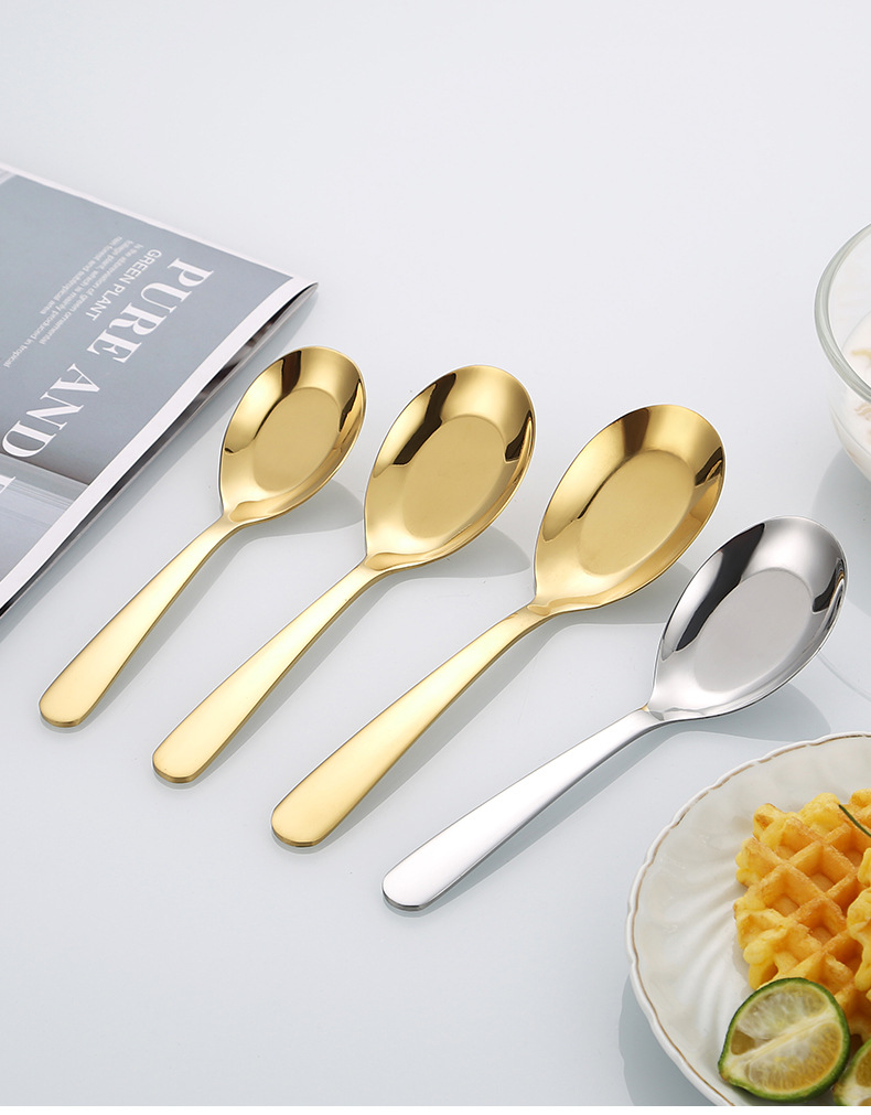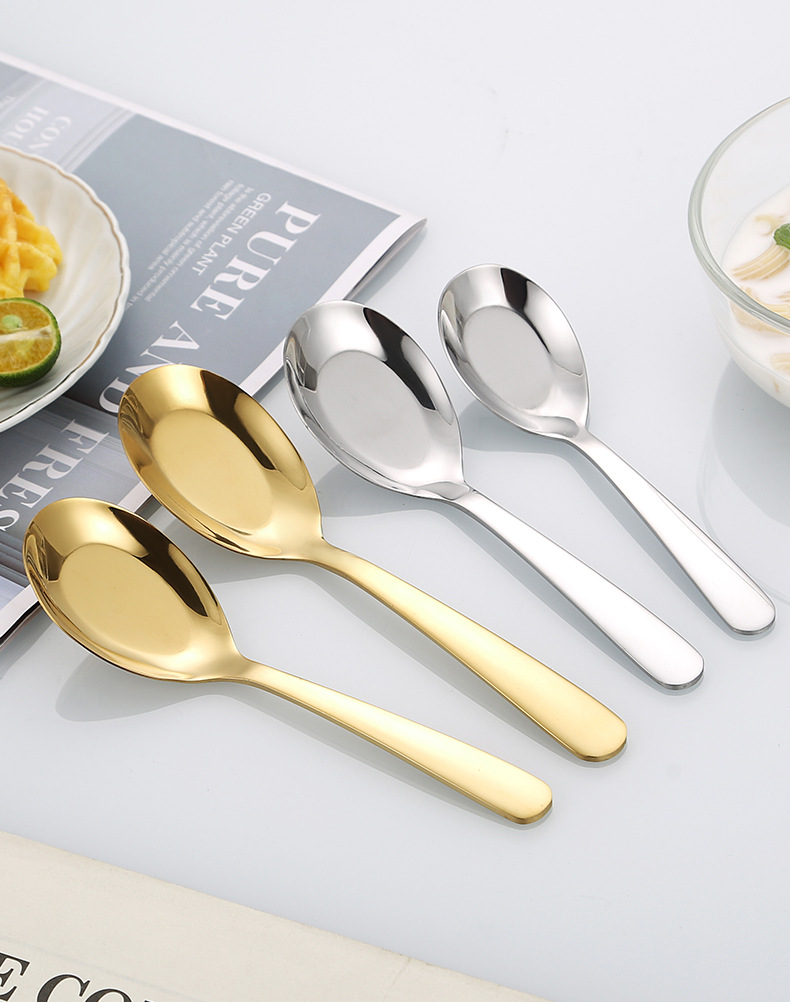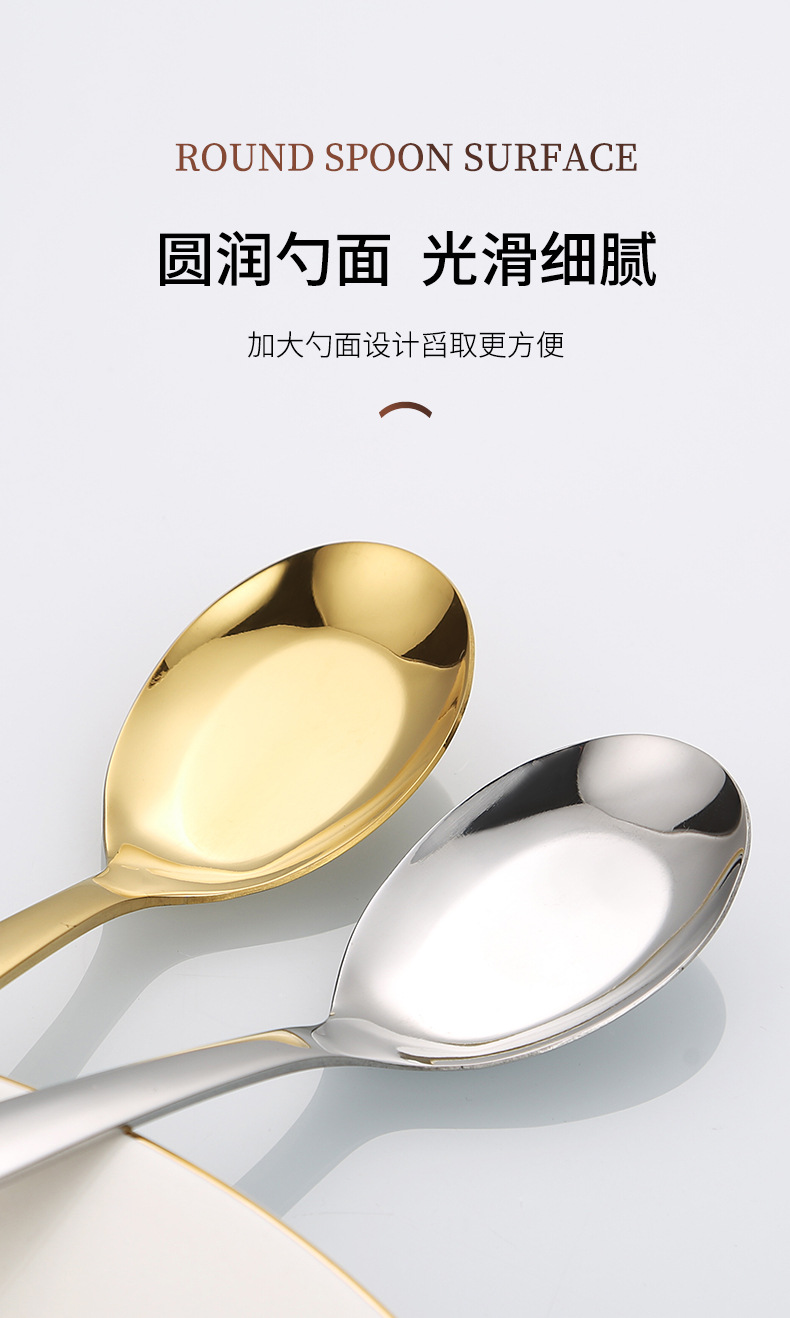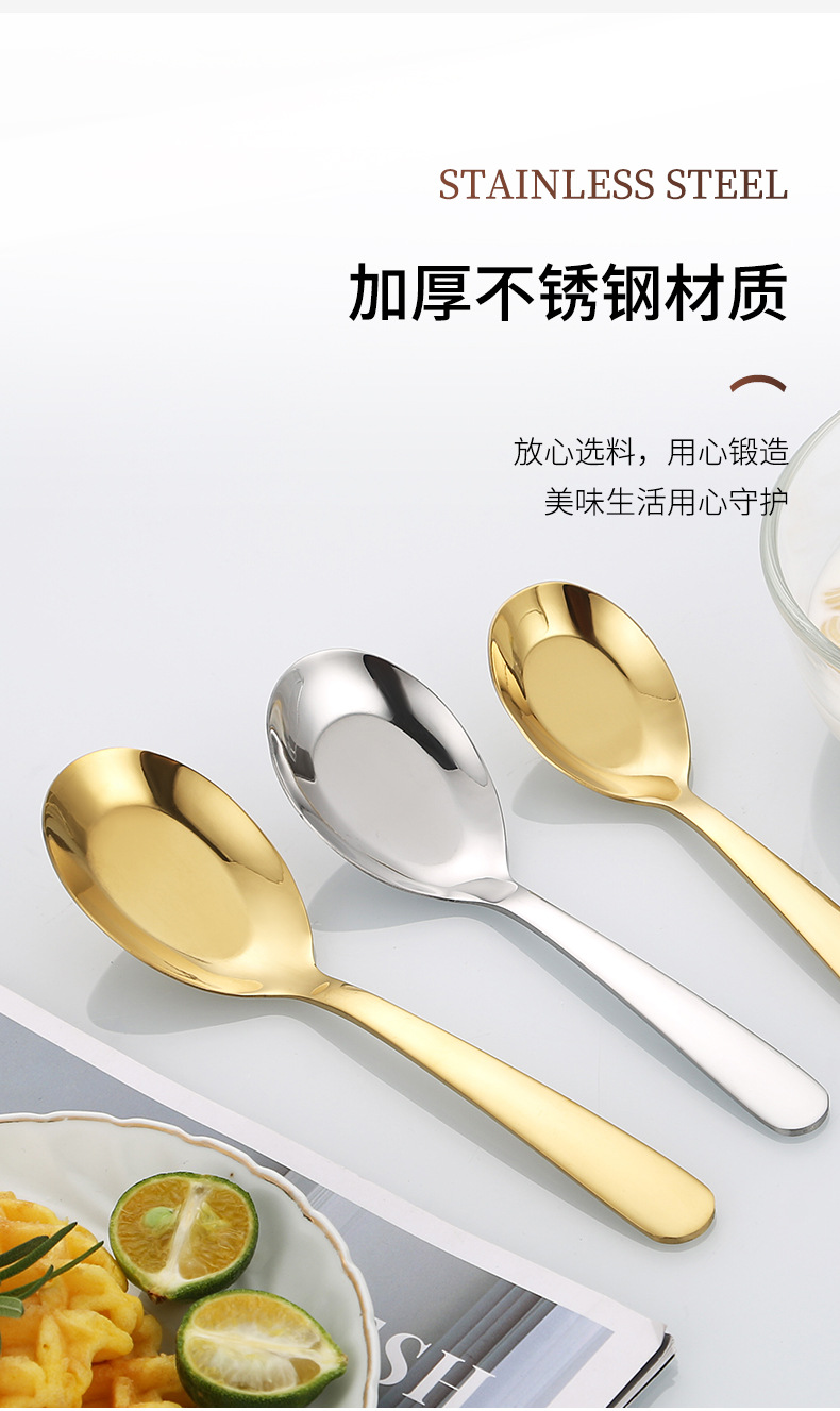 不锈钢平底勺304勺子中式加厚调羹饭店食堂酒店吃饭勺子家用汤匙