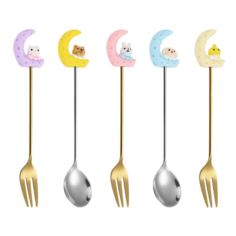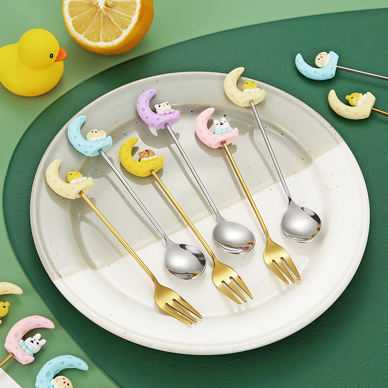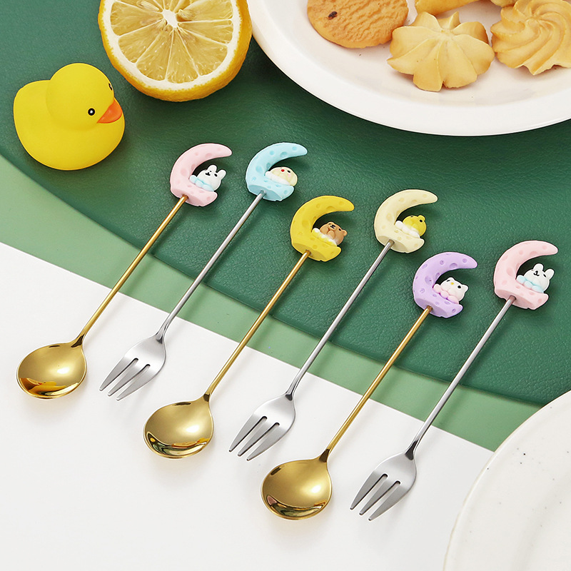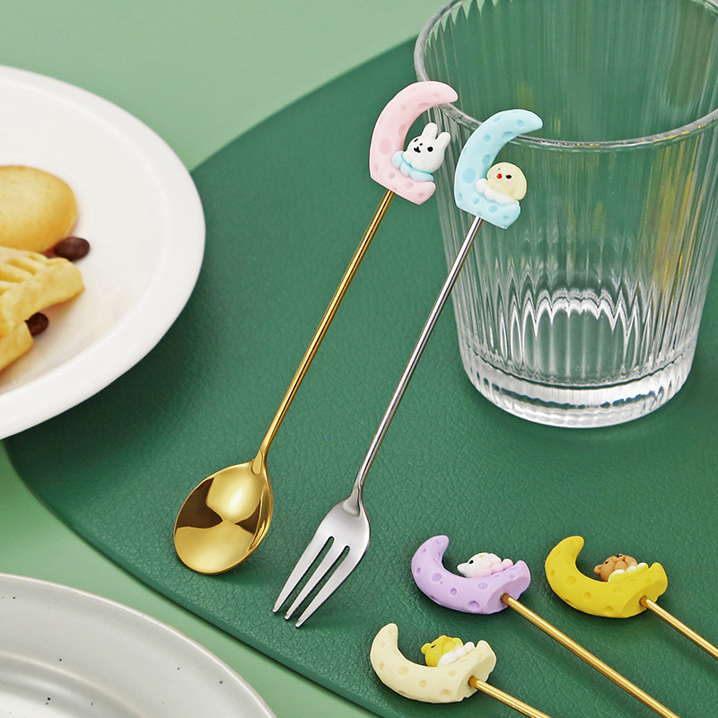 月亮兔卡通勺子新款不锈钢咖啡搅拌勺萌新可爱甜品勺蛋糕水果叉子