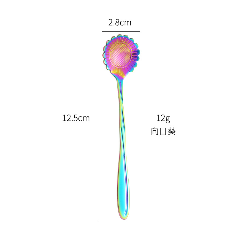 花朵勺不锈钢樱花勺幻彩色咖啡勺创意礼品小勺子跨境甜品勺8支装
