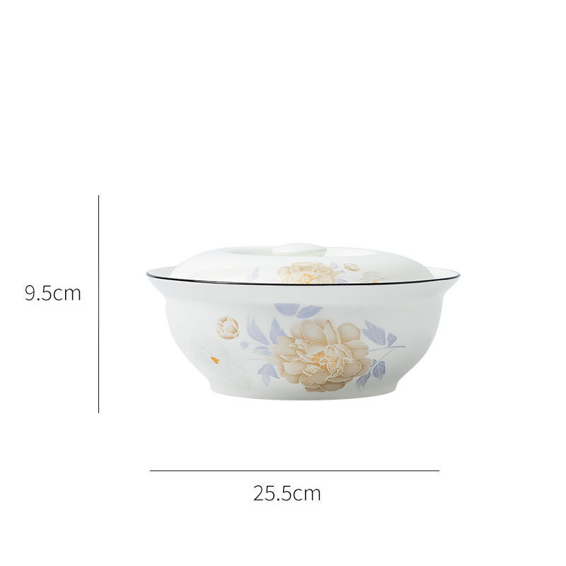 陶瓷碗月下蔷薇景德镇碗碟家用批发中式碗筷碗具盘子送礼送长辈
