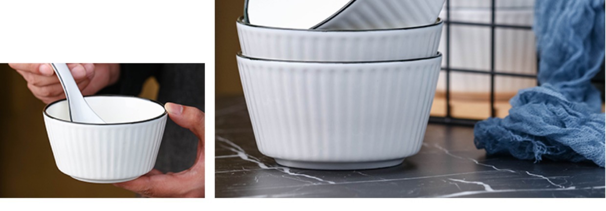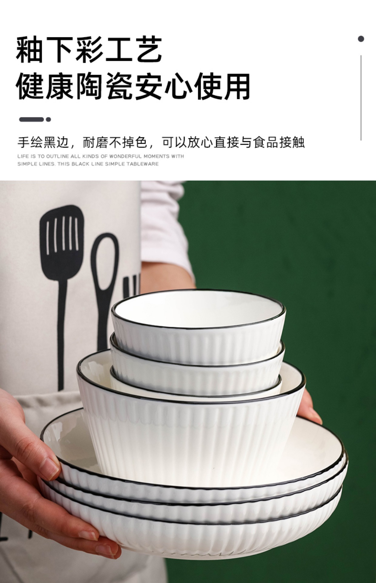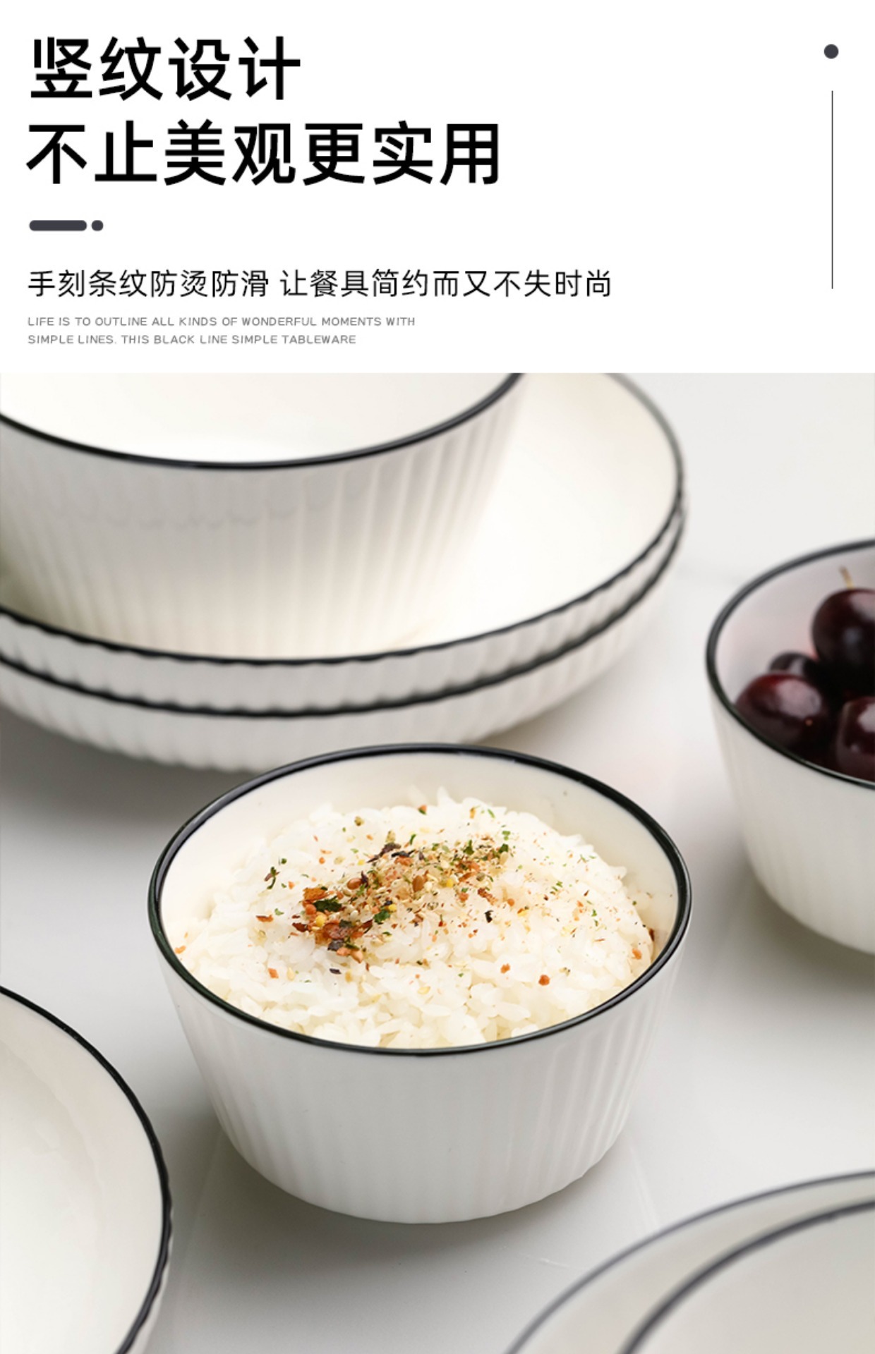 黑线竖纹自由搭配家用北欧风陶瓷碗饭碗面碗大号汤碗盘子鱼盘DIY