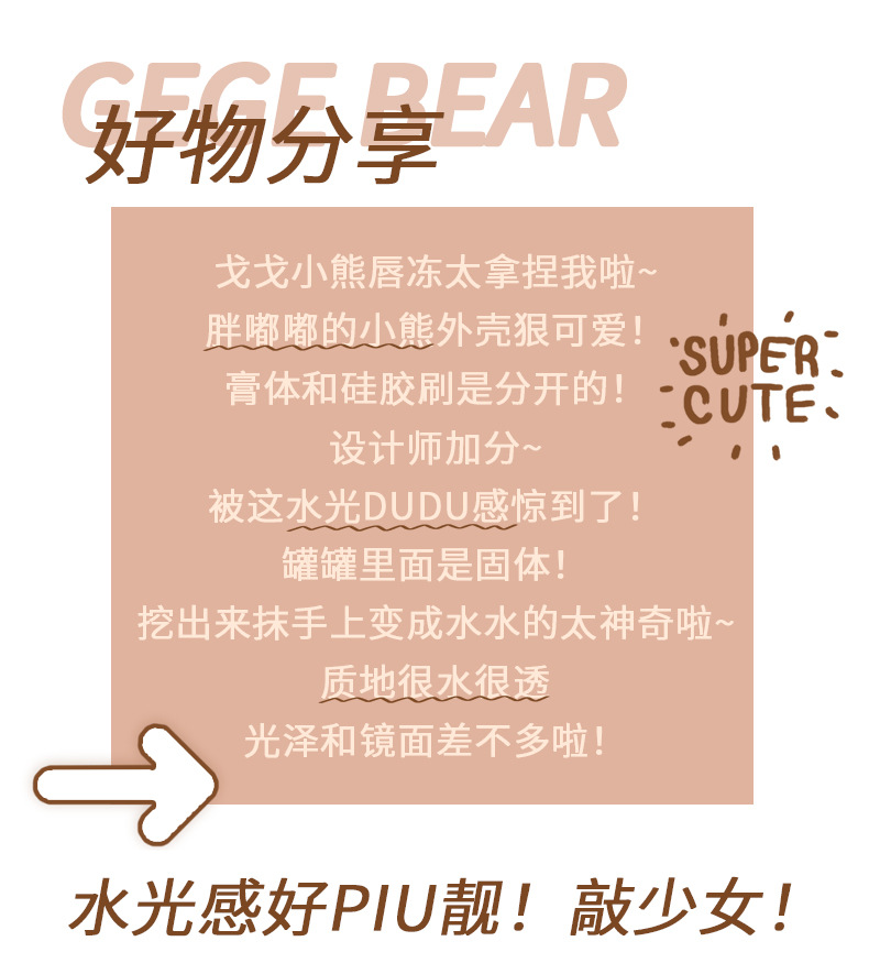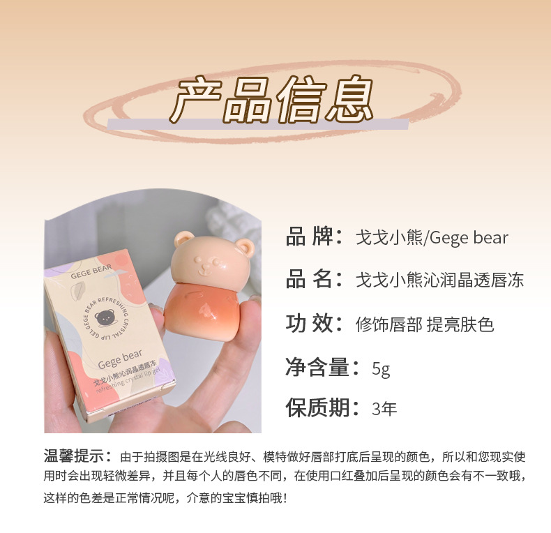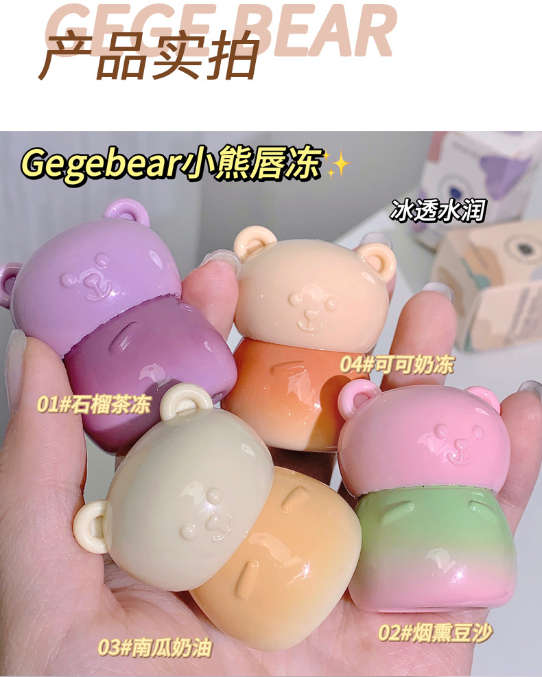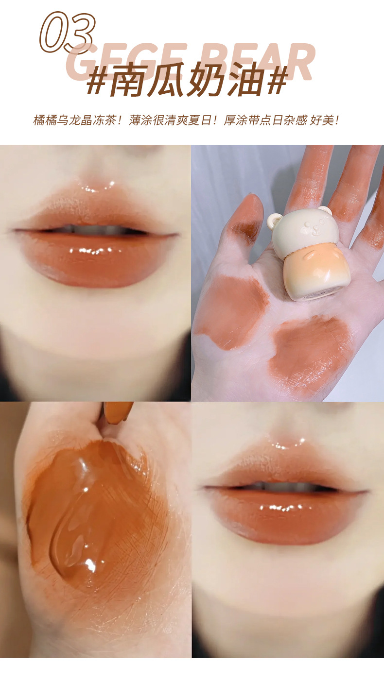 Gege bear罐罐熊晶透唇冻 显白嘟嘟唇镜面水光唇釉彩妆跨境化妆品