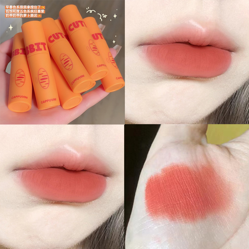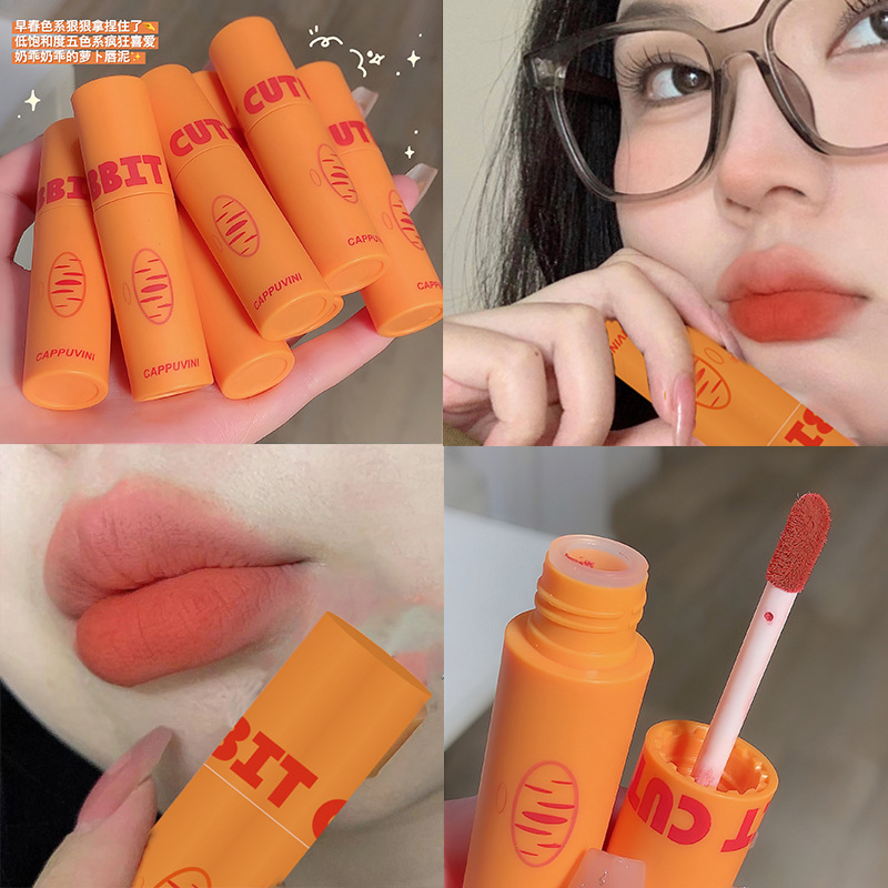 Cappuvini胡萝卜唇泥 伪素颜显白哑光雾面卡泡维妮口红丝绒唇釉