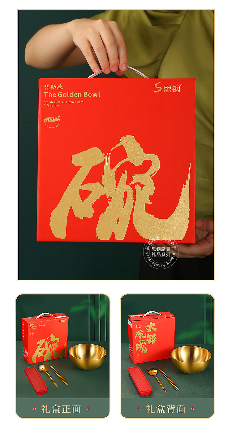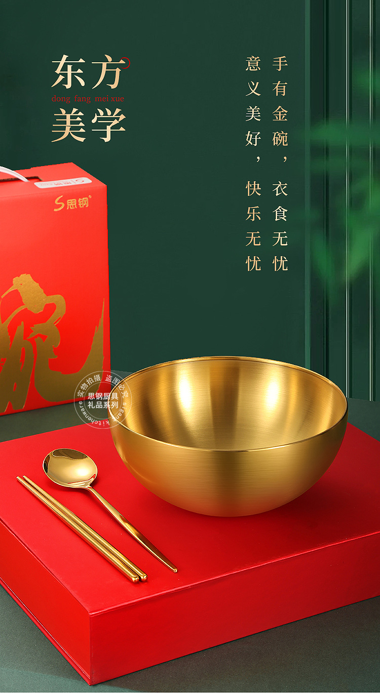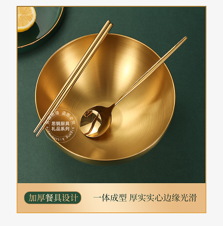 不锈钢金饭碗沙拉料理冷面碗韩式拌饭碗筷勺餐具套装开门红礼品