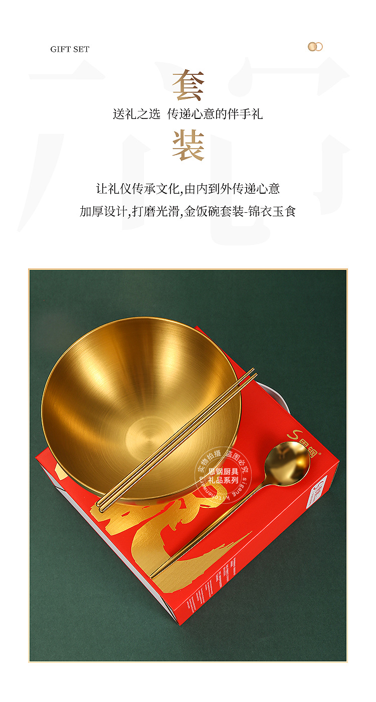 | bowl 20cm gold chopsticks: 21cm long gold spoon: 21cm long(碗20cm金筷子:长21cm 金勺:长21cm) | USD $3.93 | 4935 set available |