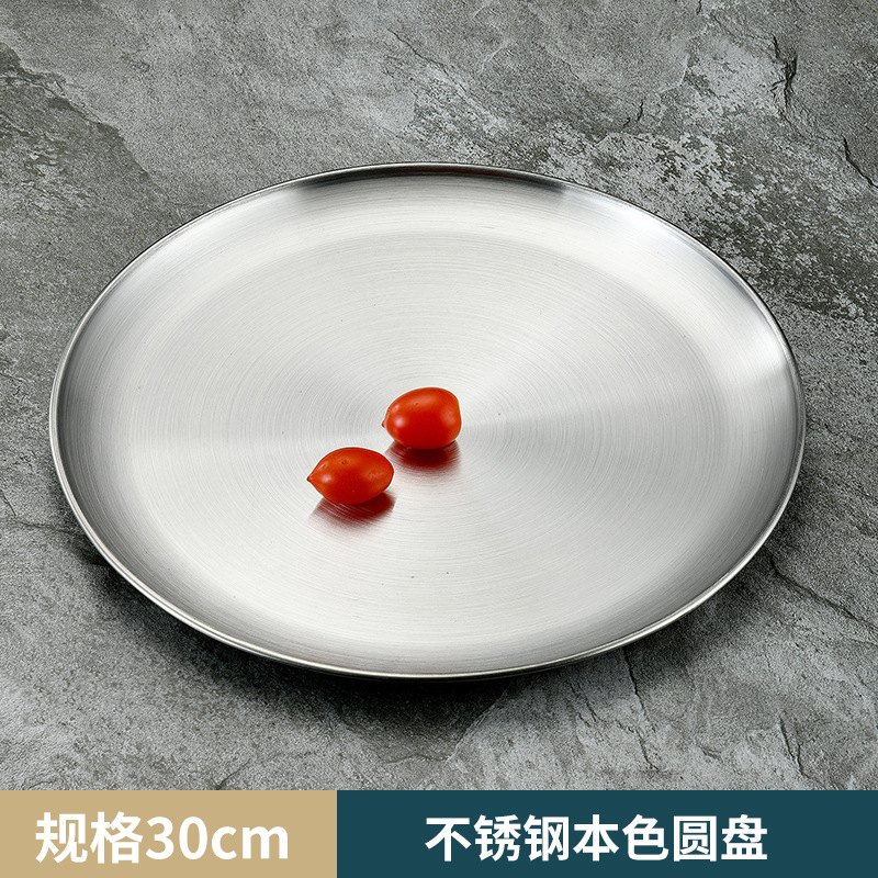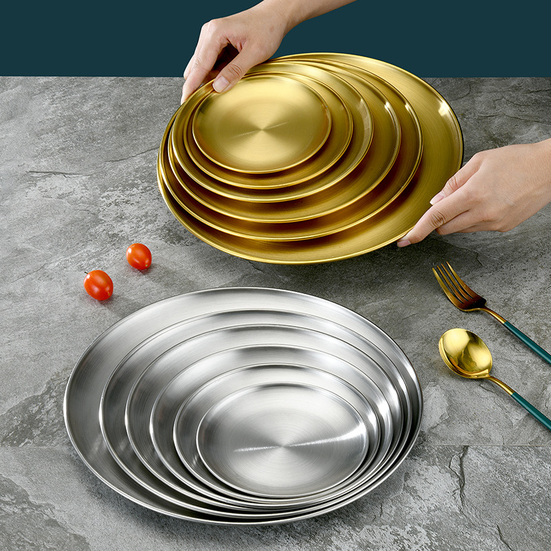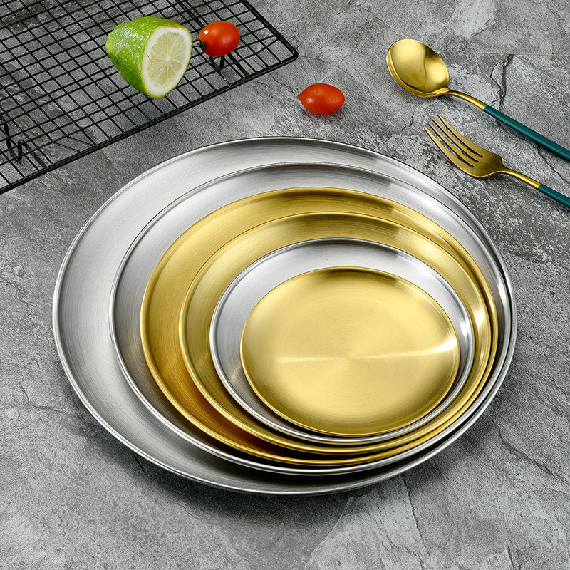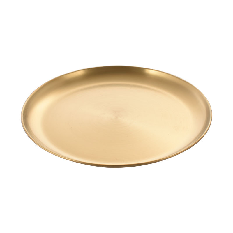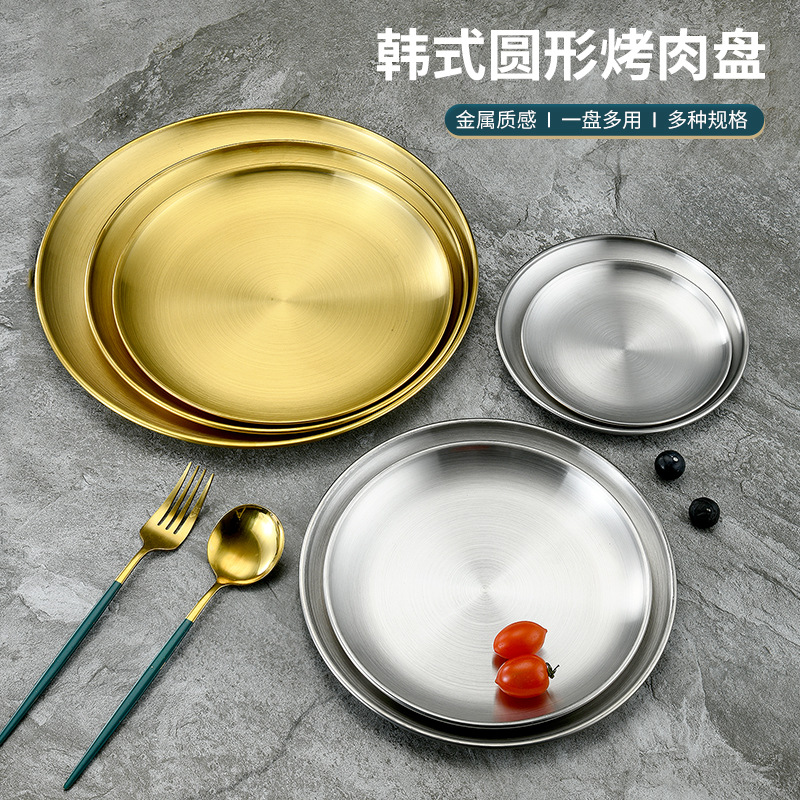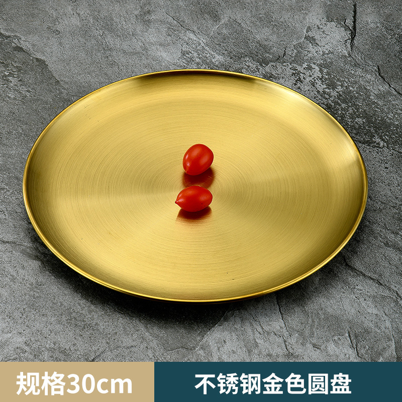 不锈钢盘 西餐甜品蛋糕水果平底韩式工艺置物金色单层烤肉圆盘子
