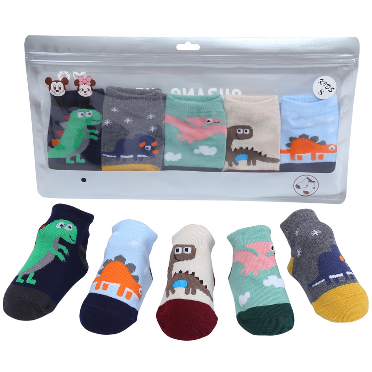 宝宝男童卡通恐龙婴儿袜子短袜 卡通柔软可爱薄款防滑宝宝地板袜