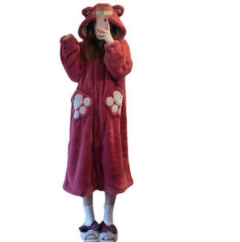 可爱草莓熊玉桂狗大眼仔珊瑚绒睡衣22年新款冬季睡裙加厚长款睡袍