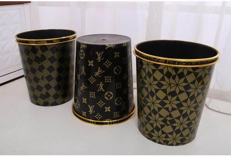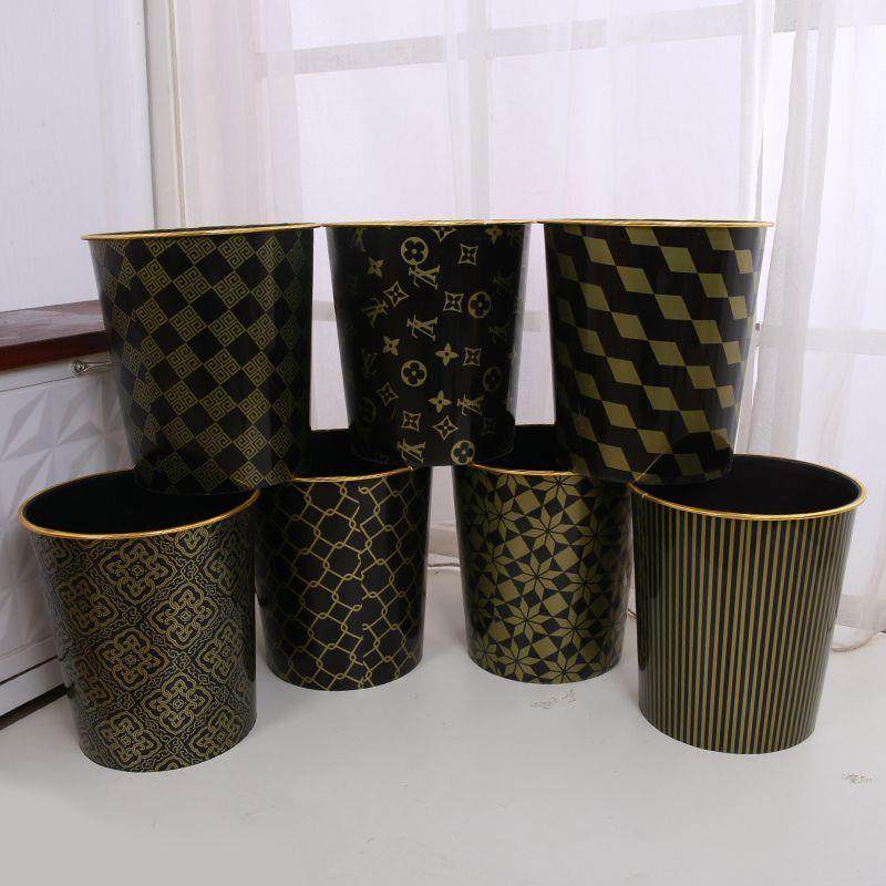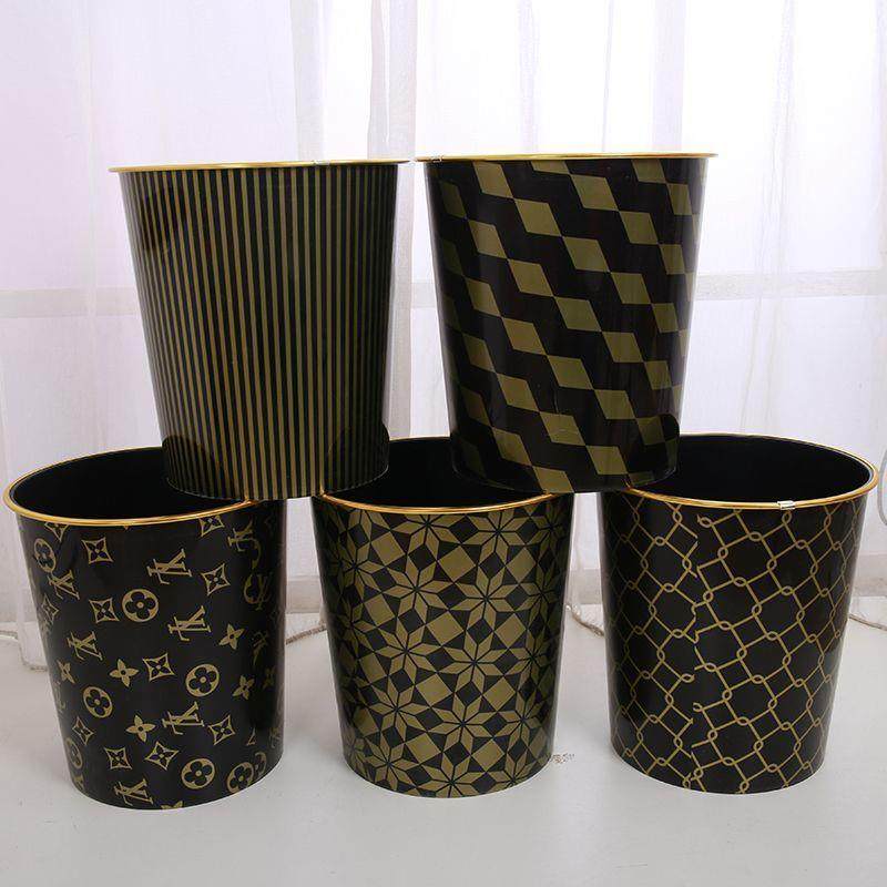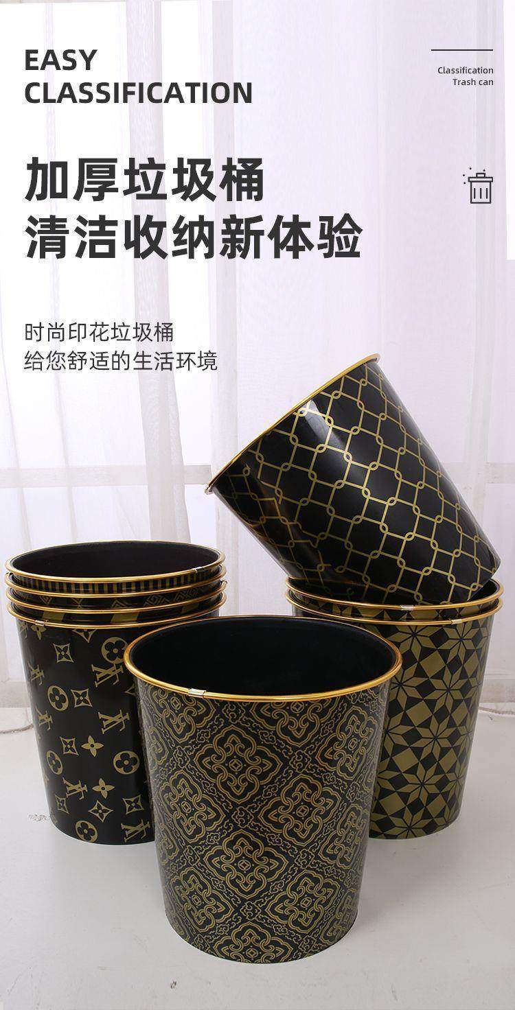 金边垃圾桶无盖饭店家用花纹黑色家用纸篓厕所床头甩卖垃圾桶家用