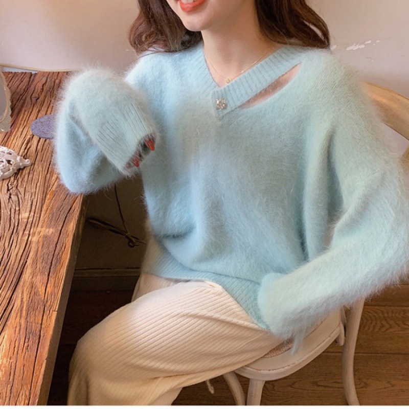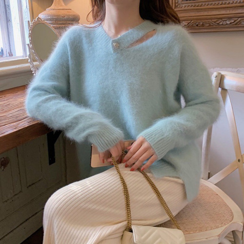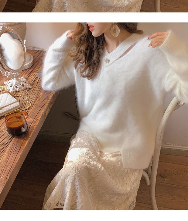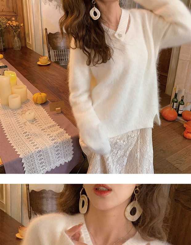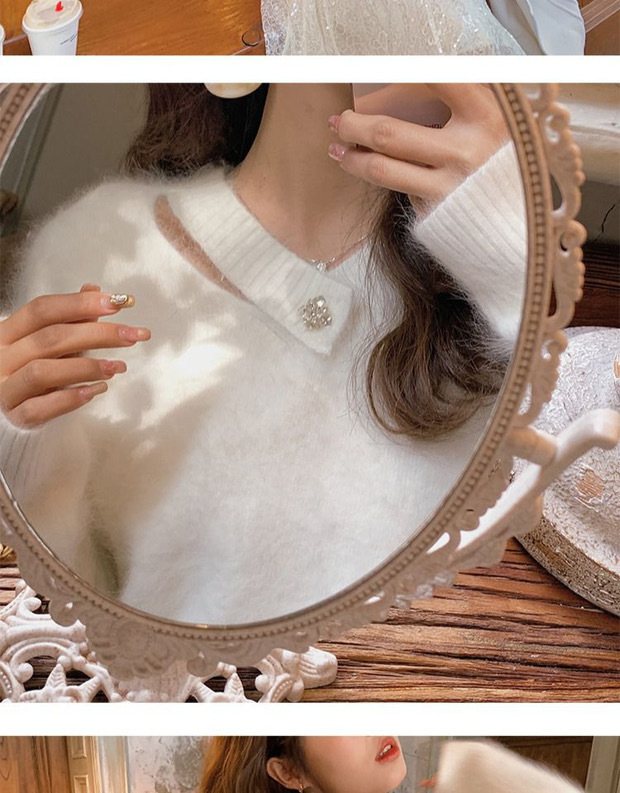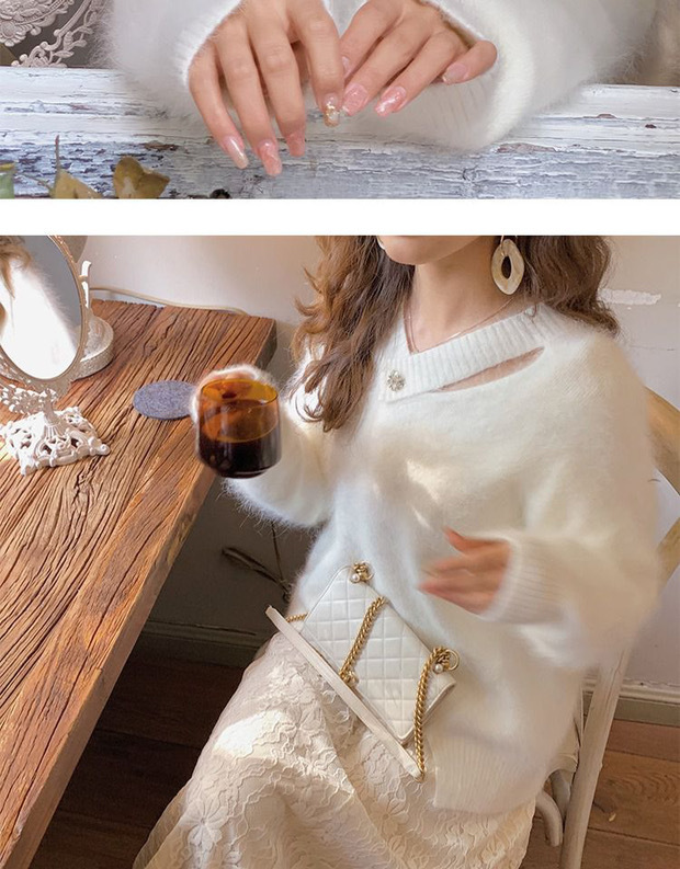 白色水貂绒毛衣女设计感小清新法式气质秋冬慵懒风针织衫上衣女