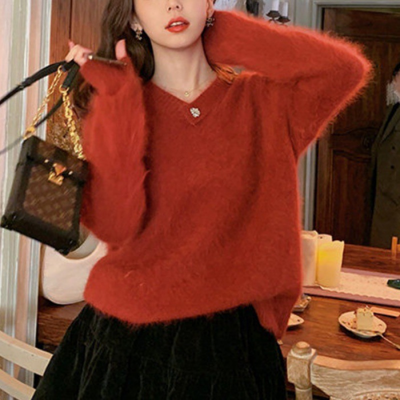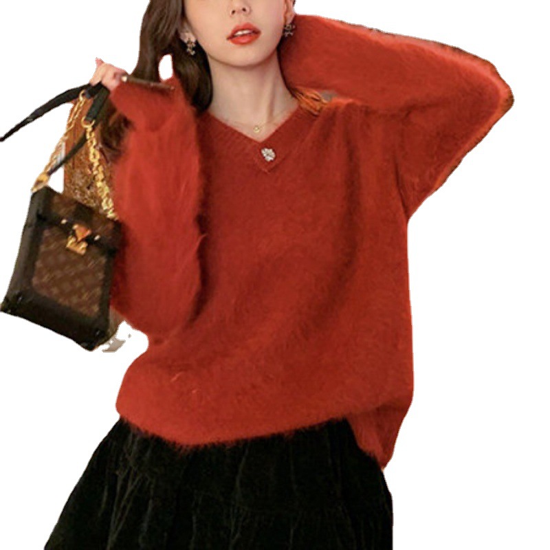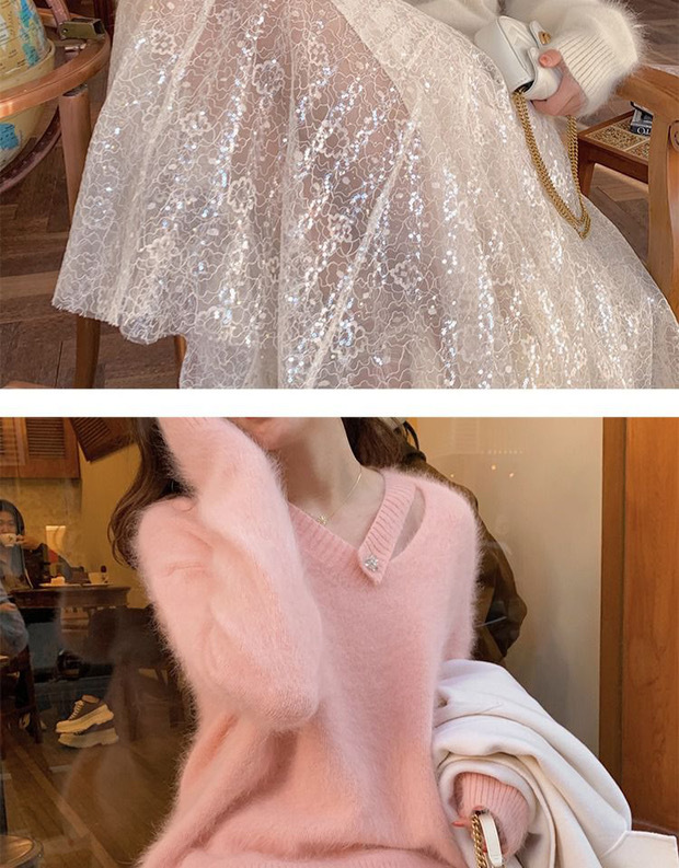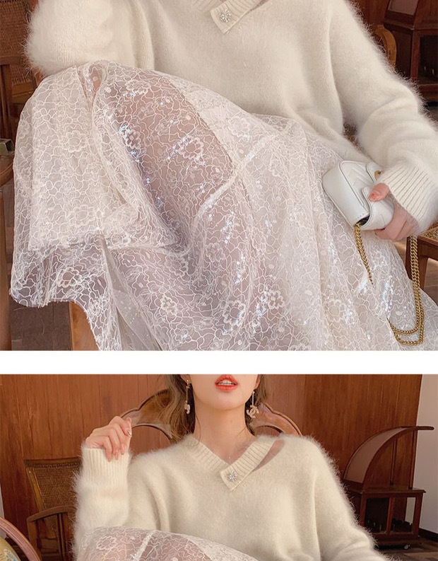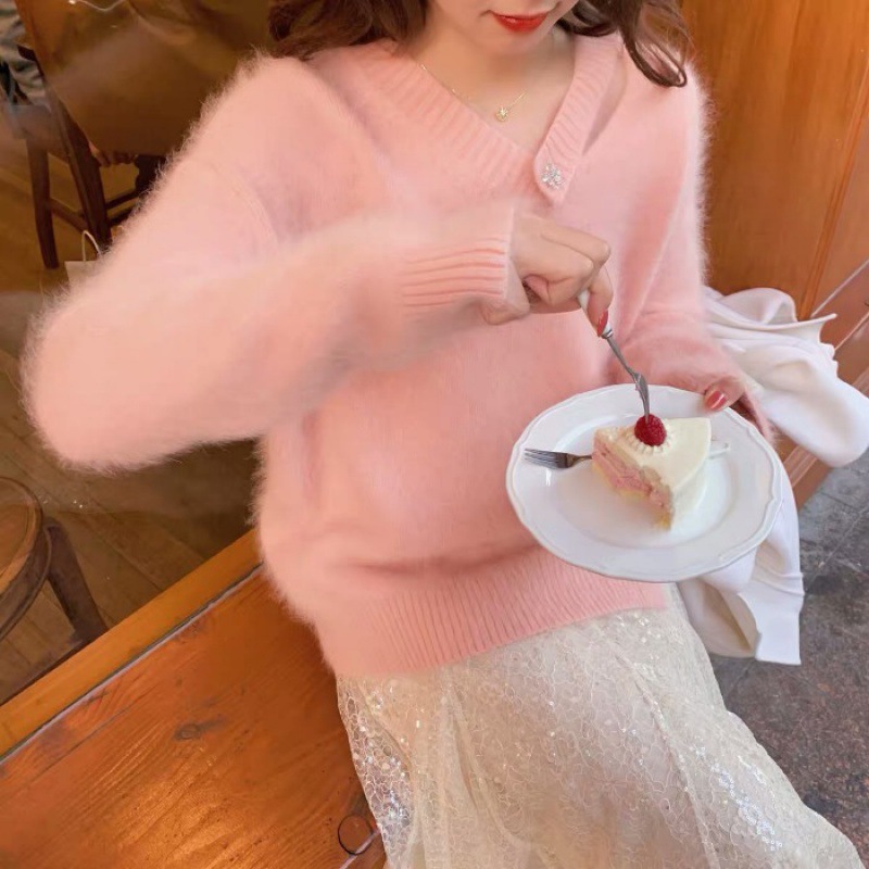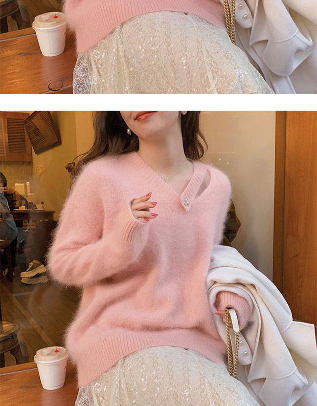 白色水貂绒毛衣女设计感小清新法式气质秋冬慵懒风针织衫上衣女