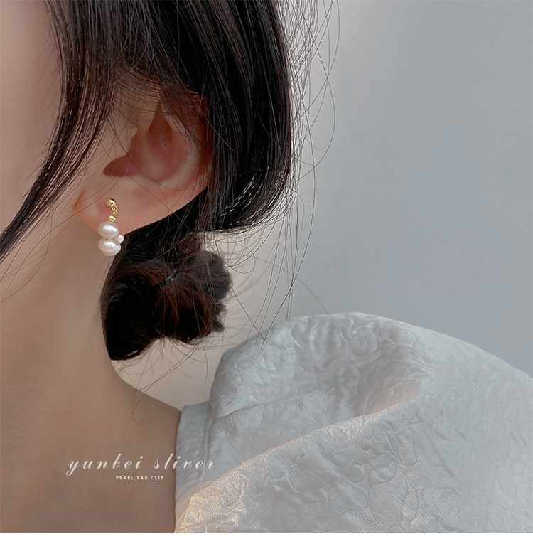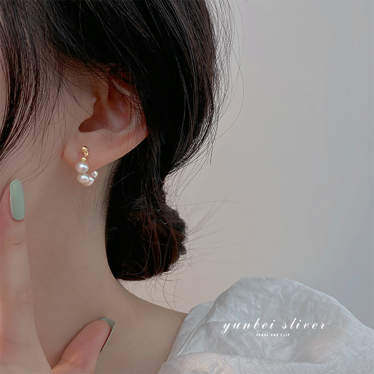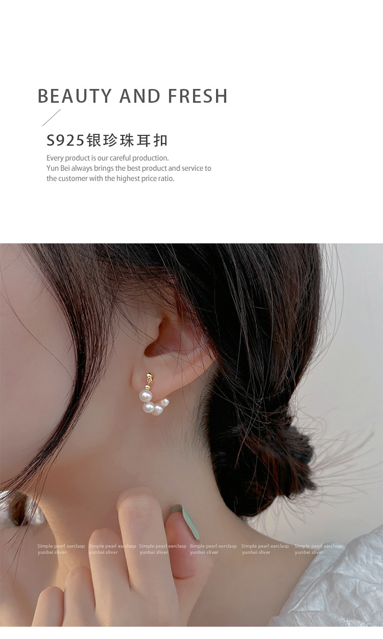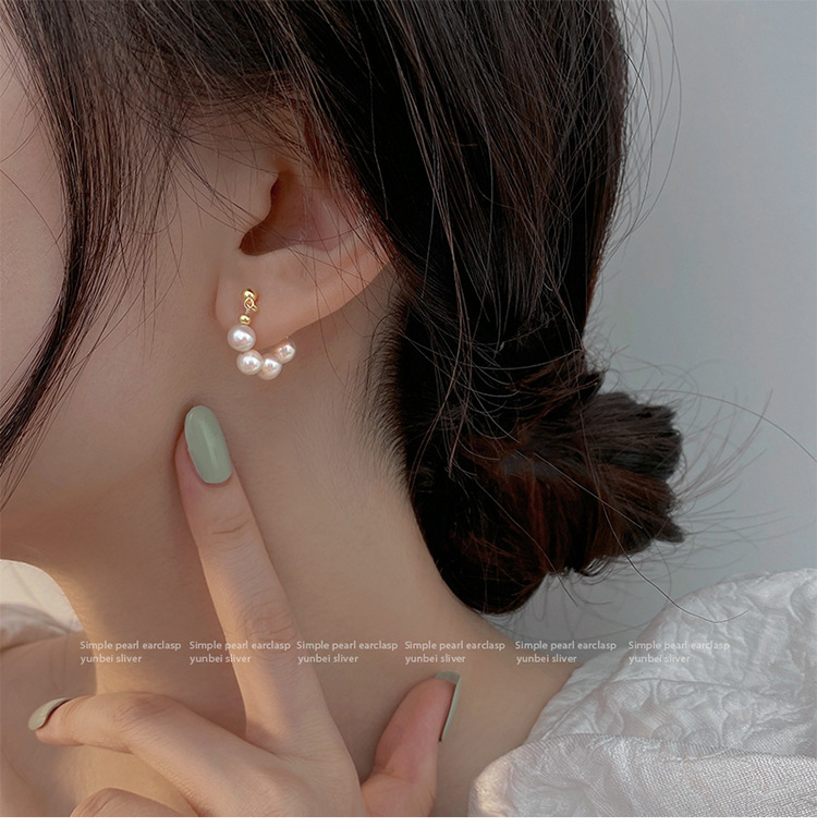 925银针淡水珍珠耳圈法式ins风时尚气质大气耳环韩版气质网红耳钉
