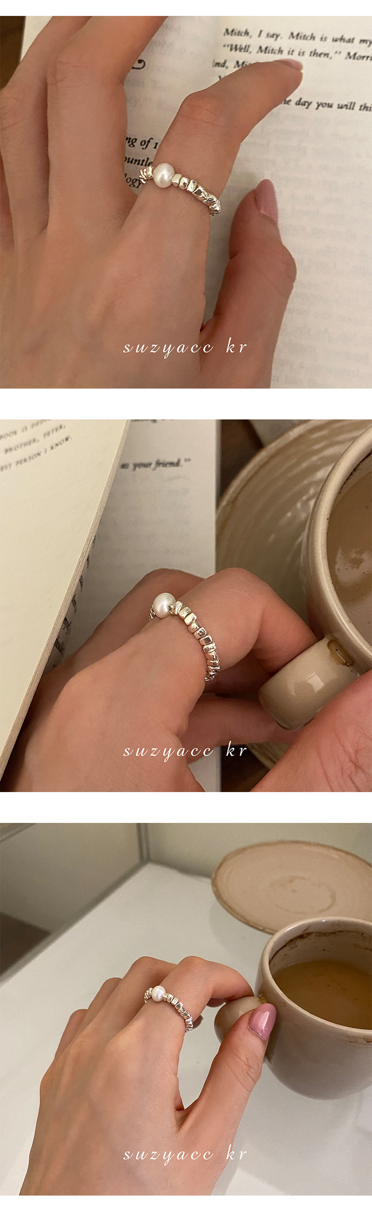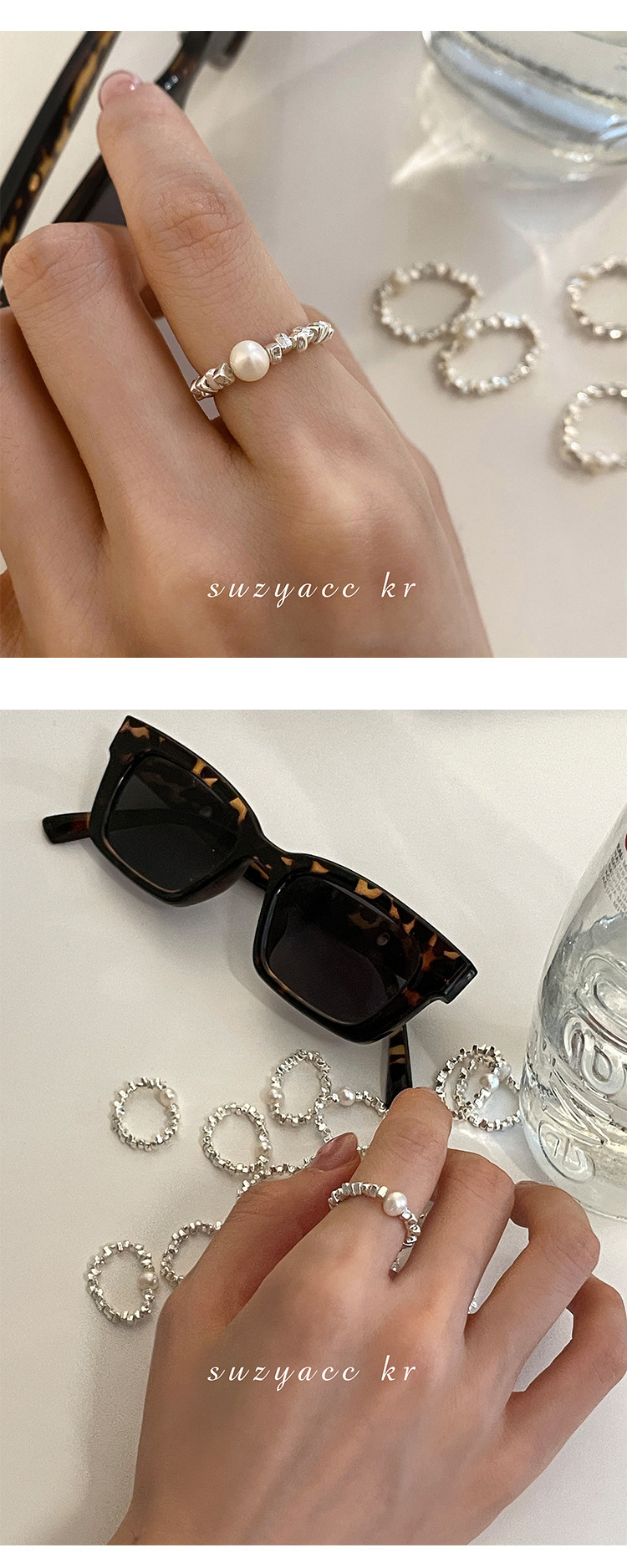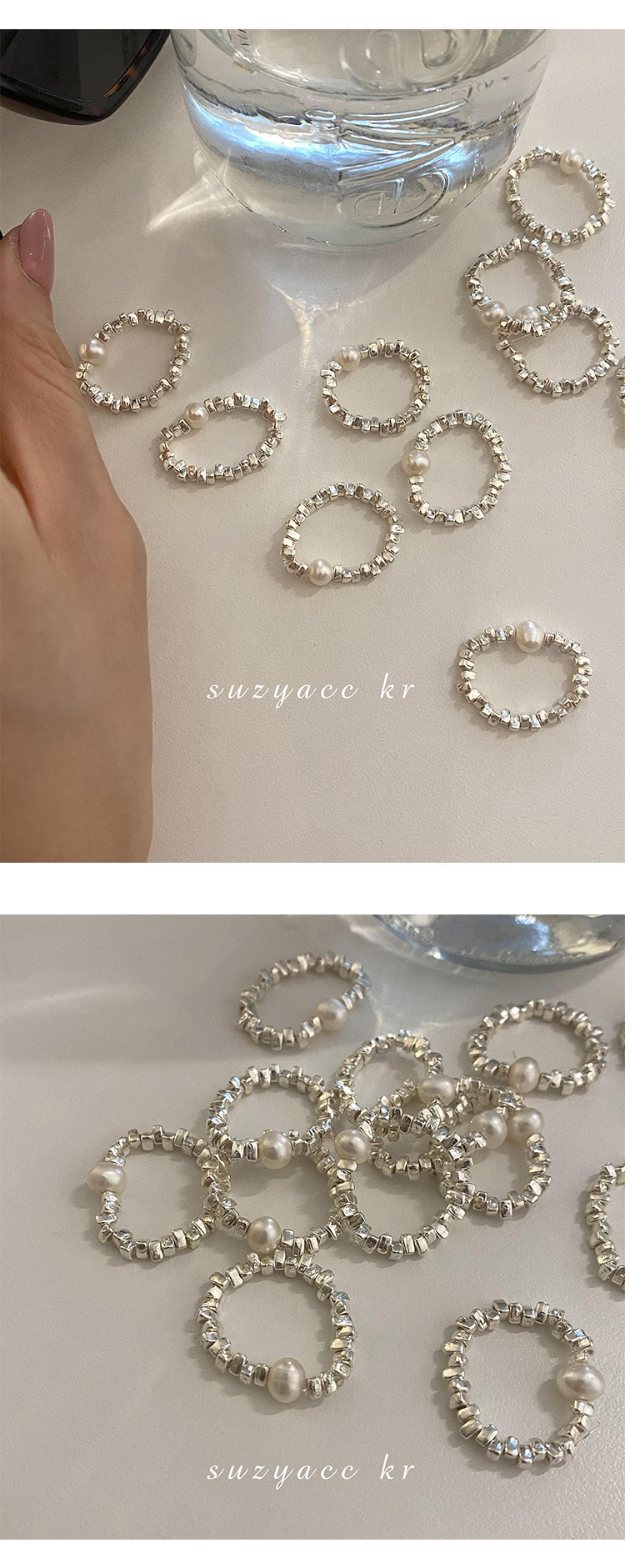 碎银子淡水珍珠戒指女简约设计感时尚个性创意食指弹力可调节指环