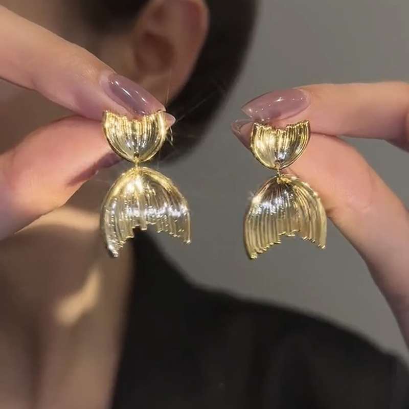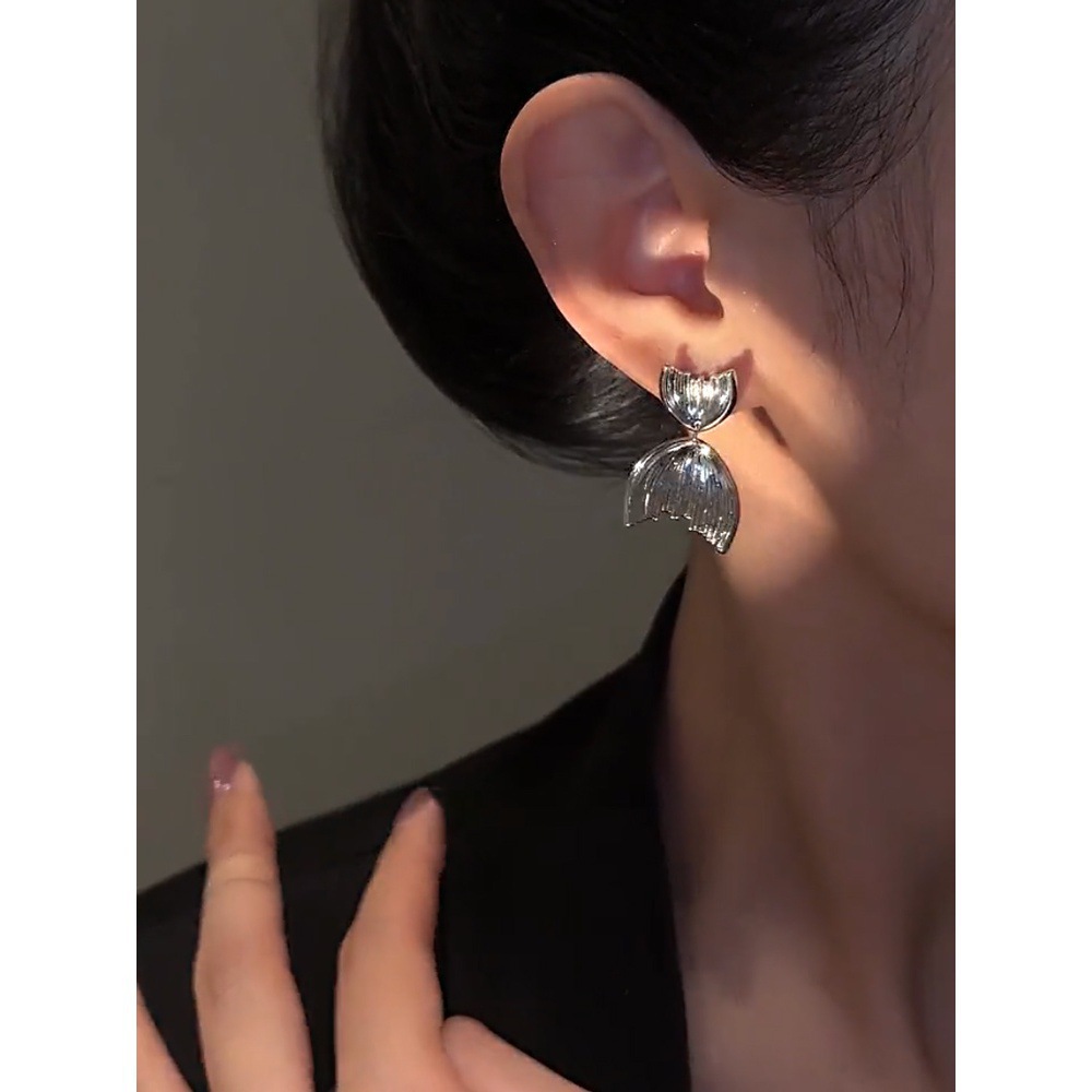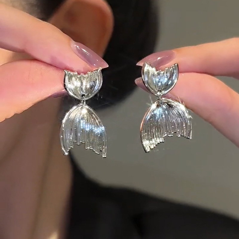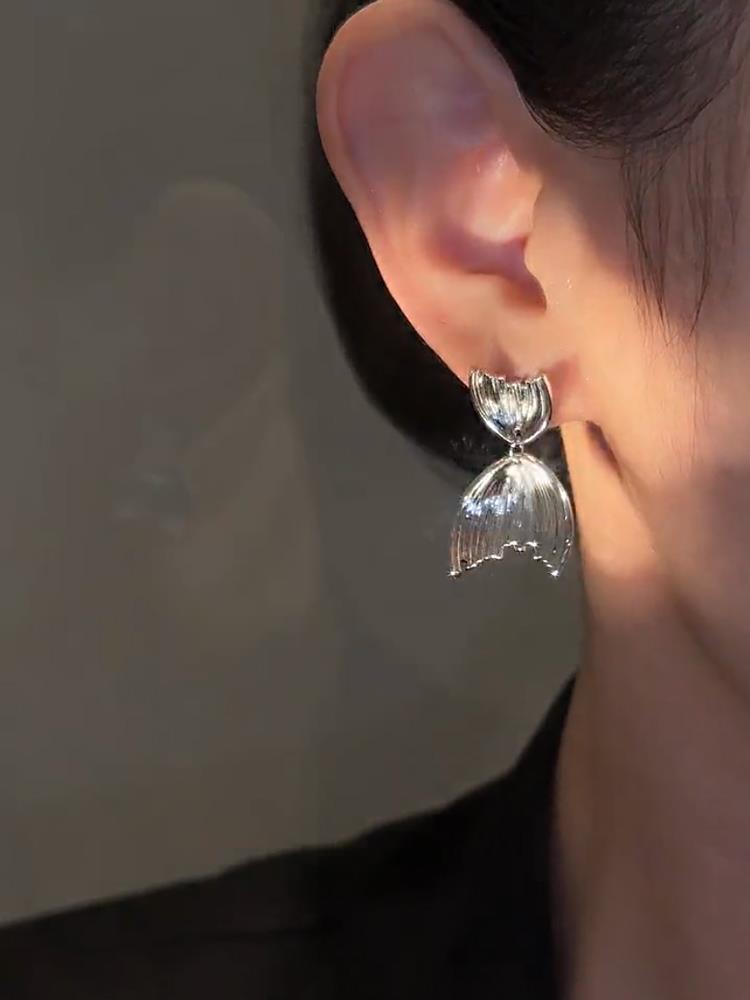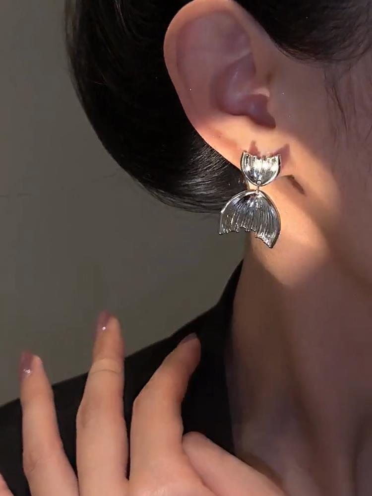 个性鱼尾耳环设计感银色鱼尾925银针耳钉简约时尚冷淡高级感耳饰