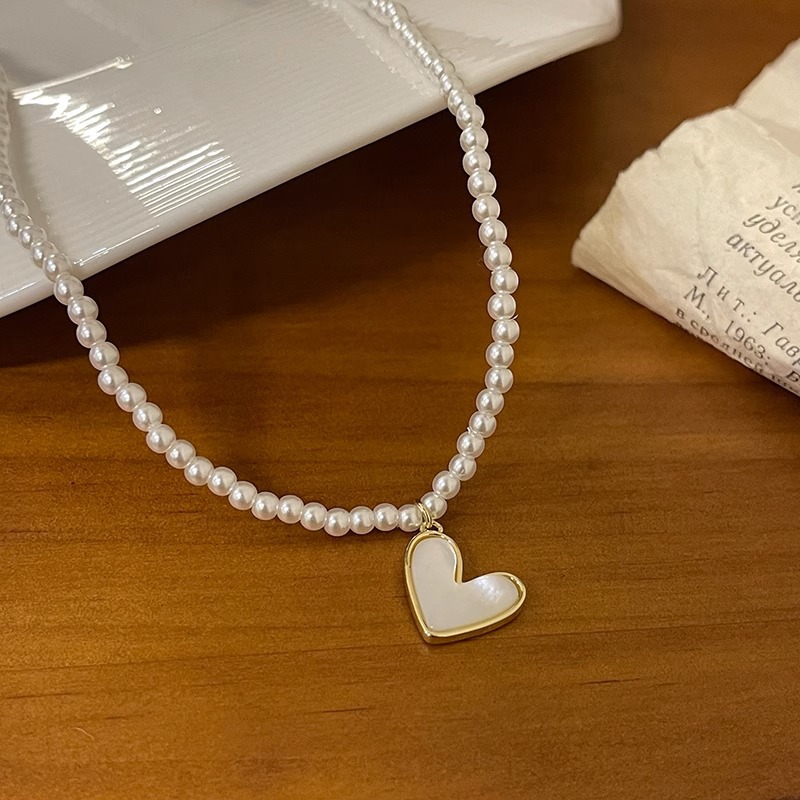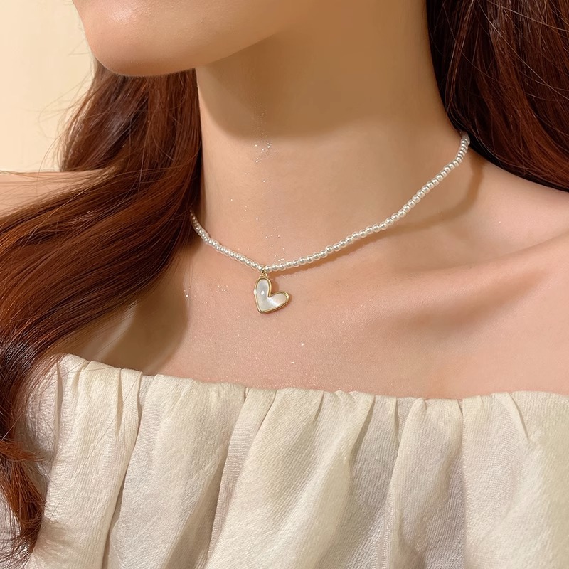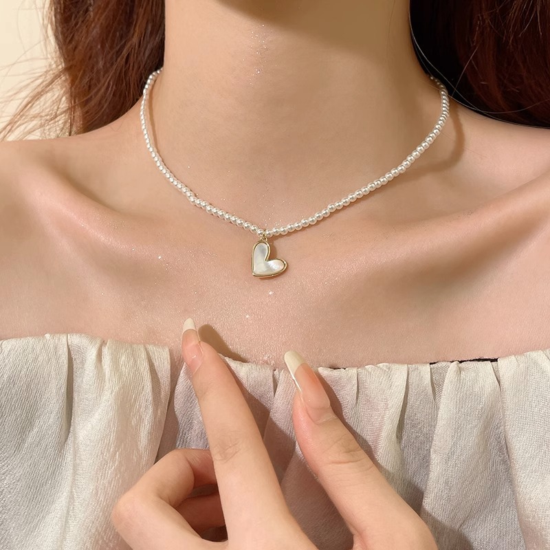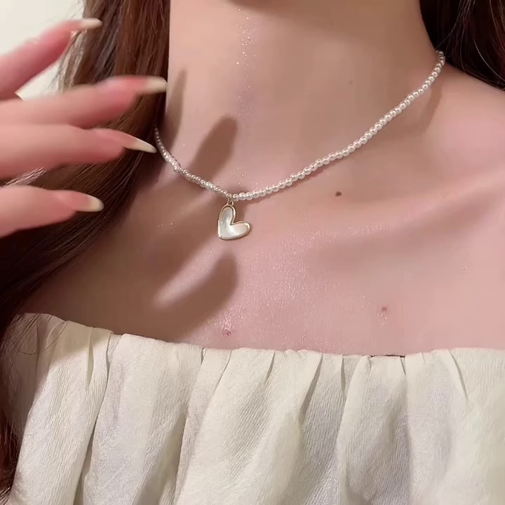 小颗粒玻璃珍珠卸掉爱心项链女小众设计感高级轻奢气质网红颈链