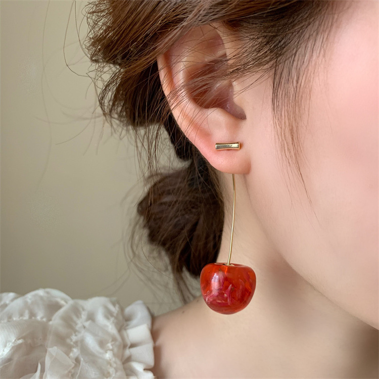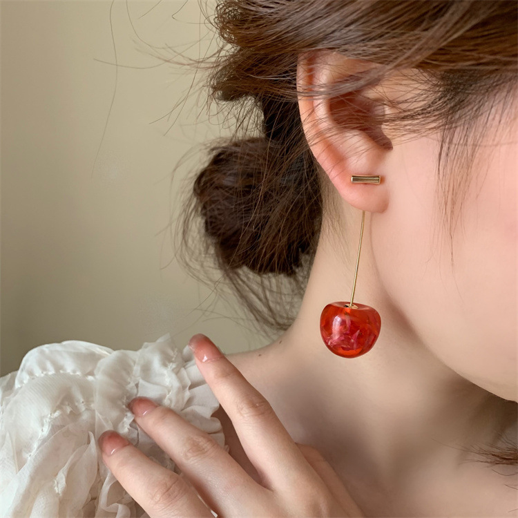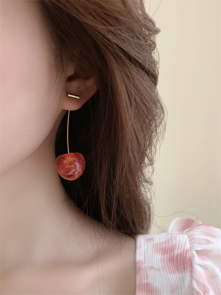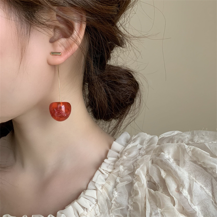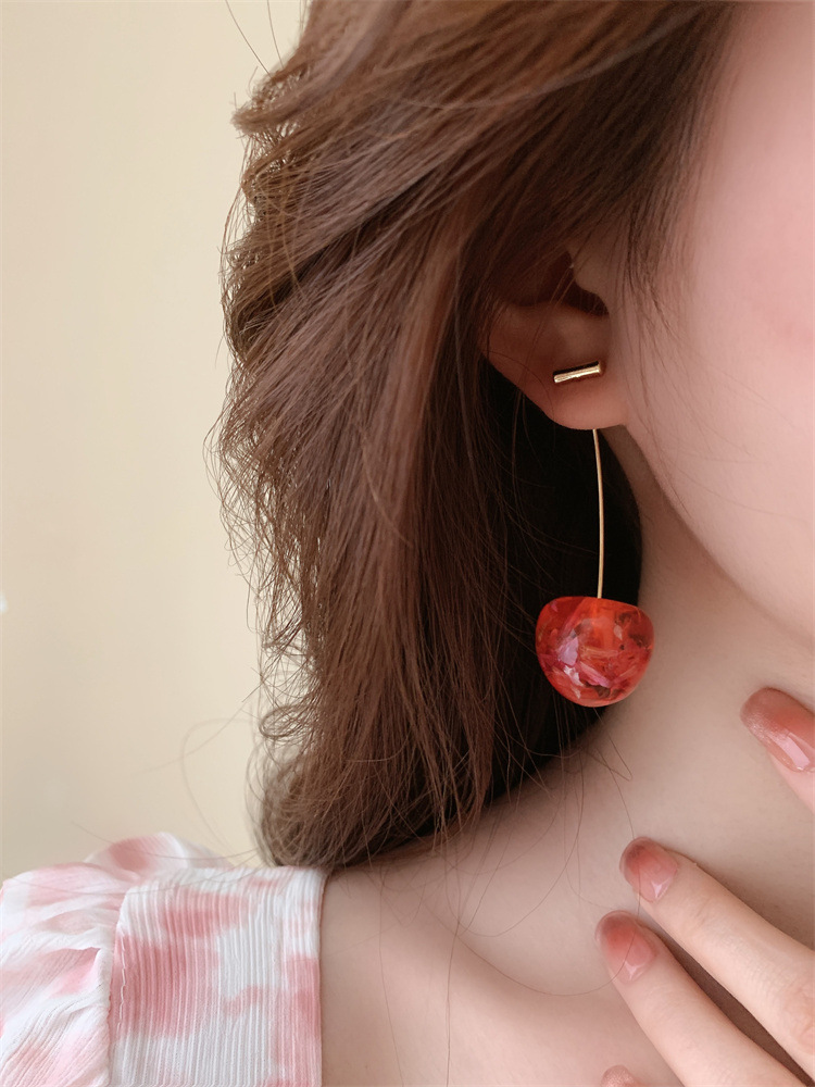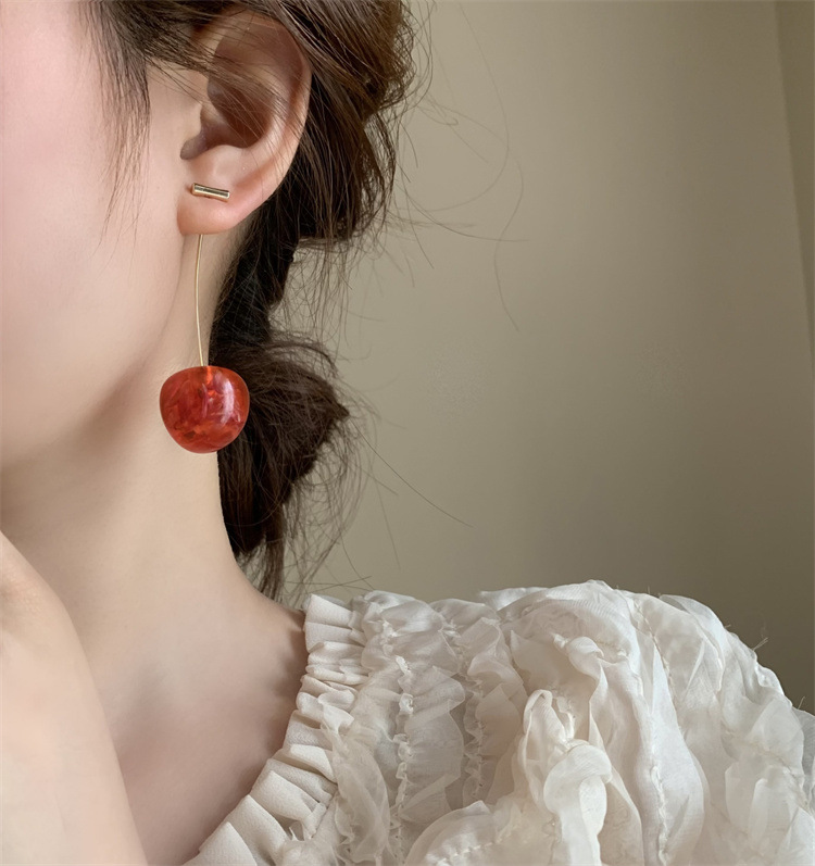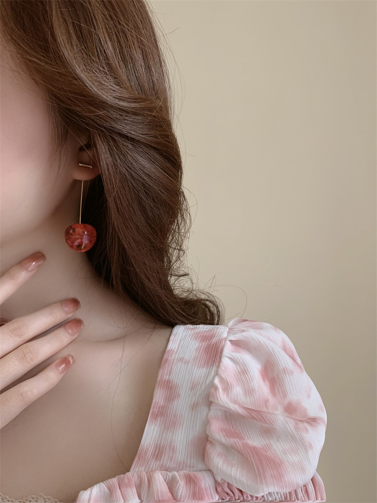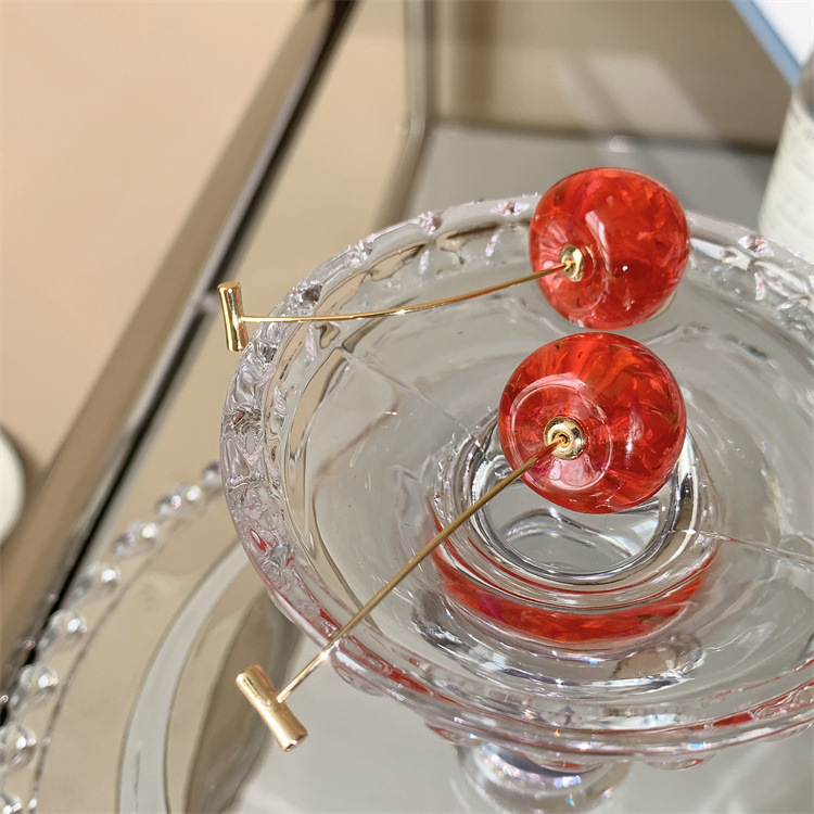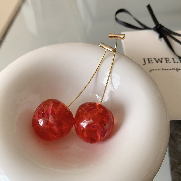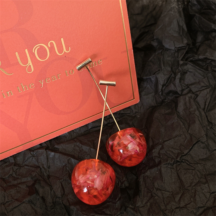 复古气质简约甜美干花樱桃耳环轻奢优雅高级感长款树脂干花耳坠