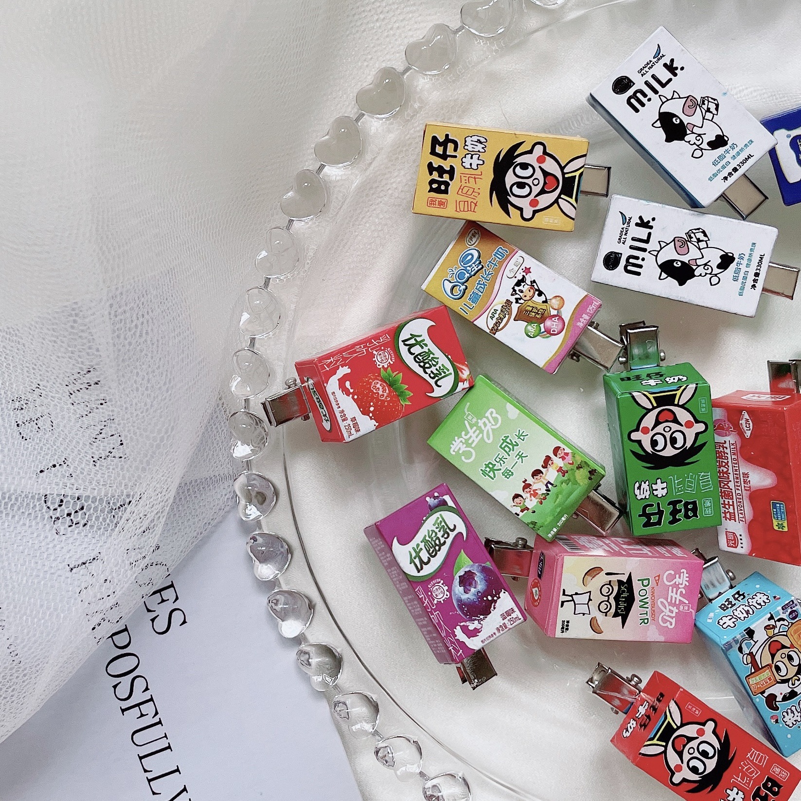 原创趣味发夹少女心搞怪一排旺仔牛奶仿真香烟可爱学生边夹刘海夹