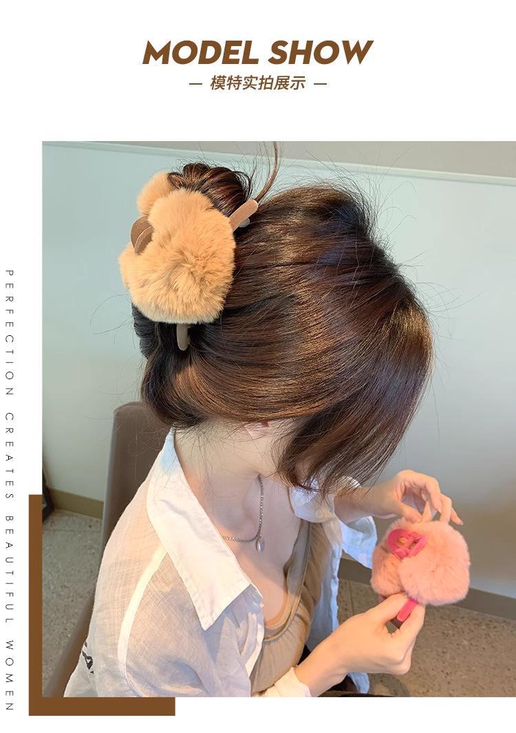 多巴胺女孩发饰韩版厚毛毛大爱心抓夹网红时尚高级感盘发鲨鱼夹子