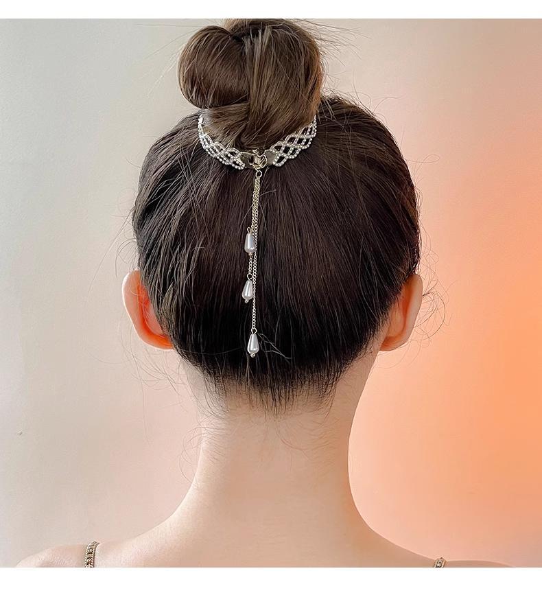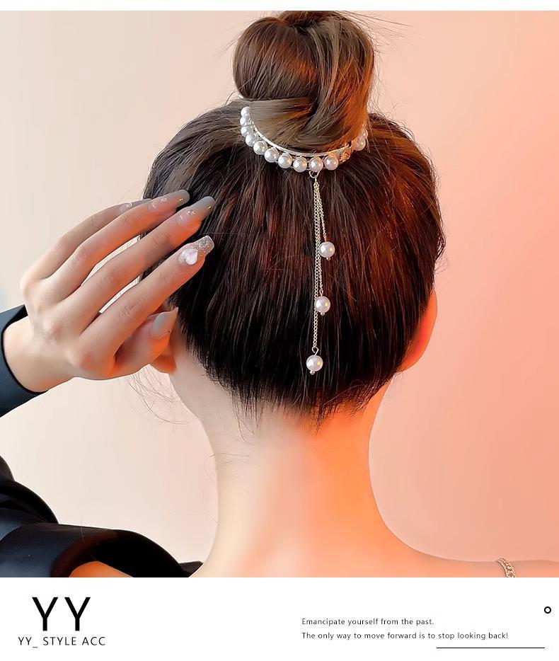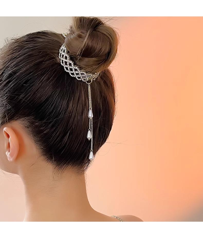 丸子头神器后脑勺发扣珍珠水钻菱形流苏抓夹金属盘发夹子头饰女