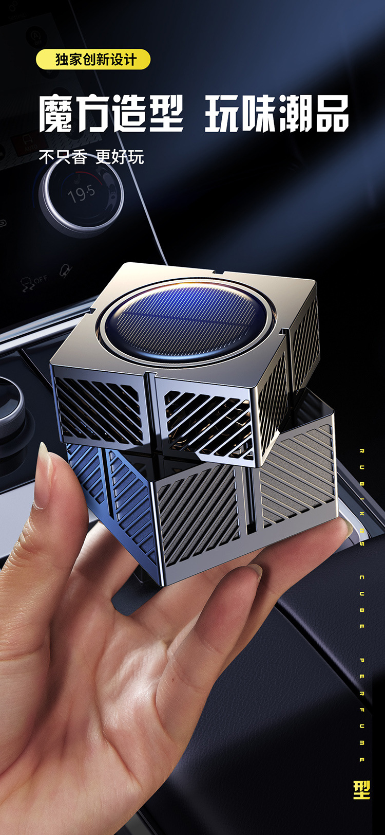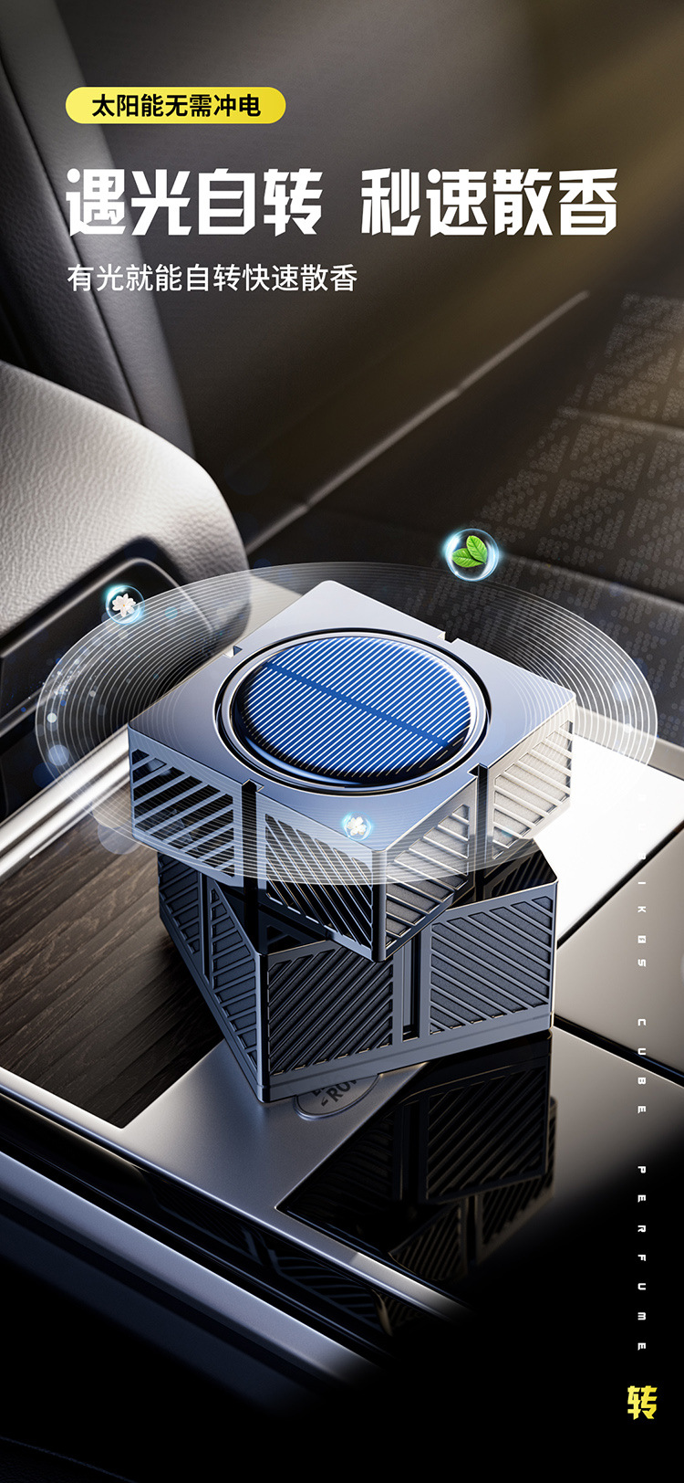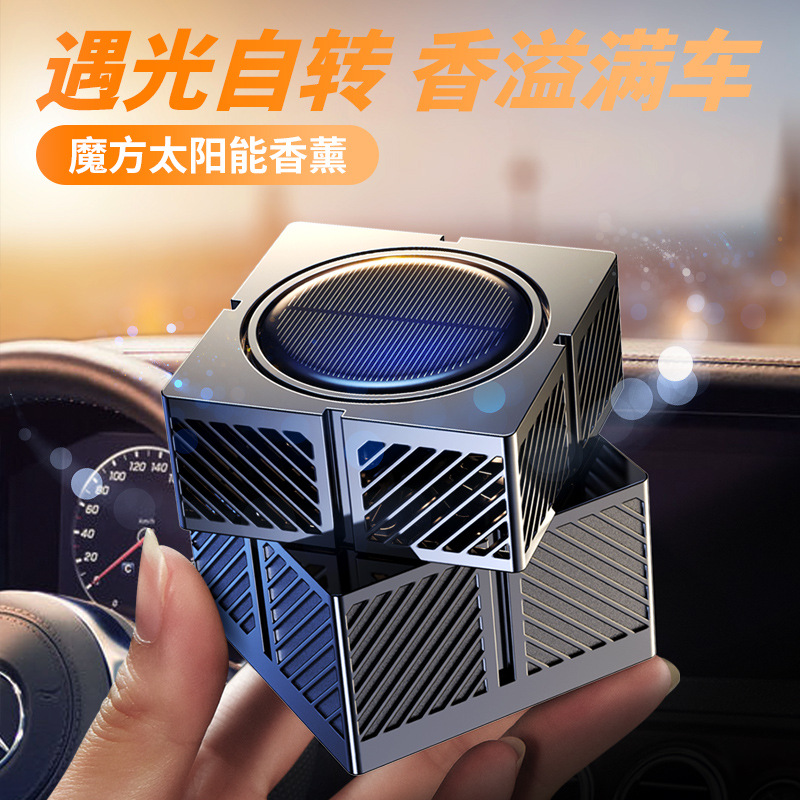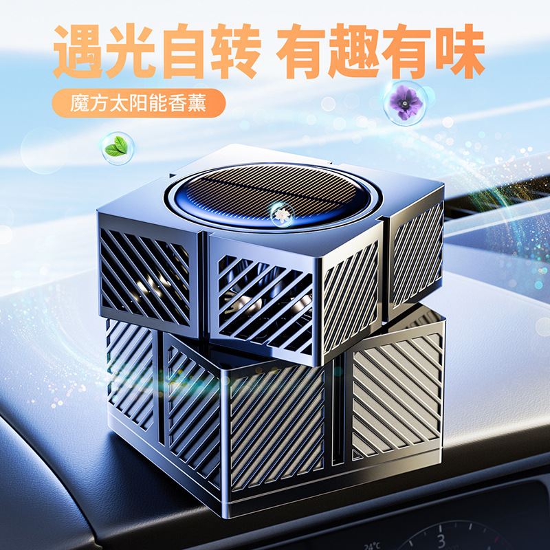 新款车载太阳能自动旋转魔方智能喷雾香薰车家两用香水仪花香氛