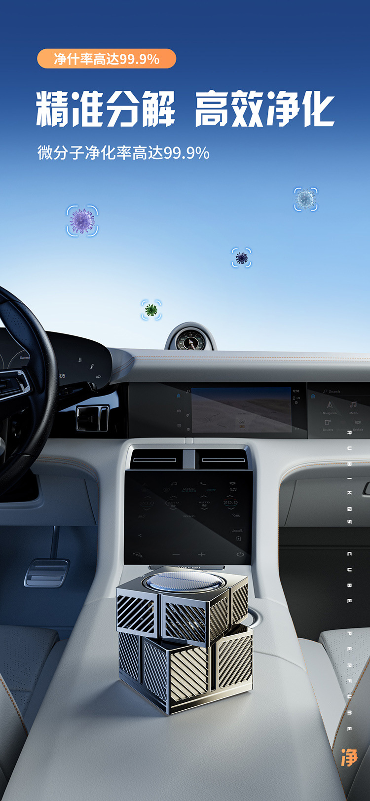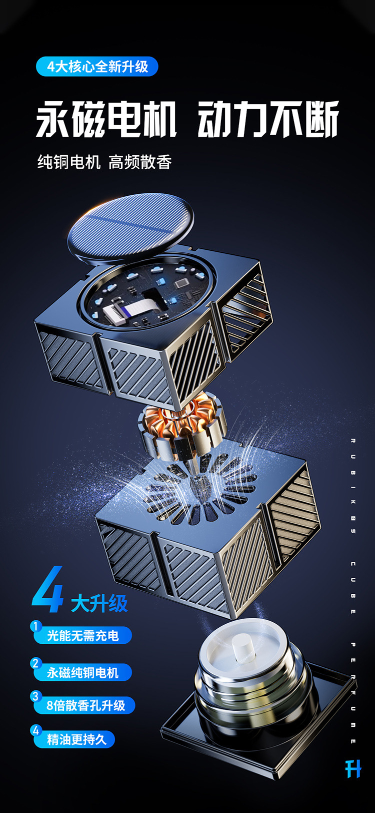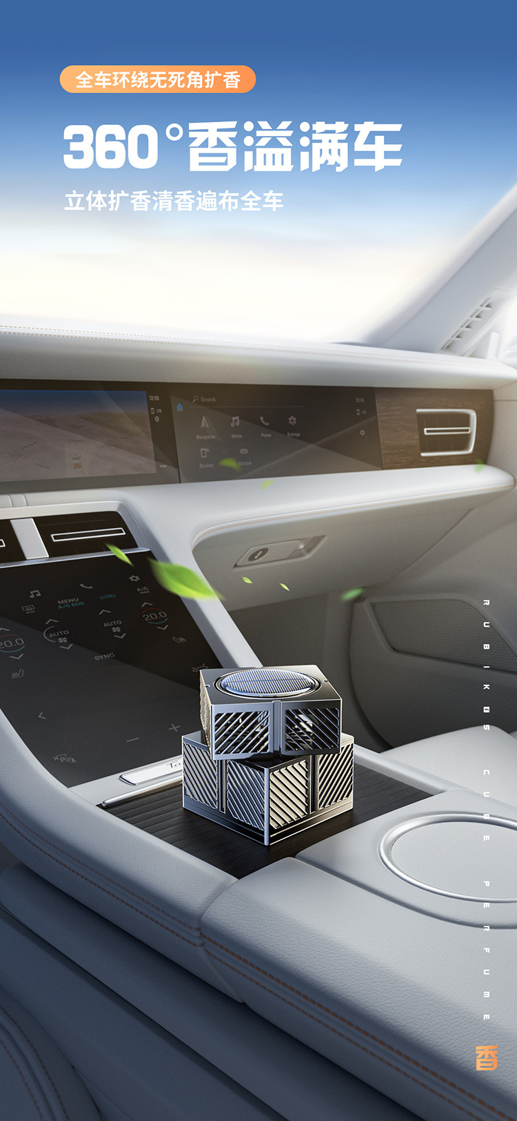新款车载太阳能自动旋转魔方智能喷雾香薰车家两用香水仪花香氛