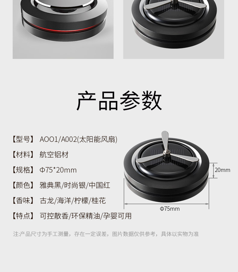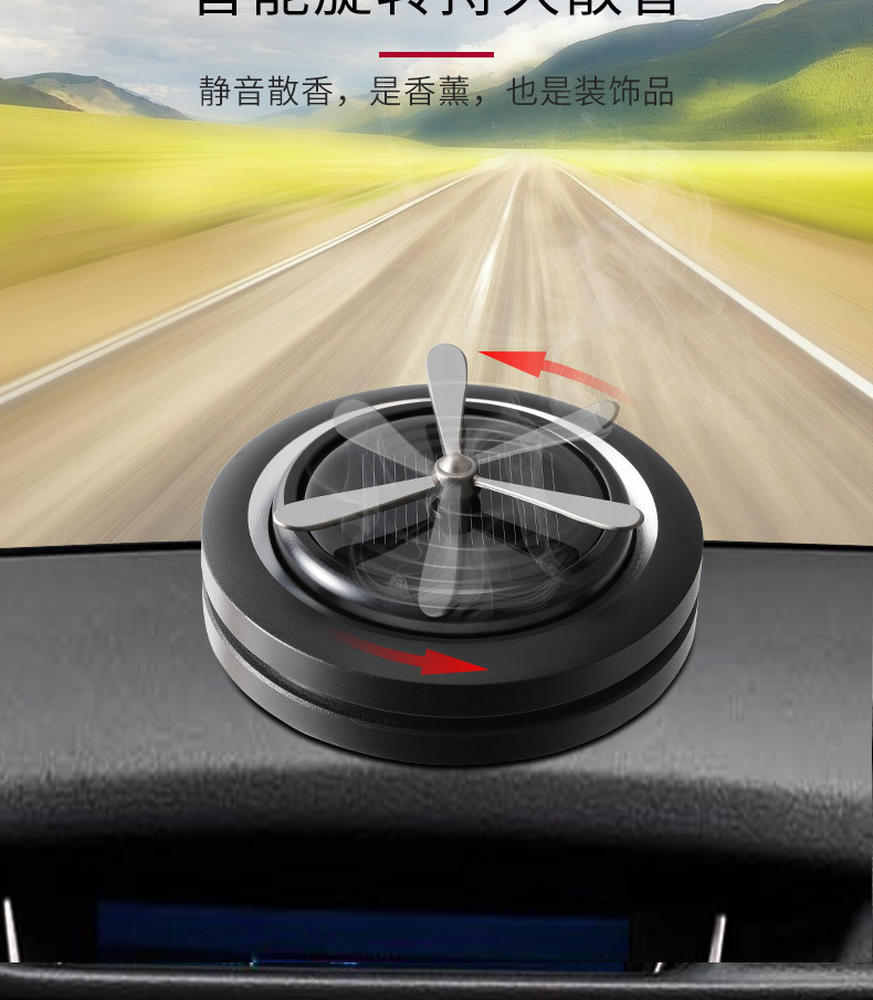 太阳能车载摆件旋转香薰汽车香水创意旋转铝合金太阳能香熏座