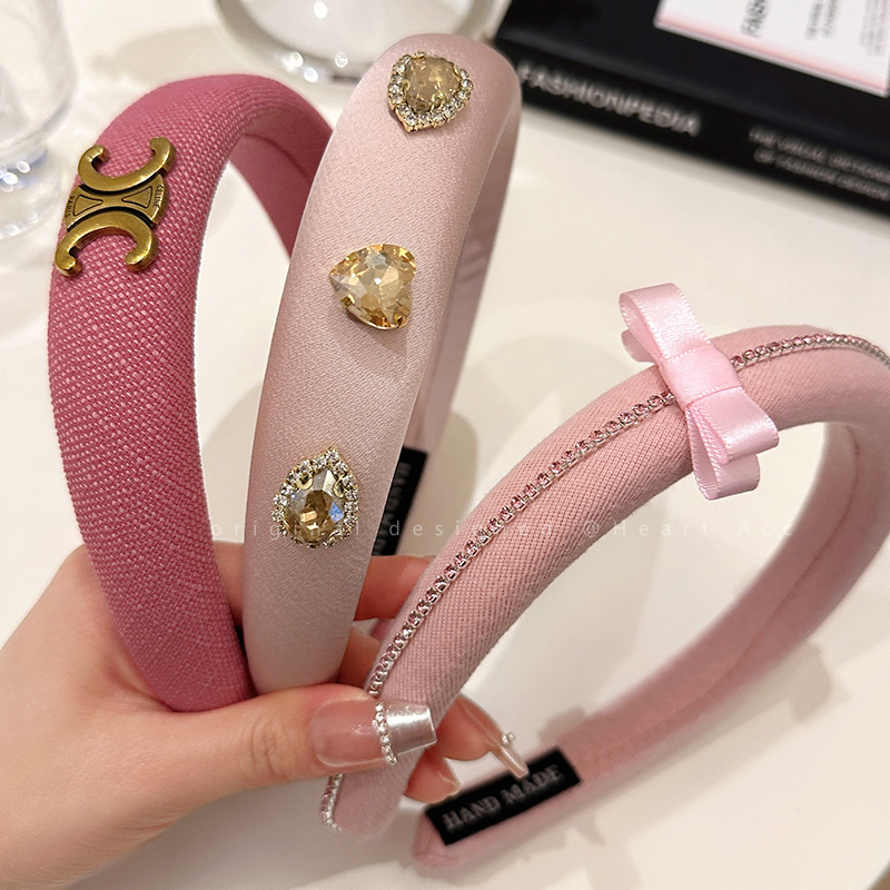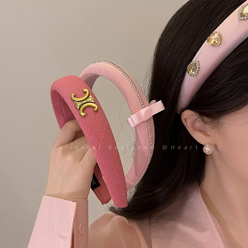 樱花粉蝴蝶结海绵发箍带钻大标女宽边网红头箍高颅顶显脸小发饰