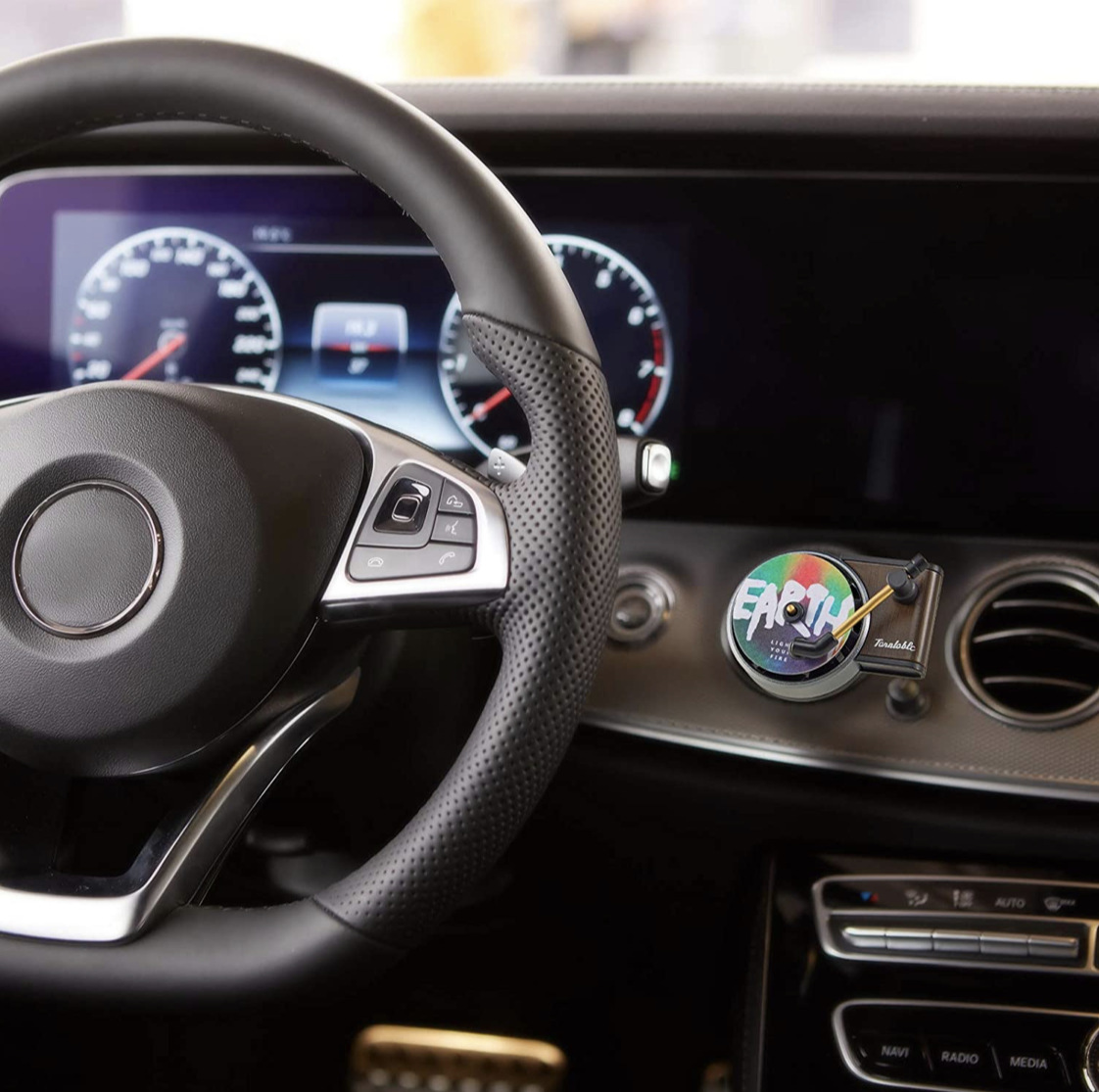 车载复古唱片机香薰空调出风口旋转摆件复古留声机创意摆件香薰型