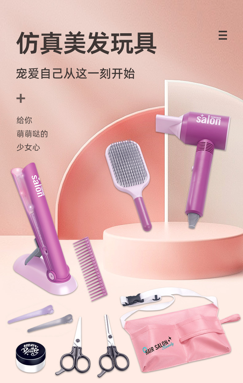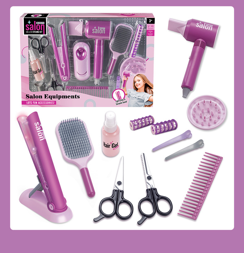 厂家跨境儿童梳理化妆打扮玩具 吹风机过家家 女孩美发沙龙套装