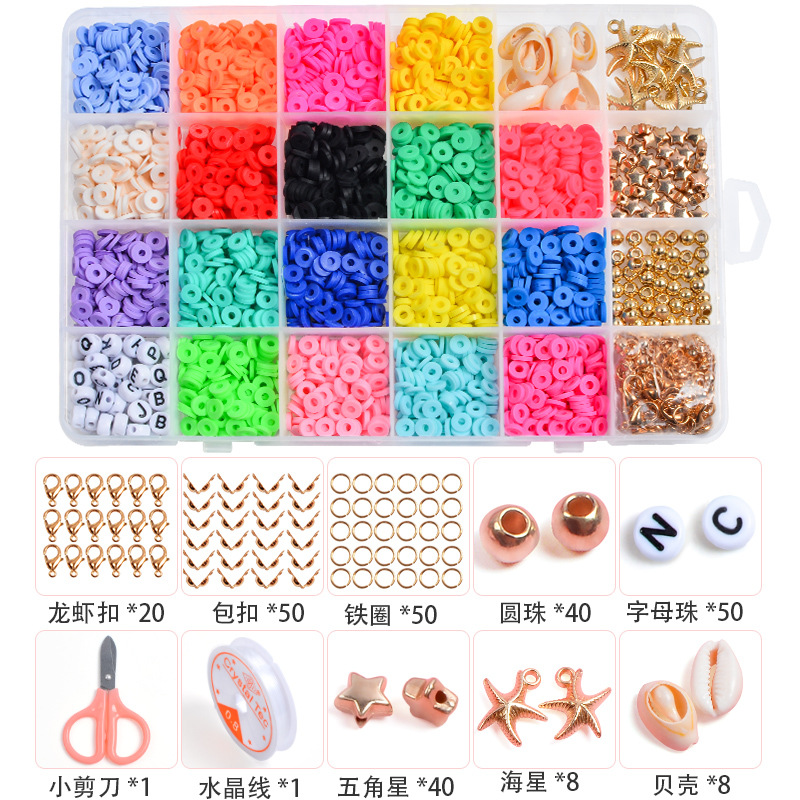跨境24格软陶片海洋系列盒装 彩色圆片波西米亚风饰品手链DIY饰品