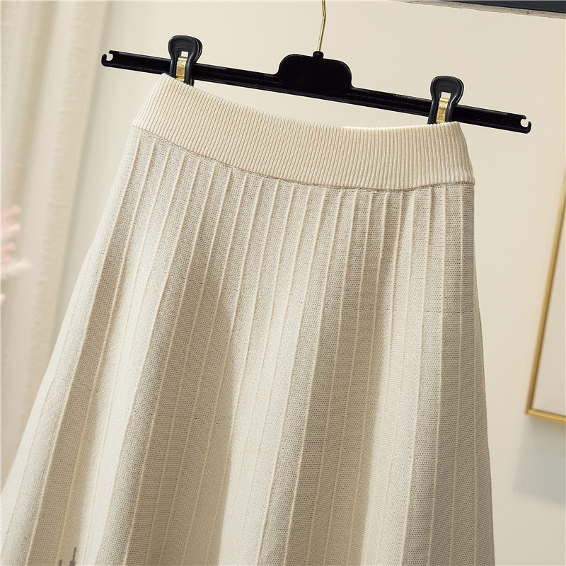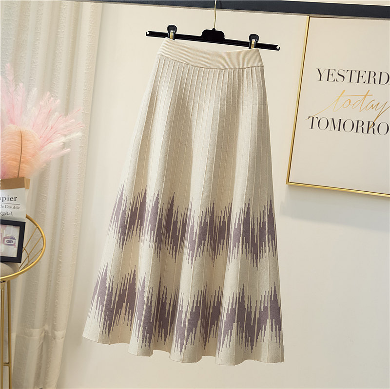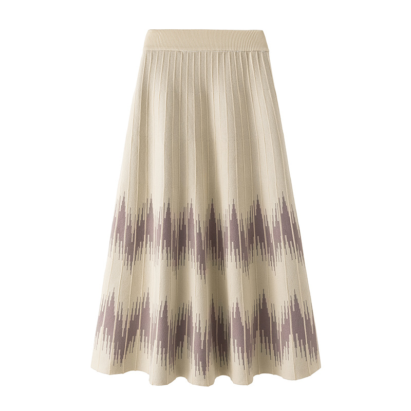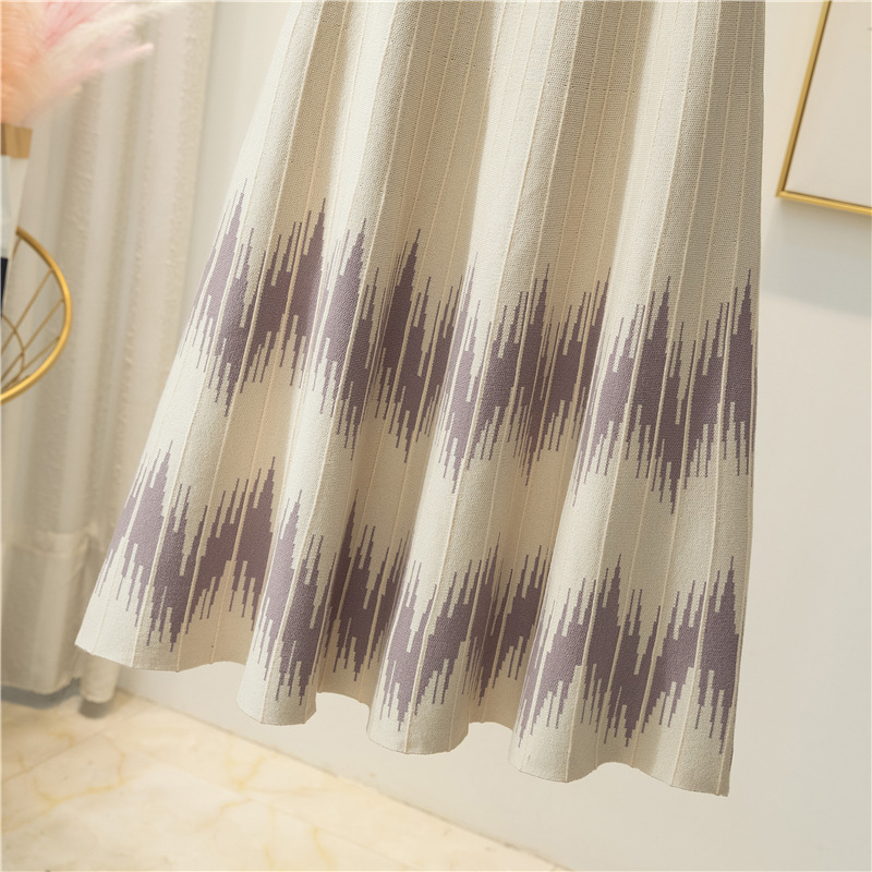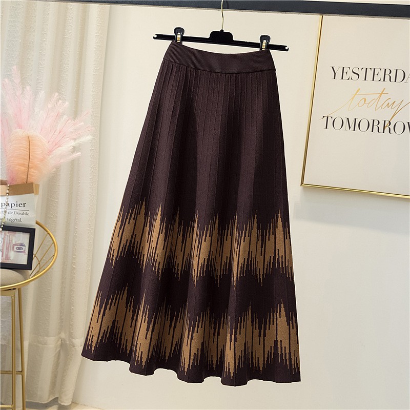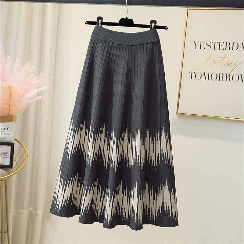 秋冬新款设计感小众几何图案针织裙中长款高腰半身裙毛线A字长裙