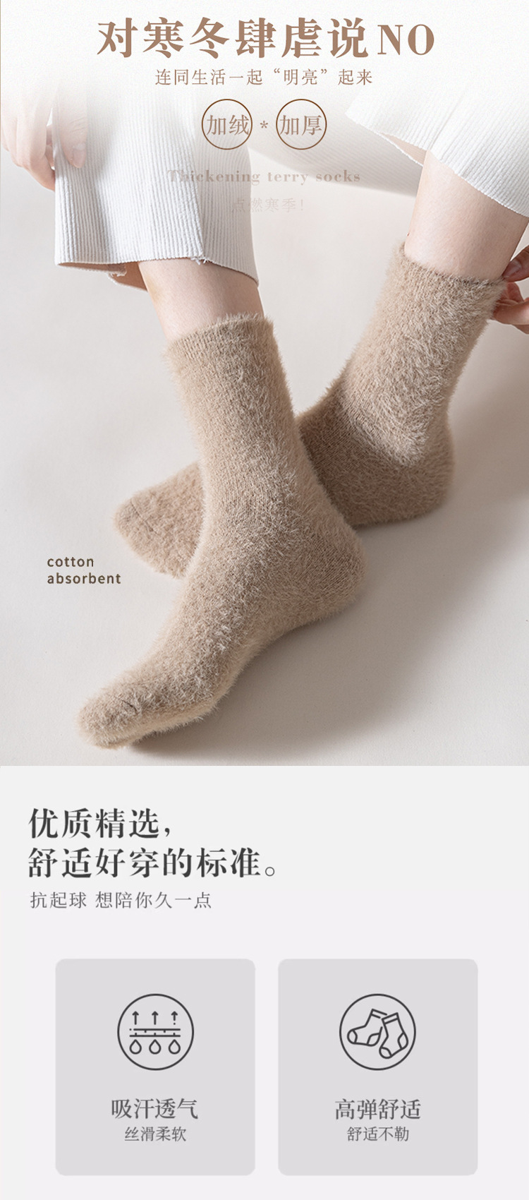 袜子女加厚地板袜居家保暖仿貂毛月子袜加绒毛毛袜通勤两用睡眠袜