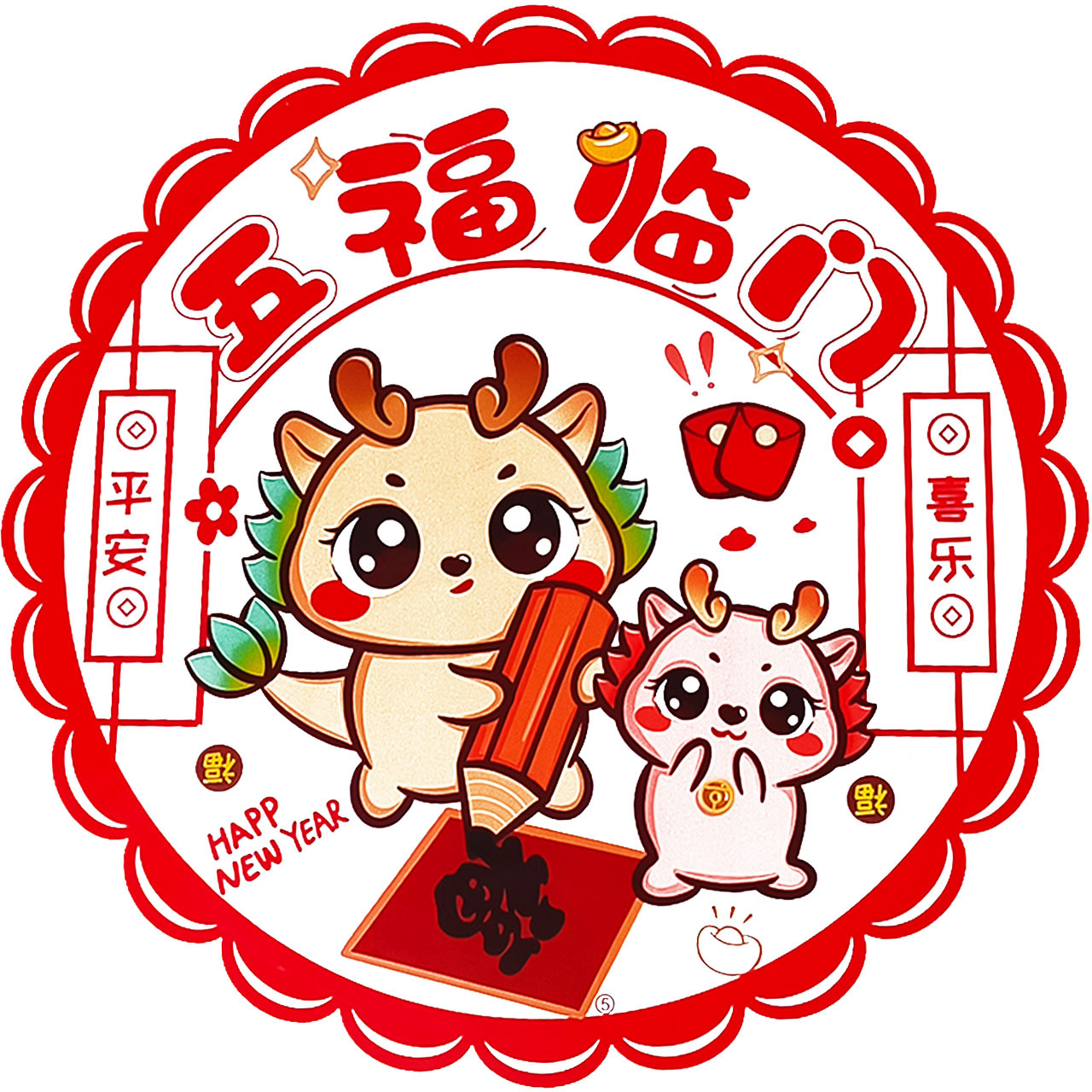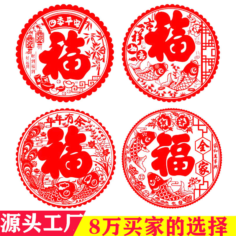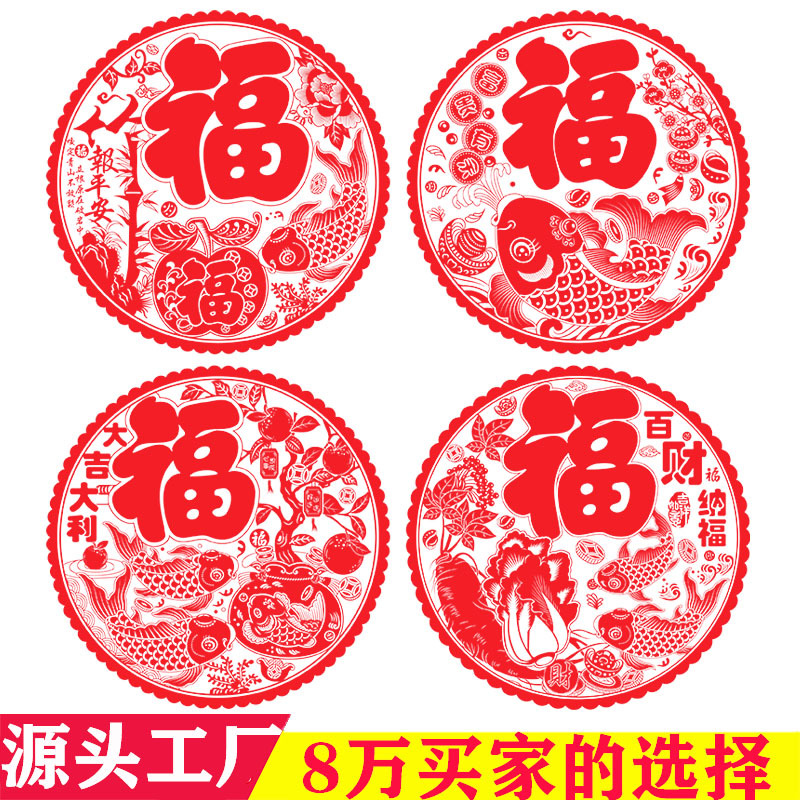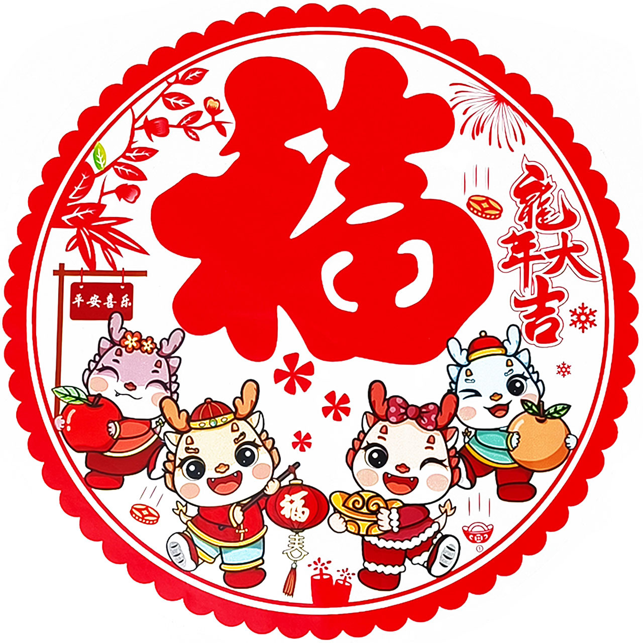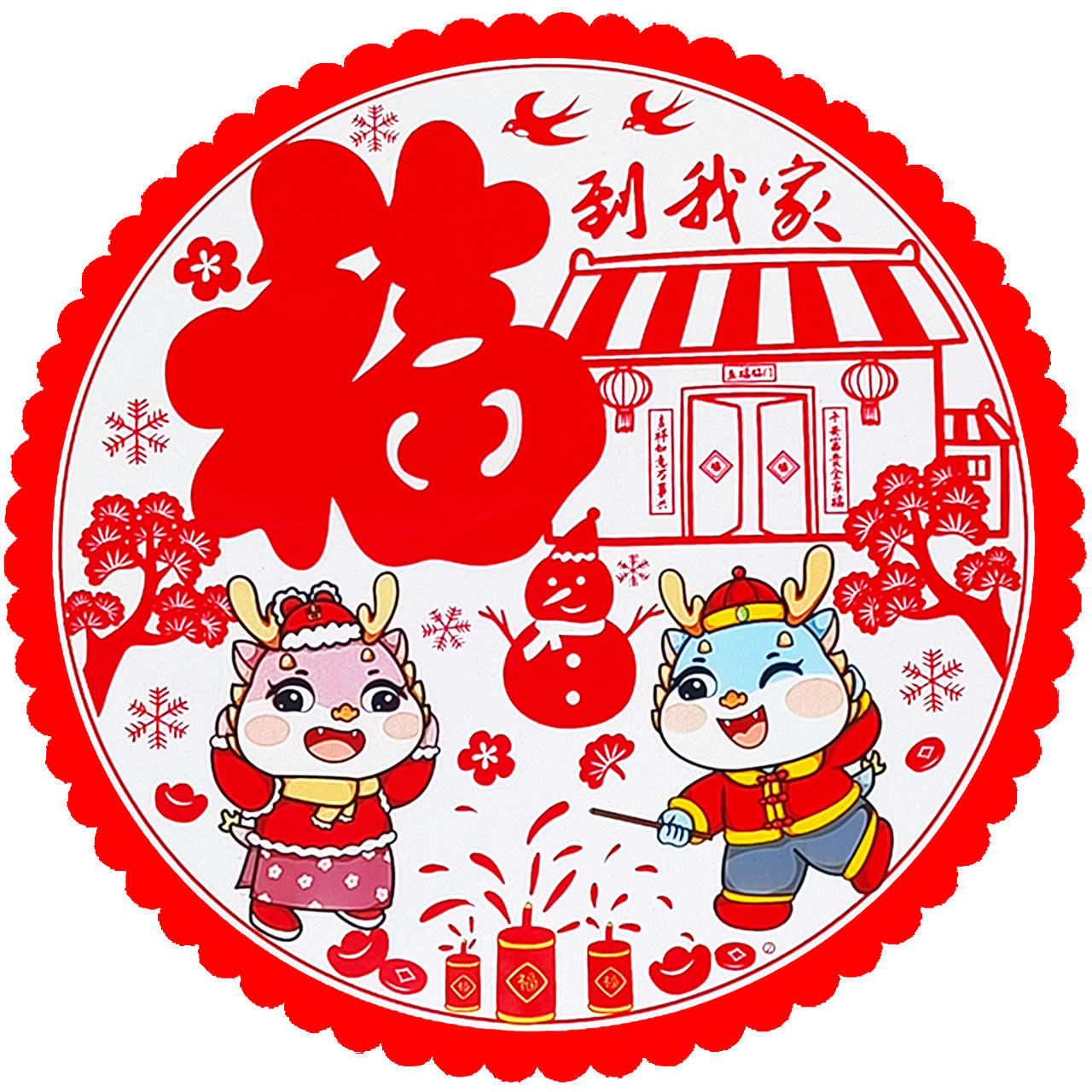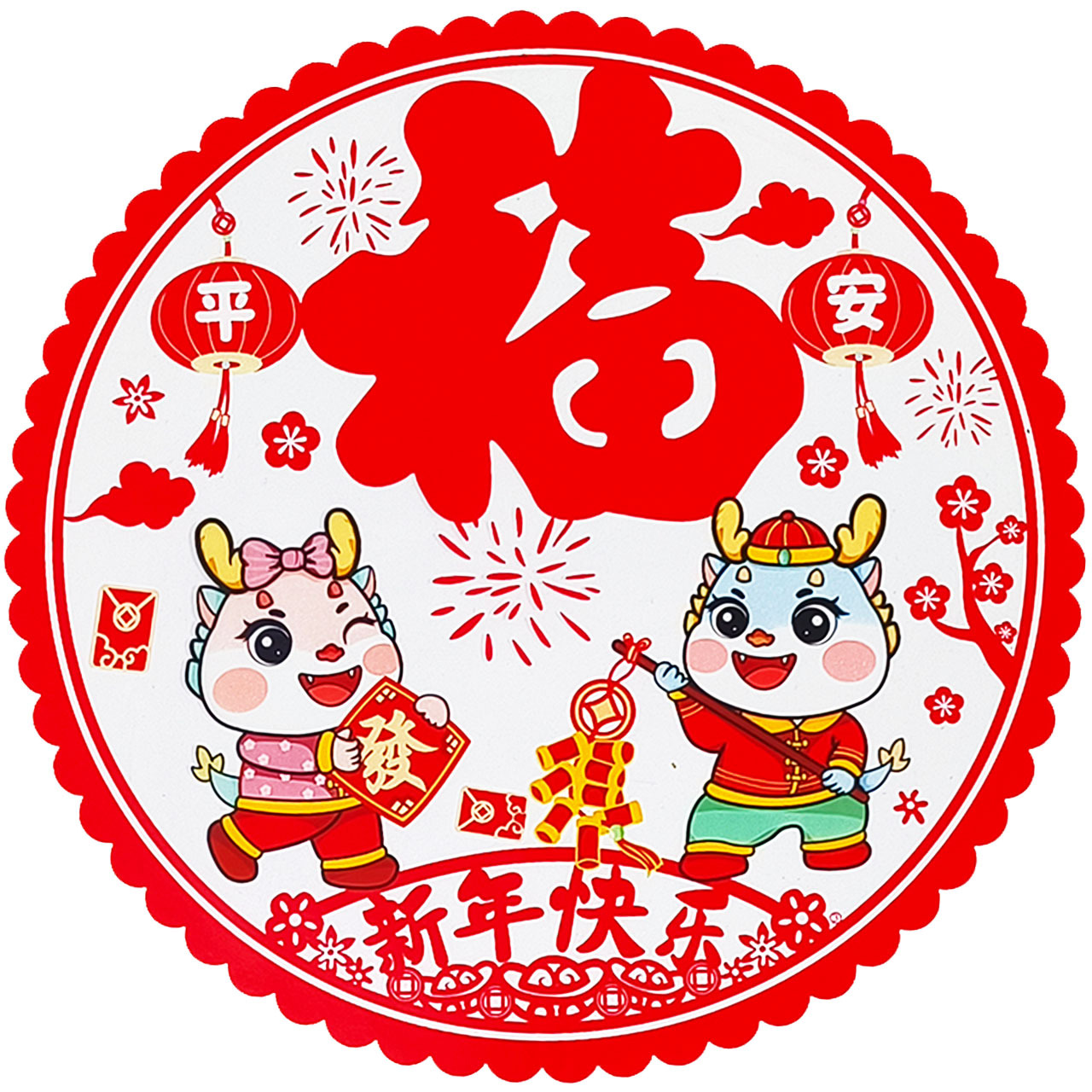 窗花2024龙年植绒窗花新年用品福字对联静电贴剪纸玻璃贴厂家批发
