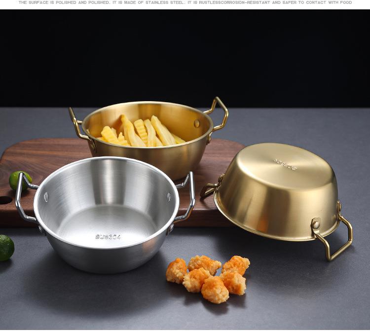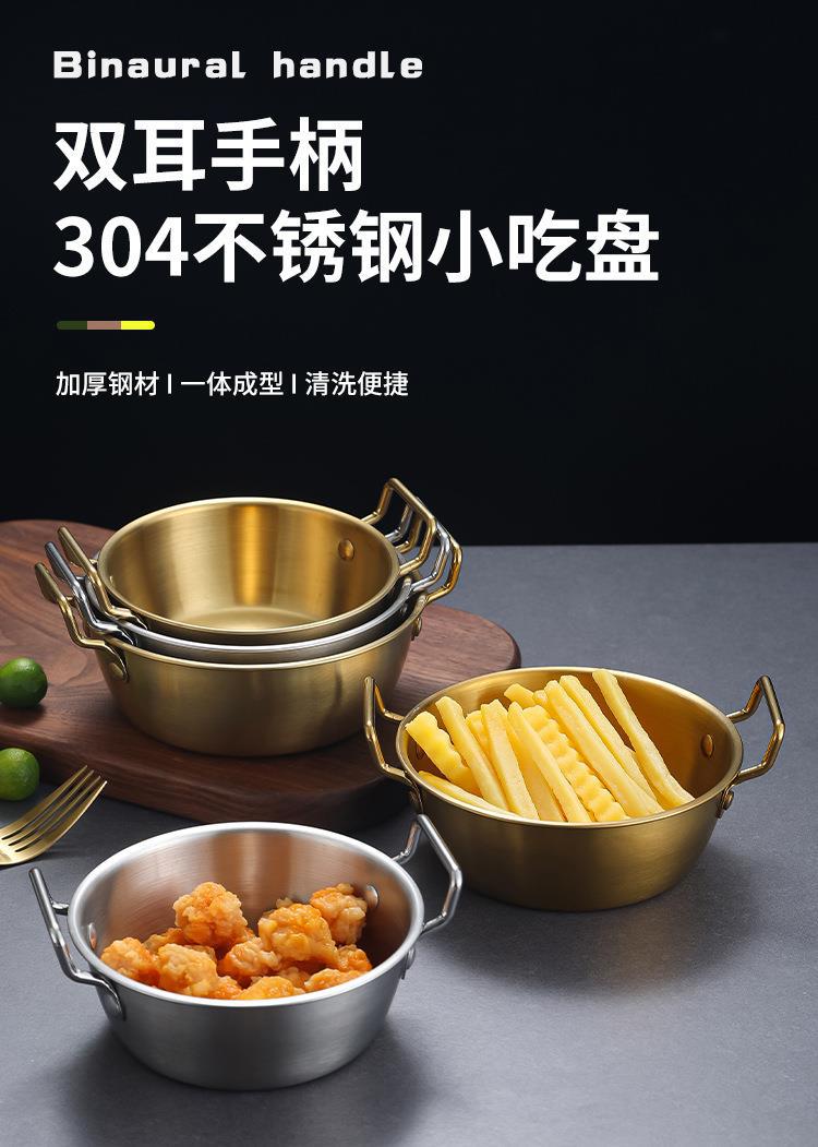 韩式小吃碗防烫双耳碗薯条小碗汤碗双耳大号料理304不锈钢沙拉碗
