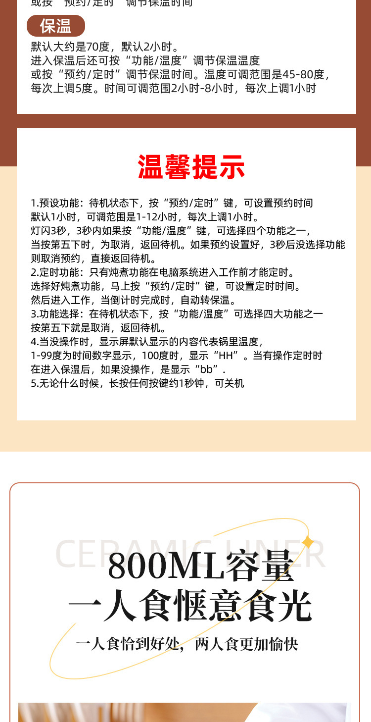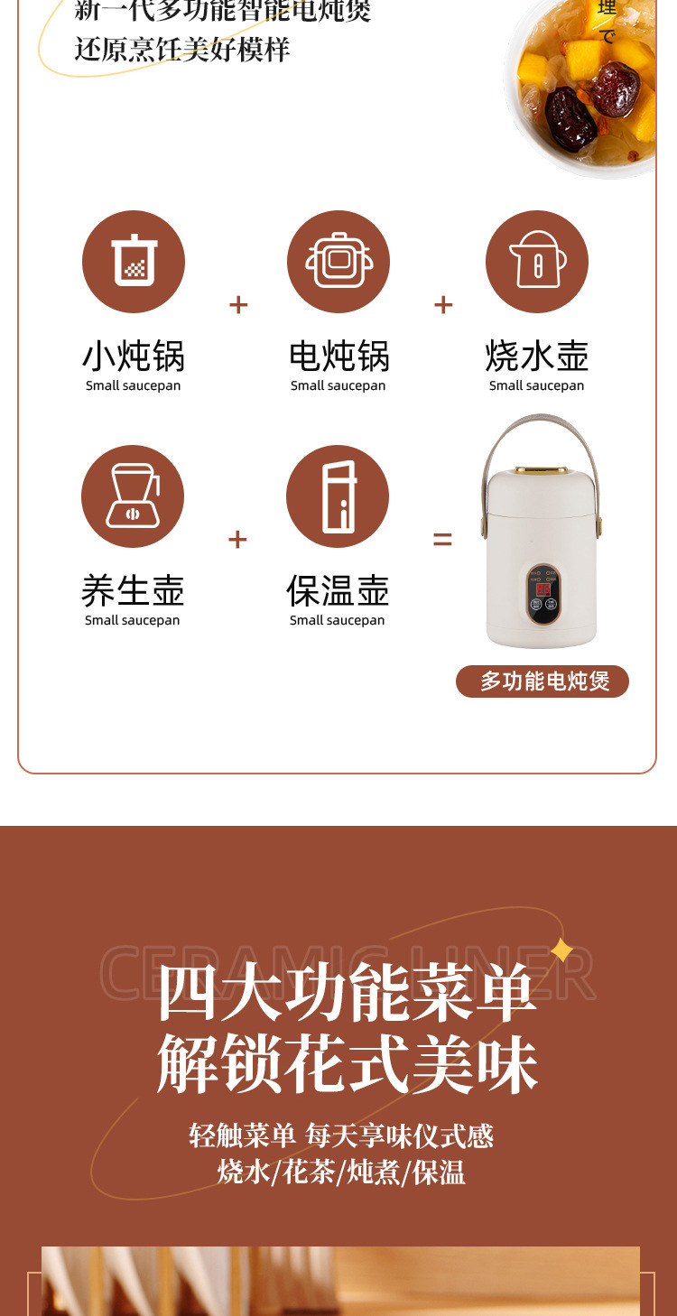 多功能养生迷你电饭煲 陶瓷釉电煮锅便携式电炖锅 办公室煮粥神器