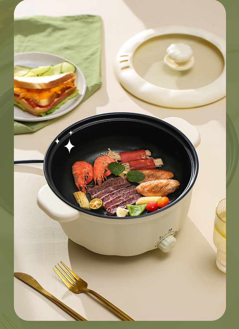 家用多功能电煮锅蒸煮煎炒一体小电锅 学生宿舍不粘电热锅电火锅