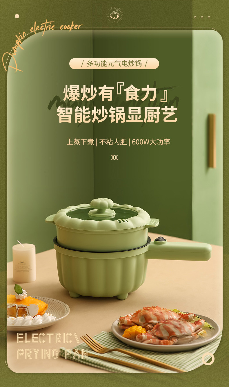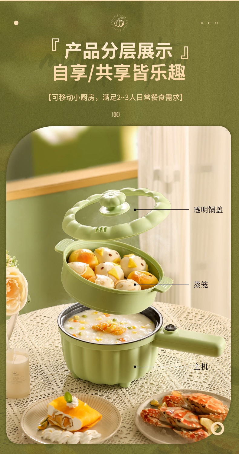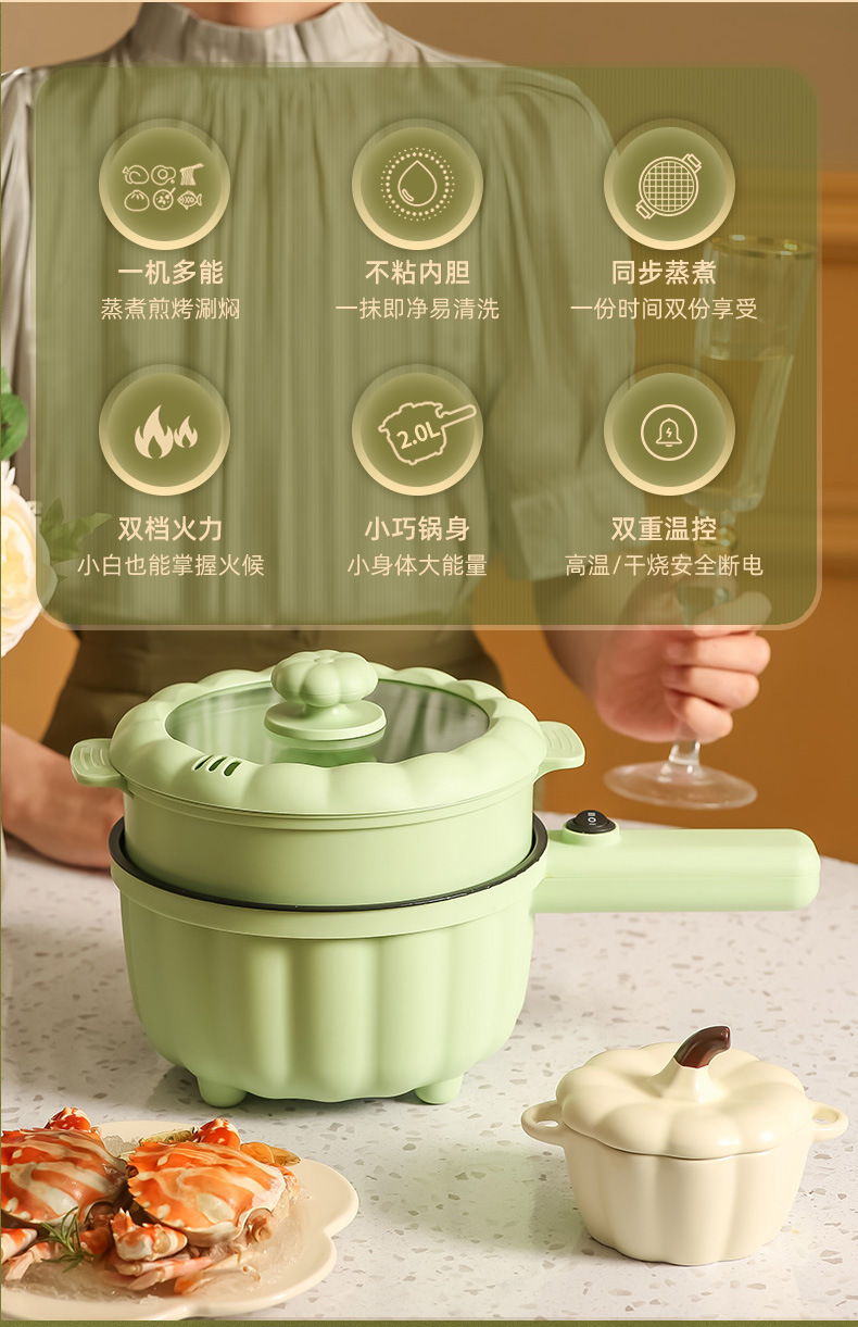 家用双层不粘蒸煮电煮锅批发 网红南瓜煎炒电热锅新款宿舍电火锅